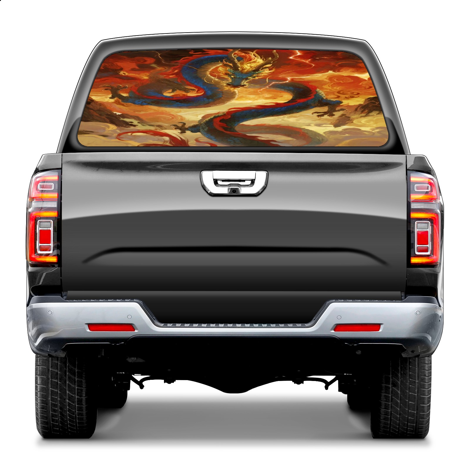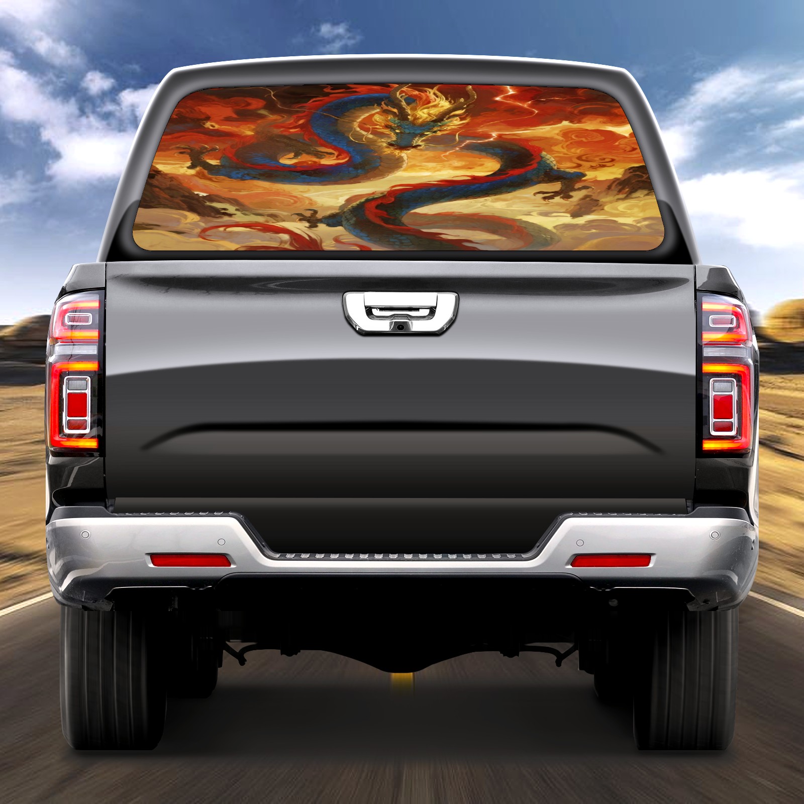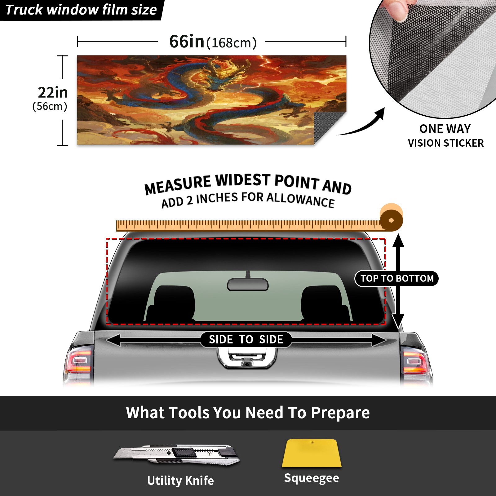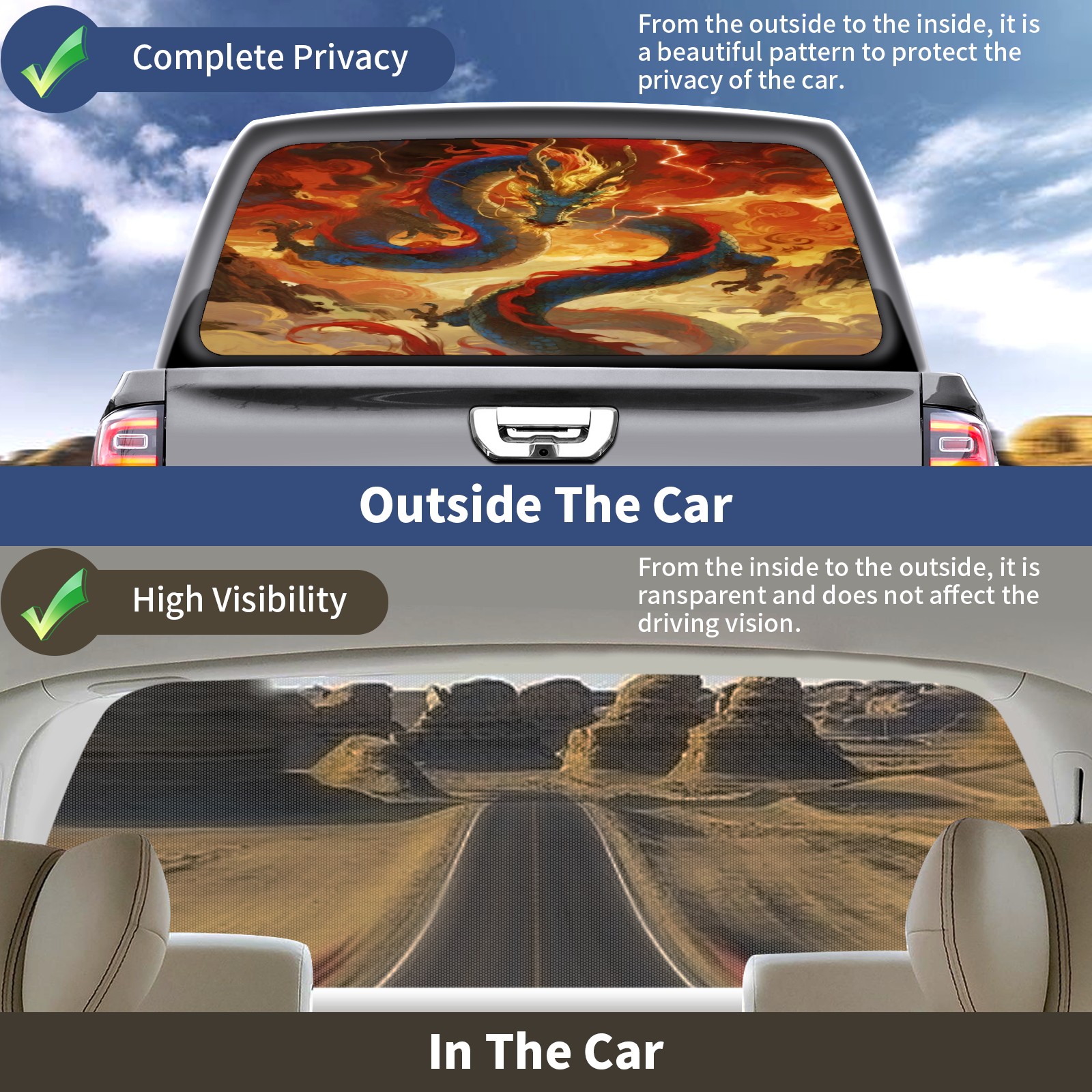 Pickup Car Window Stickers Decal Rear Window Decals for Trucks One Way Visual Waterproof Truck Back Window Tint Decal Graphic Perforated Vinyl Truck Stickers 66X 22inch Fiery Dragon