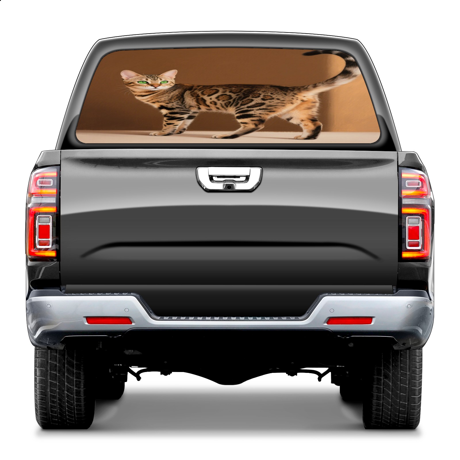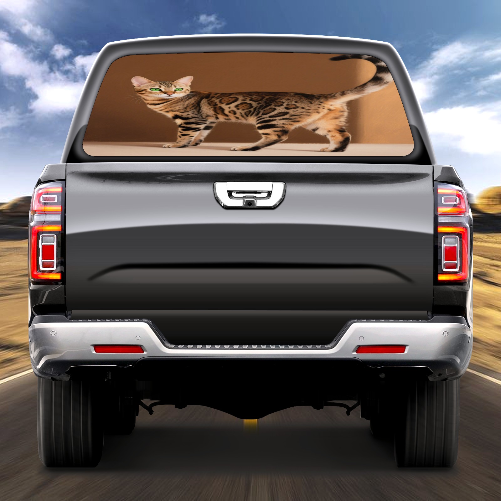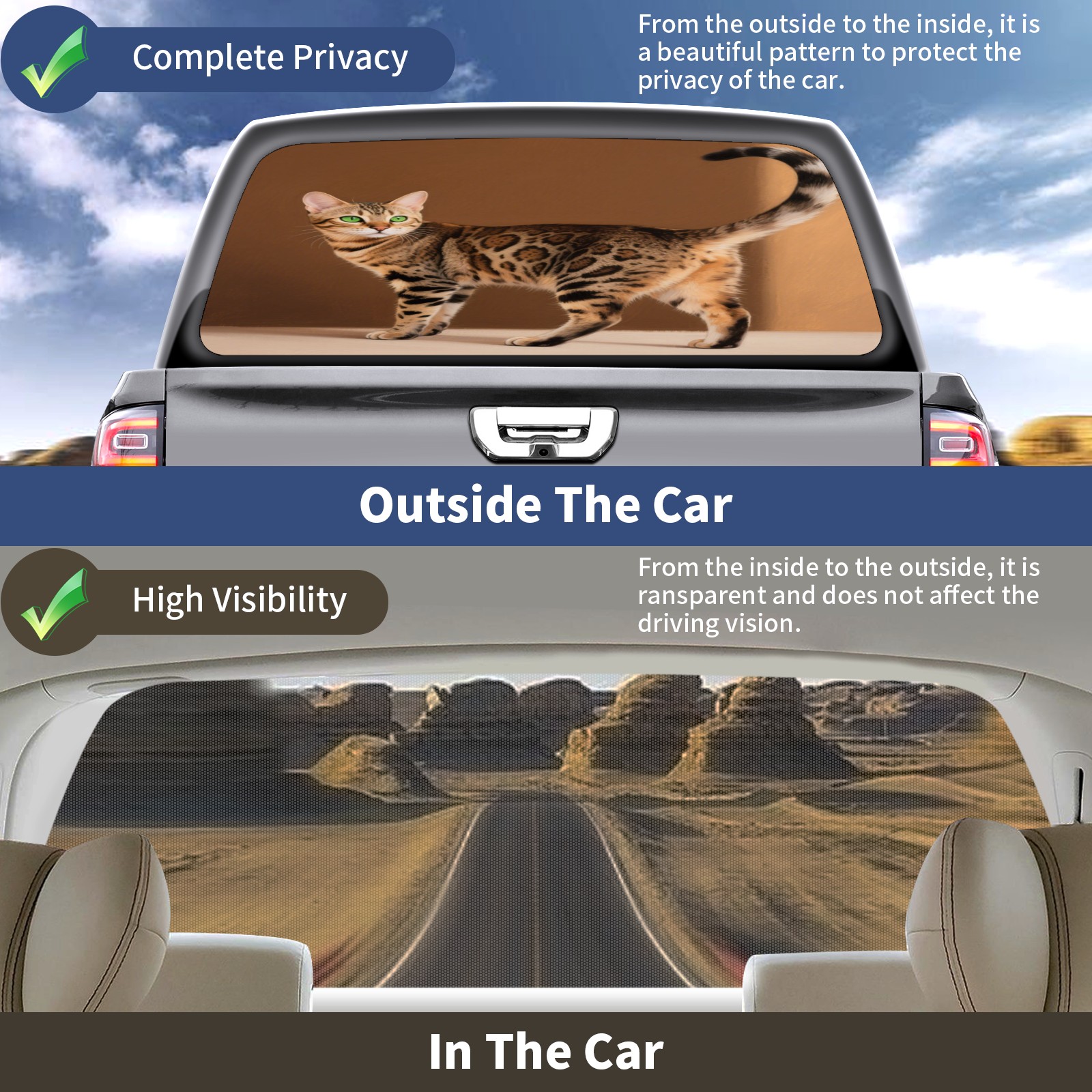Pickup Car Window Stickers Decal Rear Window Decals for Trucks One Way Visual Waterproof Truck Back Window Tint Decal Graphic Perforated Vinyl Truck Stickers 66X 22inch Leopard Cat Portrait