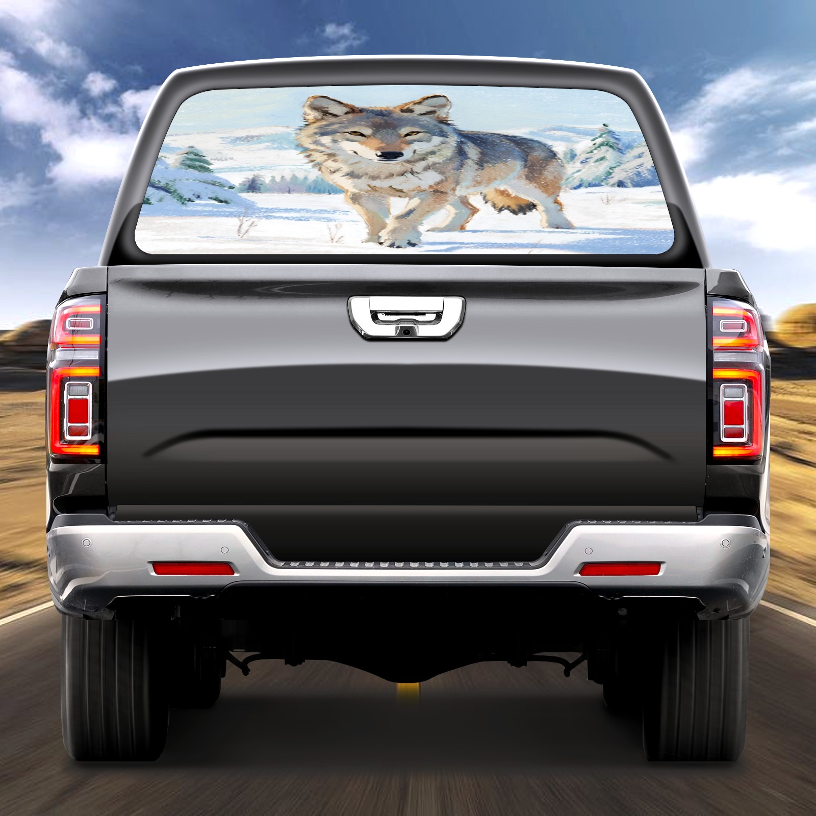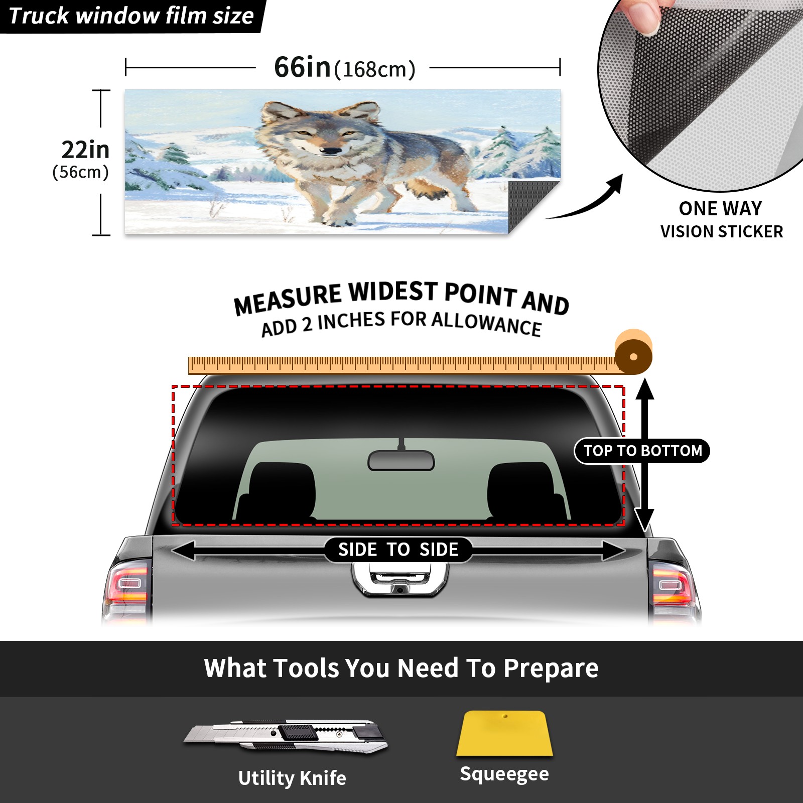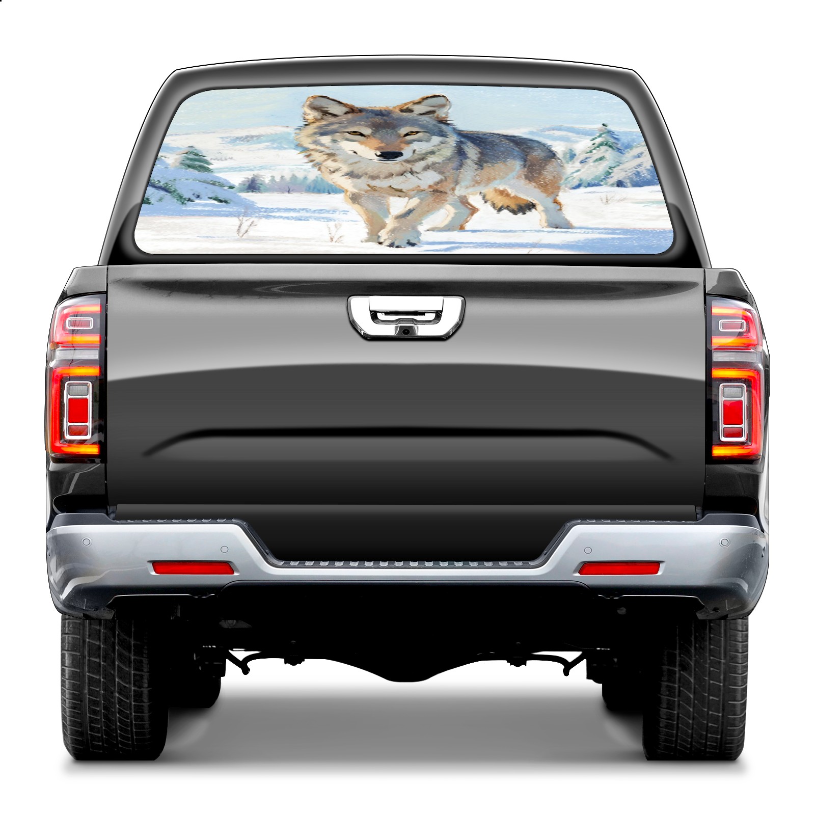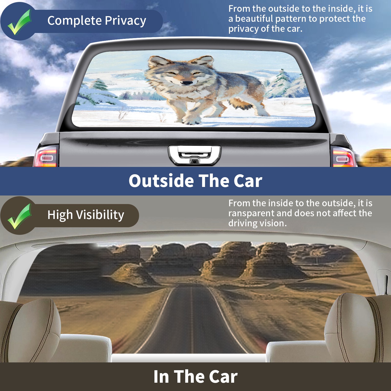 Pickup Car Window Stickers Decal Rear Window Decals for Trucks One Way Visual Waterproof Truck Back Window Tint Decal Graphic Perforated Vinyl Truck Stickers 66X 22inch Wolf In Snowfield