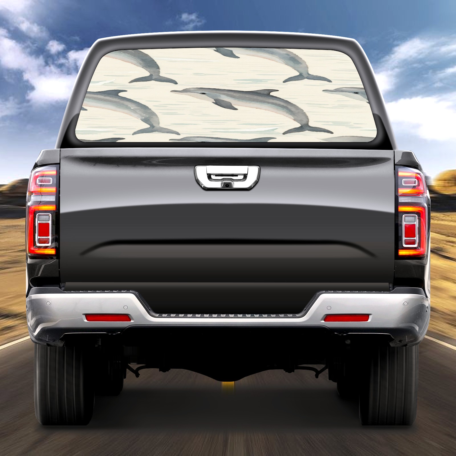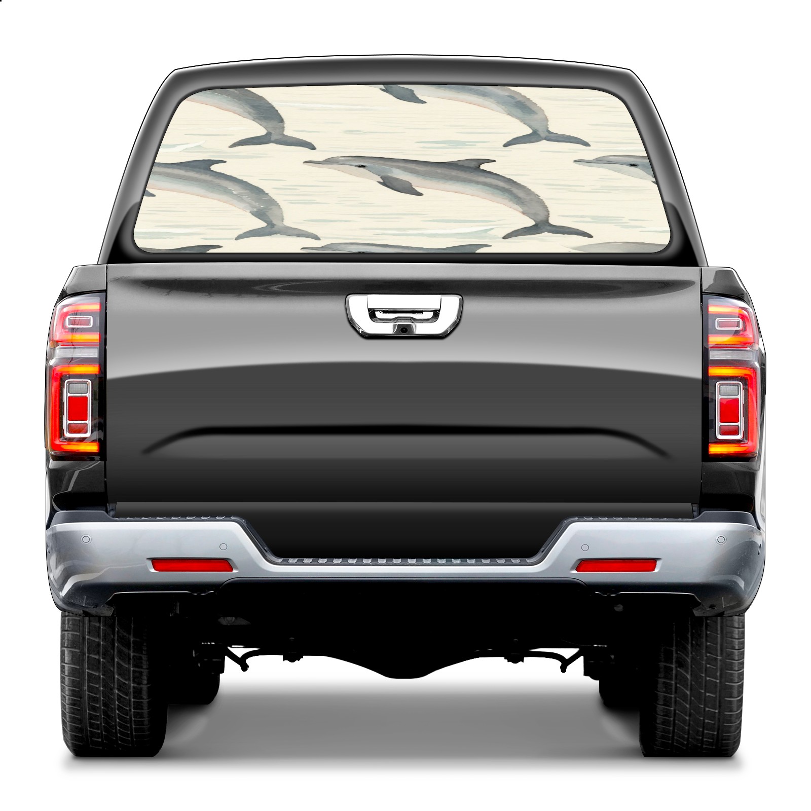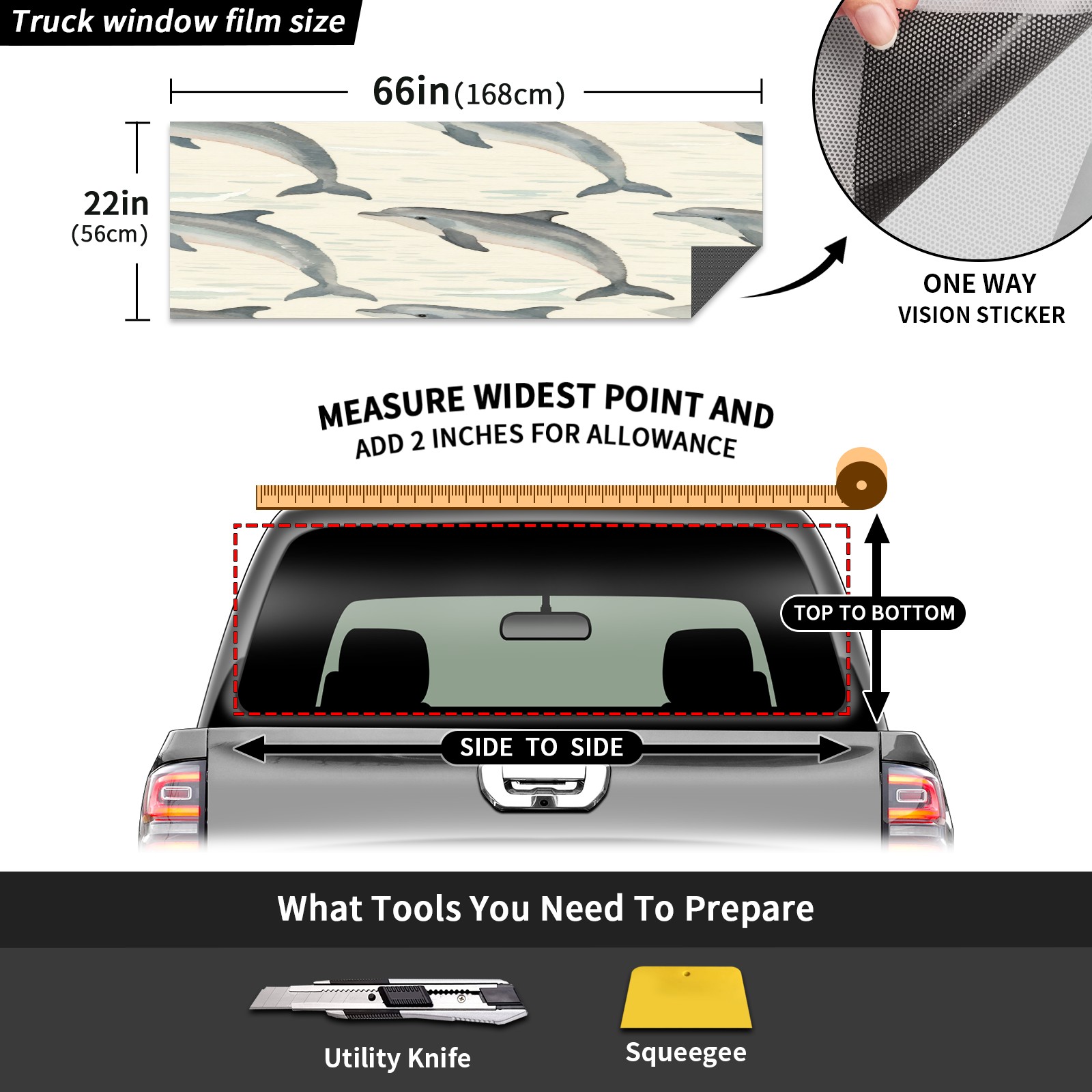 Pickup Car Window Stickers Decal Rear Window Decals for Trucks One Way Visual Waterproof Truck Back Window Tint Decal Graphic Perforated Vinyl Truck Stickers 66X 22inch Dolphins