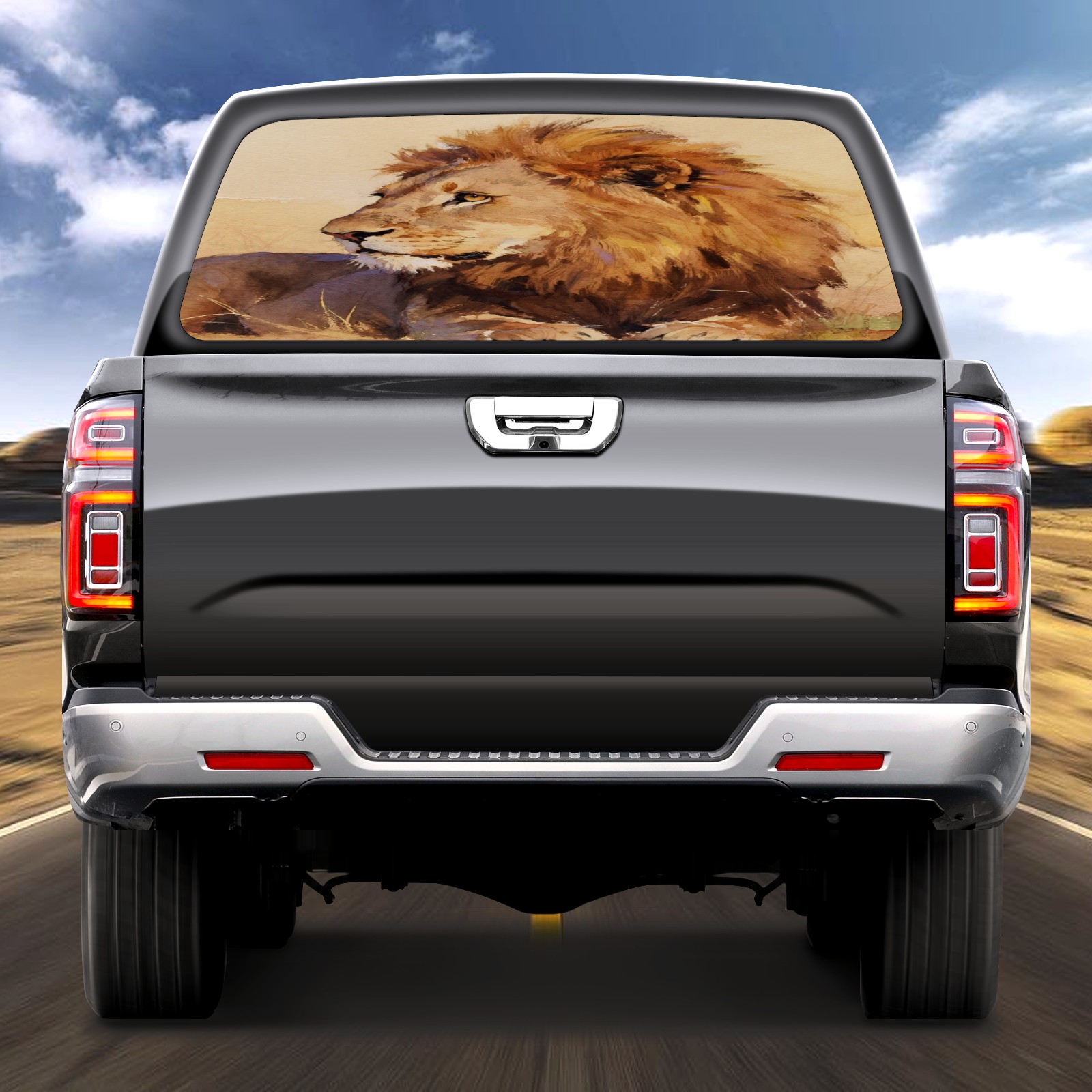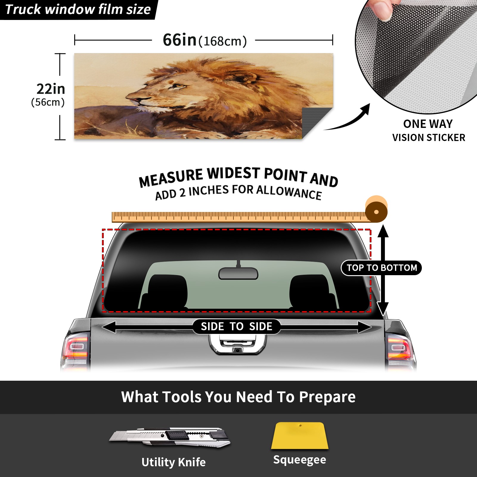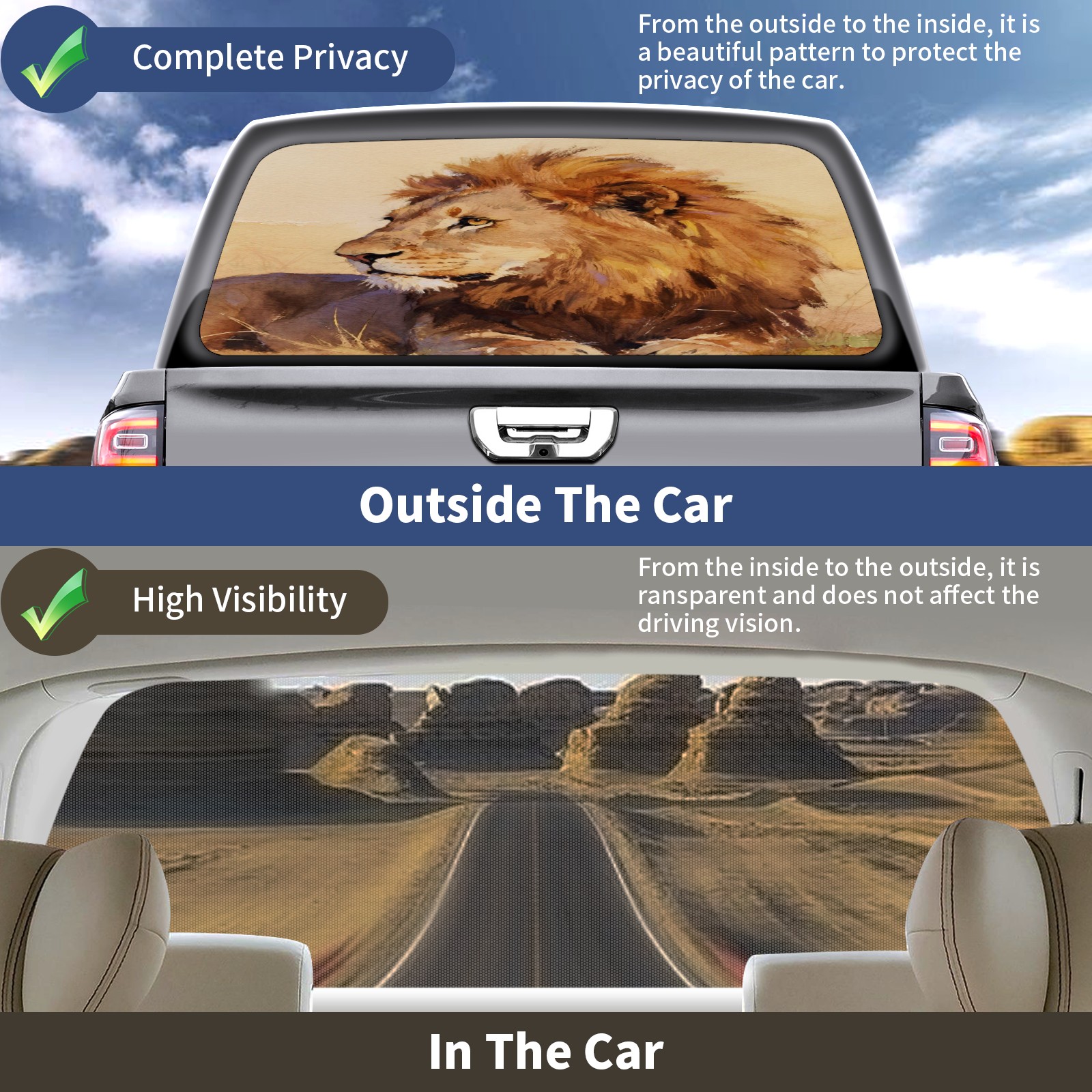 Pickup Car Window Stickers Decal Rear Window Decals for Trucks One Way Visual Waterproof Truck Back Window Tint Decal Graphic Perforated Vinyl Truck Stickers 66X 22inch Lion