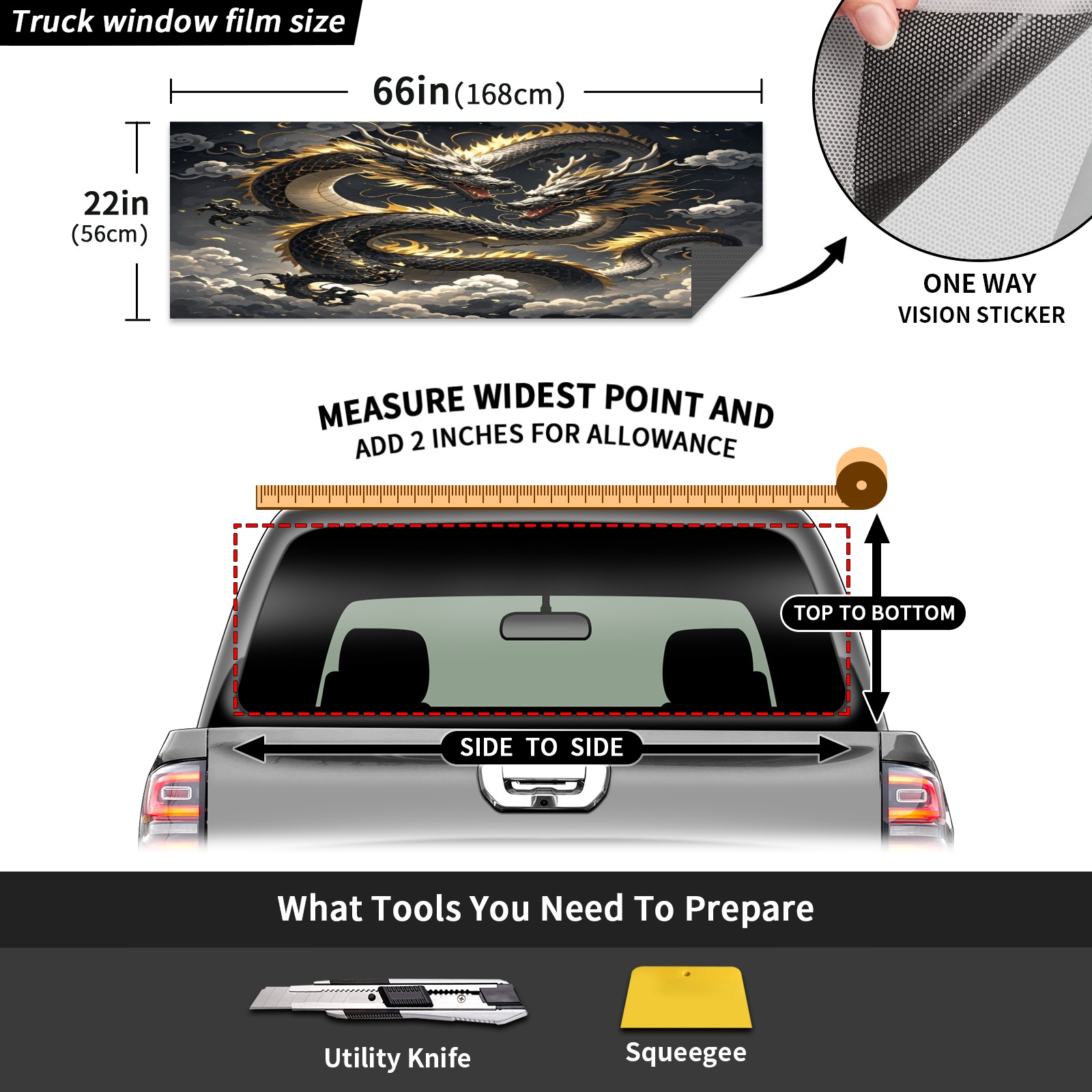 Pickup Car Window Stickers Decal Rear Window Decals for Trucks One Way Visual Waterproof Truck Back Window Tint Decal Graphic Perforated Vinyl Truck Stickers 66X 22inch Dargons