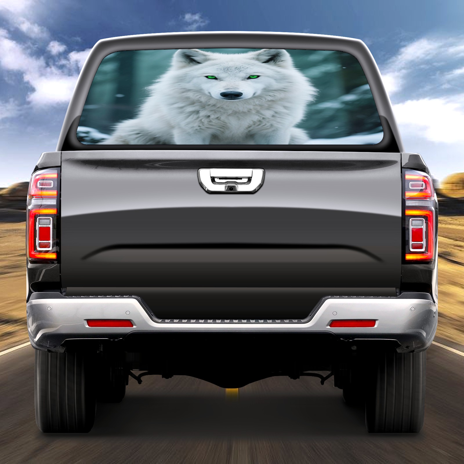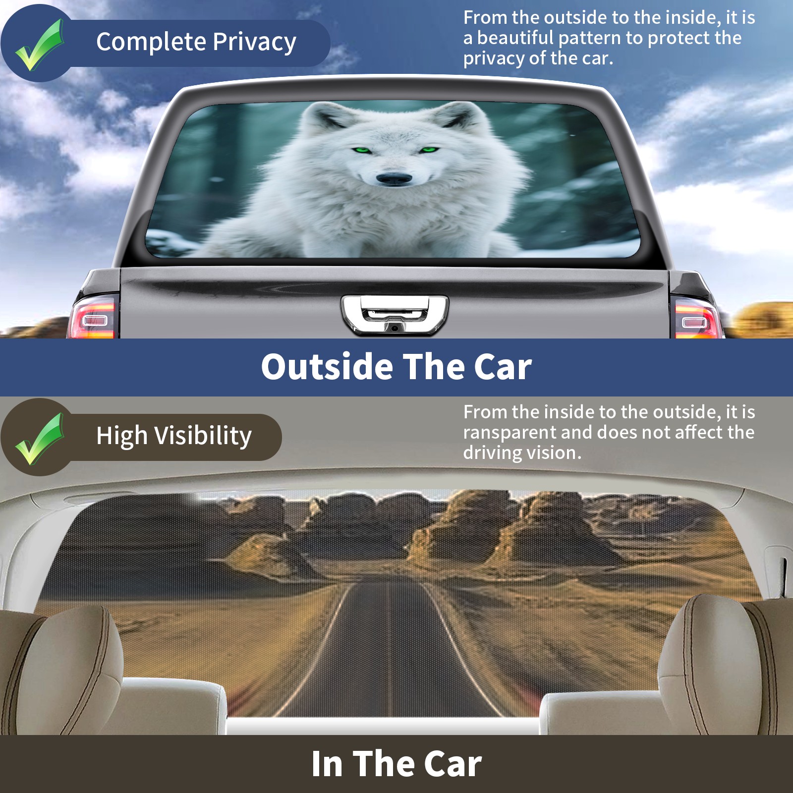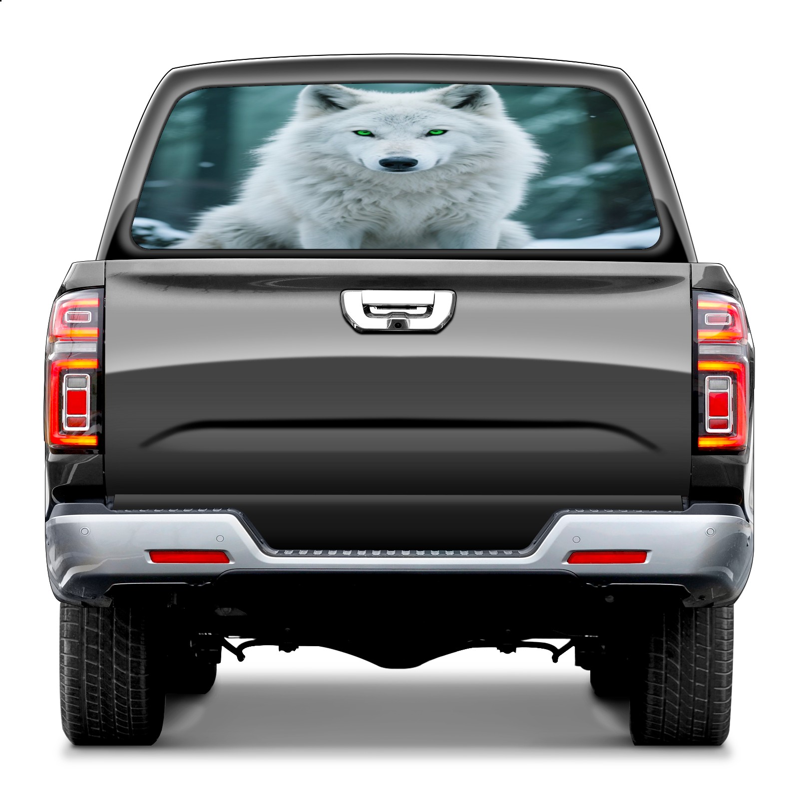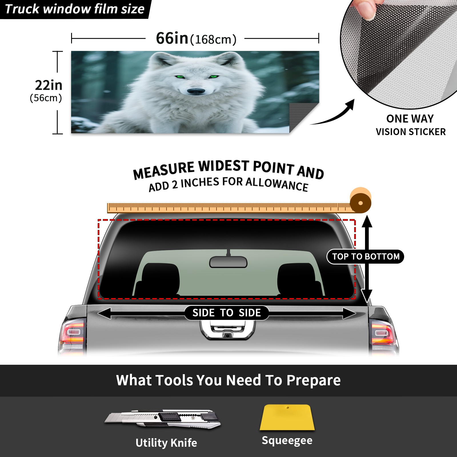 Pickup Car Window Stickers Decal Rear Window Decals for Trucks One Way Visual Waterproof Truck Back Window Tint Decal Graphic Perforated Vinyl Truck Stickers 66X 22inch Ice White Forest Wolf