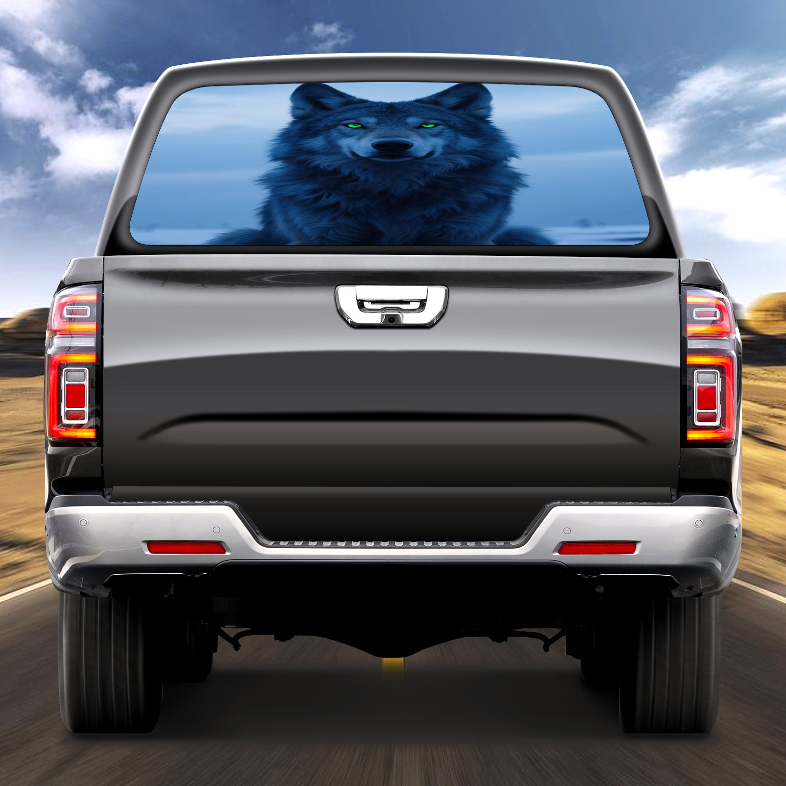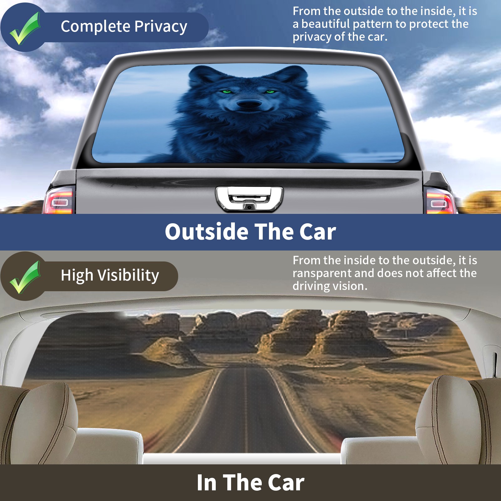 Pickup Car Window Stickers Decal Rear Window Decals for Trucks One Way Visual Waterproof Truck Back Window Tint Decal Graphic Perforated Vinyl Truck Stickers 66X 22inch Grey Wolf