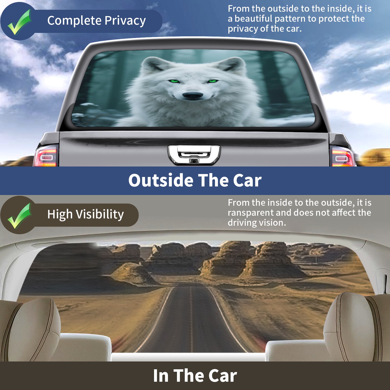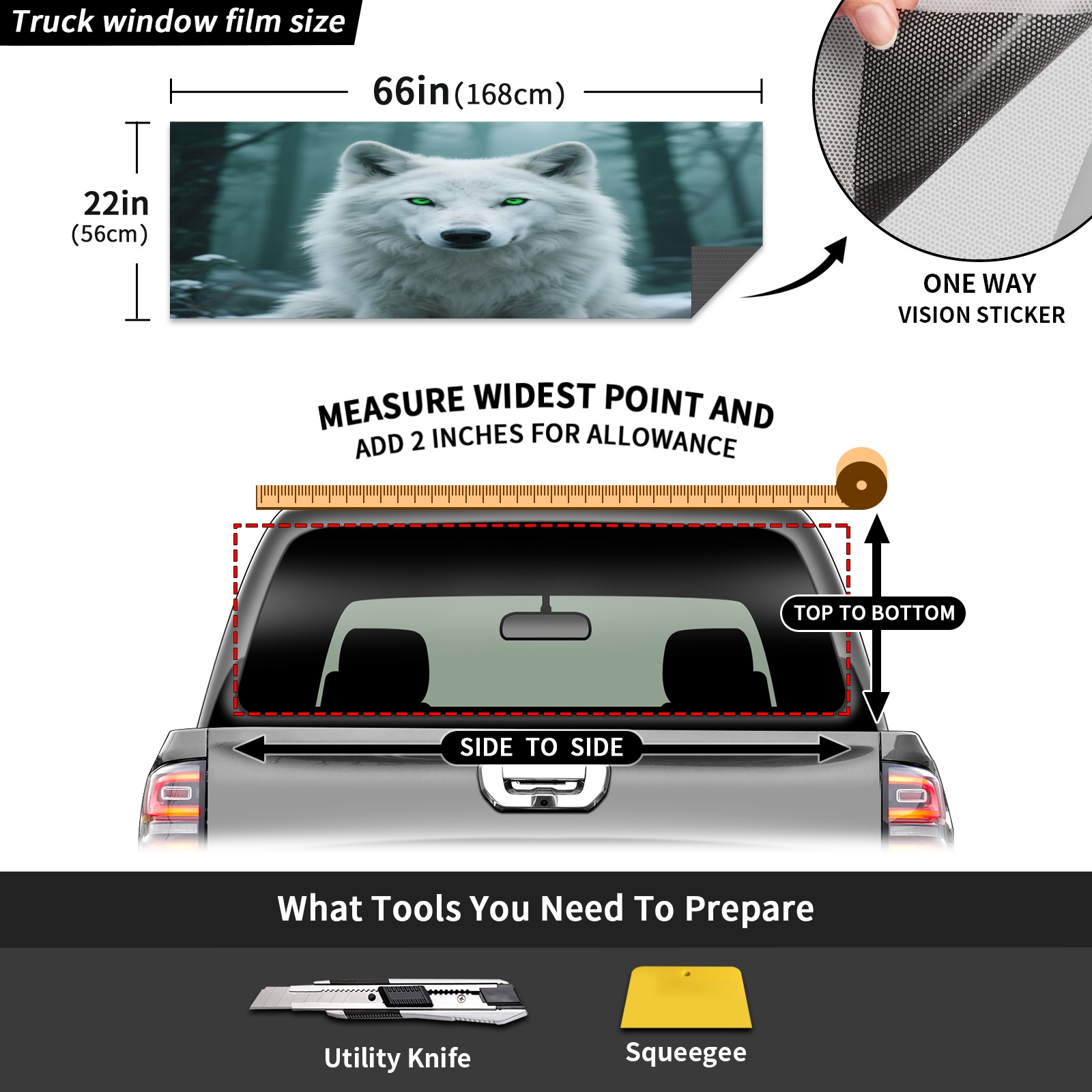 Pickup Car Window Stickers Decal Rear Window Decals for Trucks One Way Visual Waterproof Truck Back Window Tint Decal Graphic Perforated Vinyl Truck Stickers 66X 22inch White Wolf