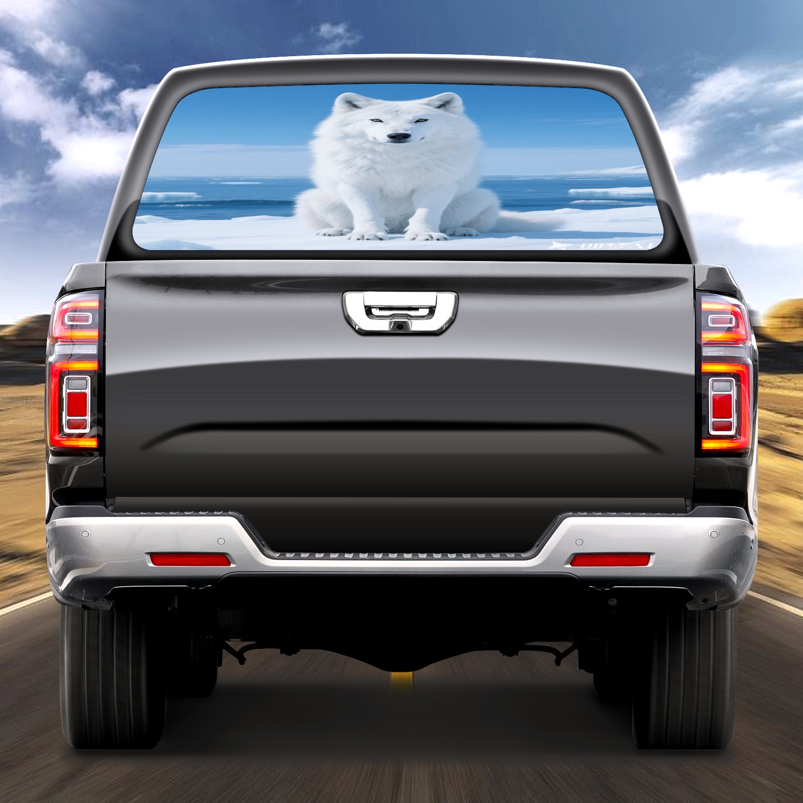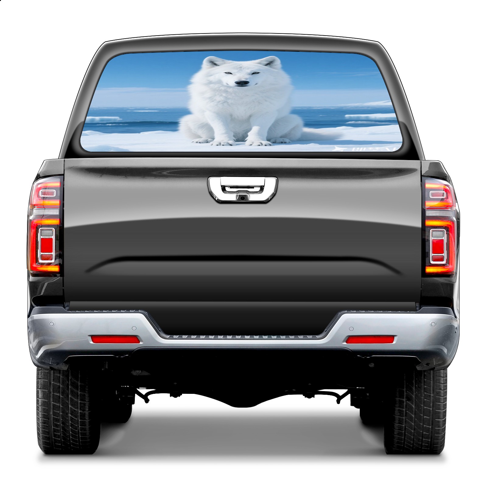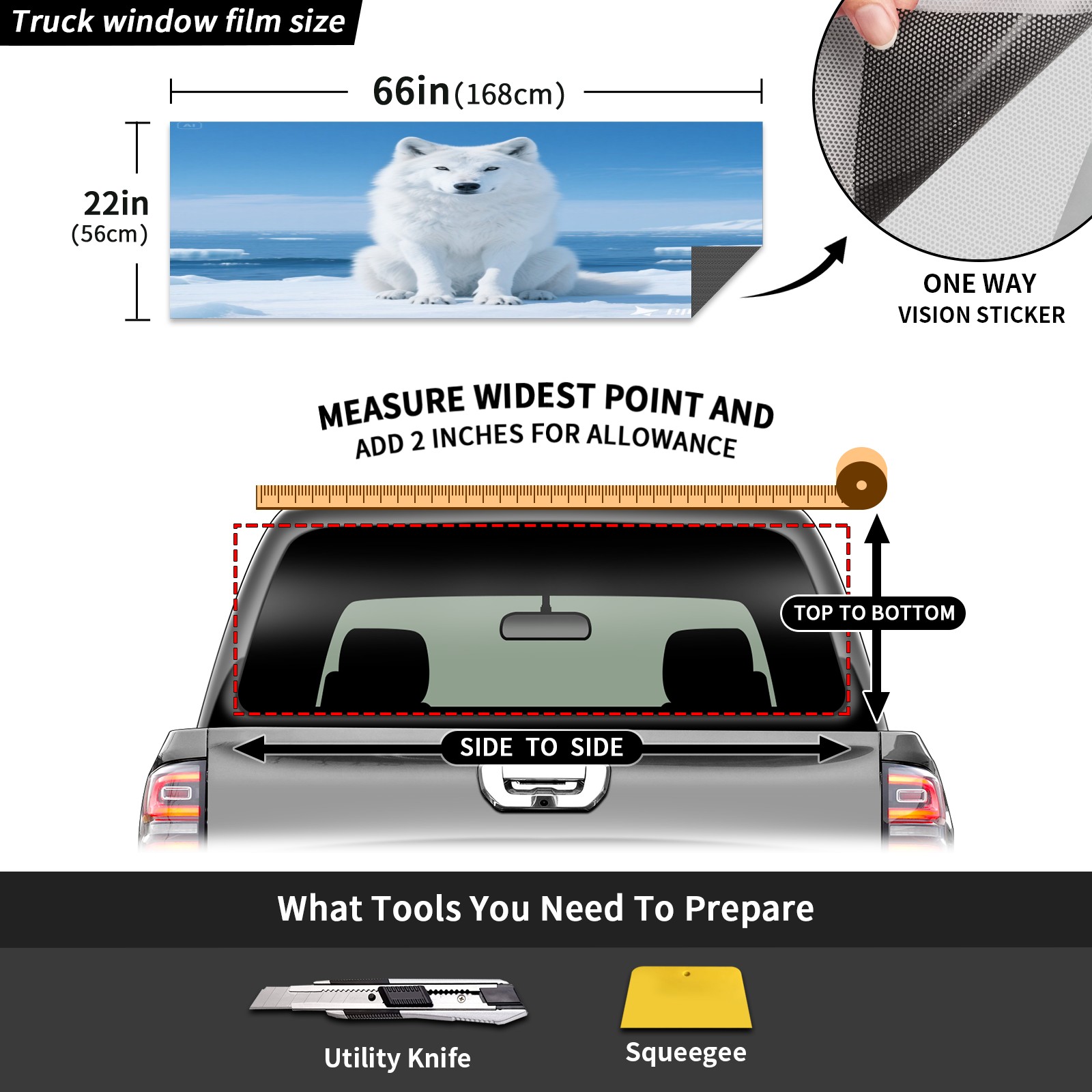 Pickup Car Window Stickers Decal Rear Window Decals for Trucks One Way Visual Waterproof Truck Back Window Tint Decal Graphic Perforated Vinyl Truck Stickers 66X 22inch White Ice Wolf