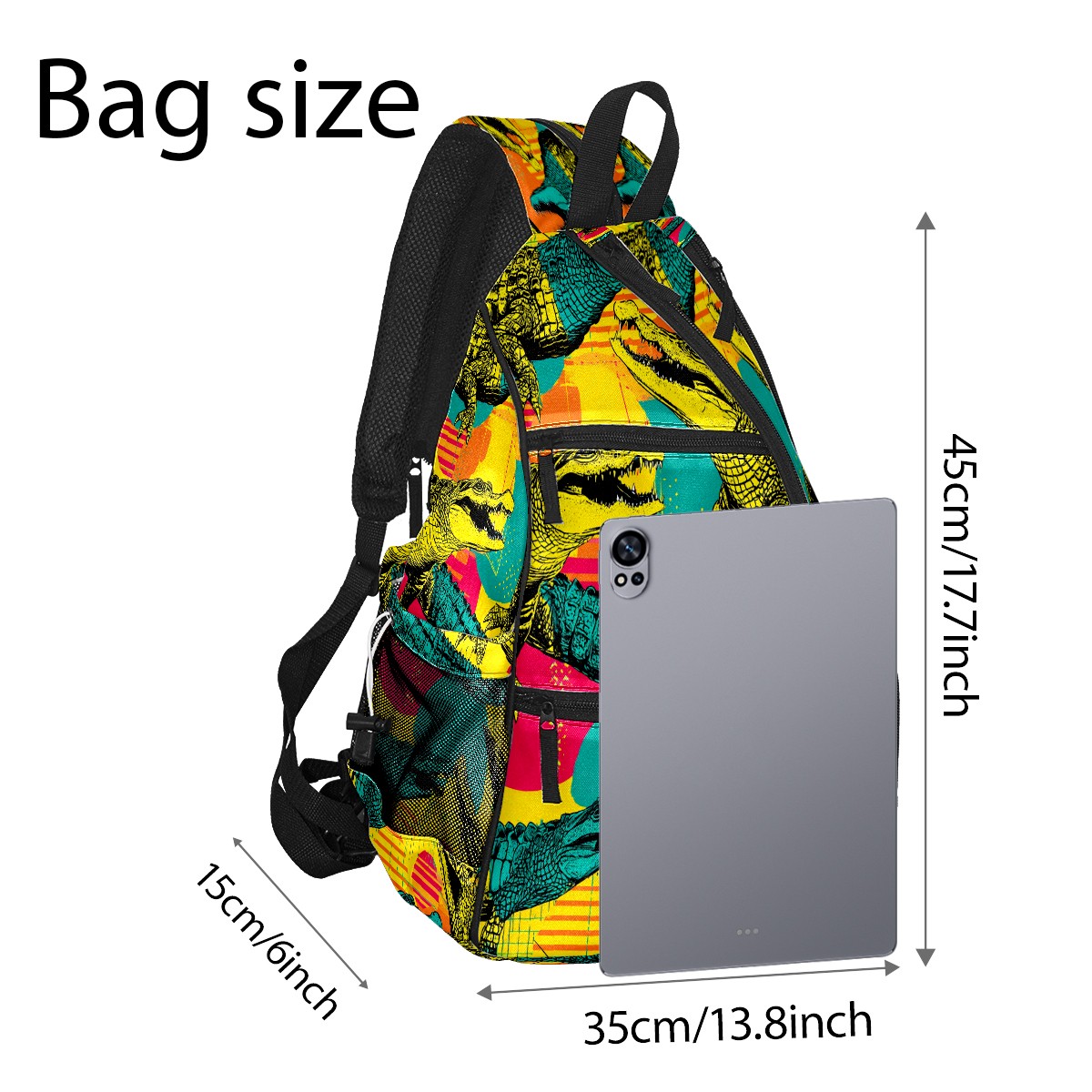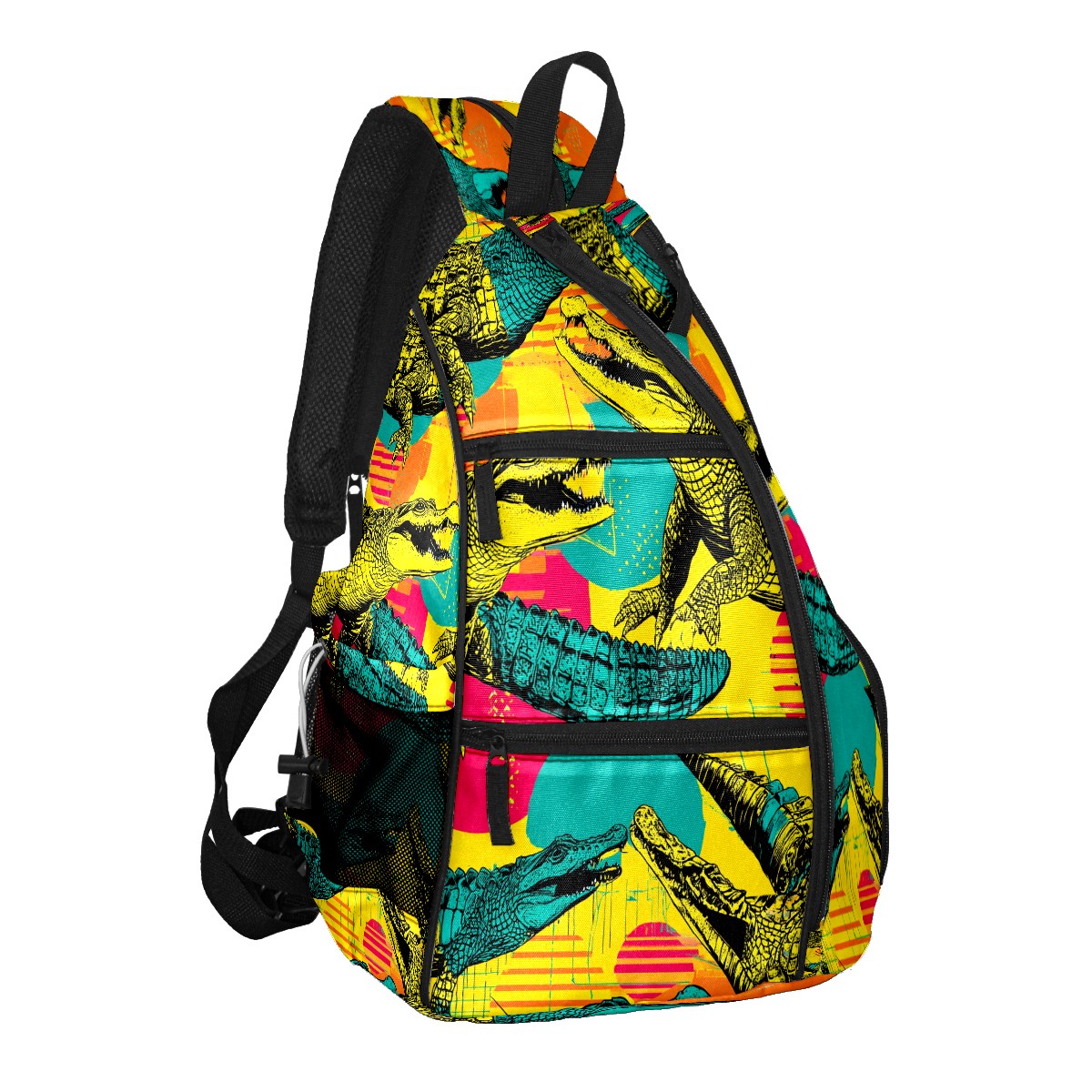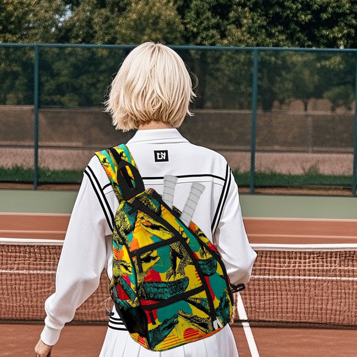 Pickleball Bag with Padded Back, Multicolor Pop Art Crocodiles Multi-Compartment Paddle Backpack, Lightweight Nylon Sports Bag for Men & Women