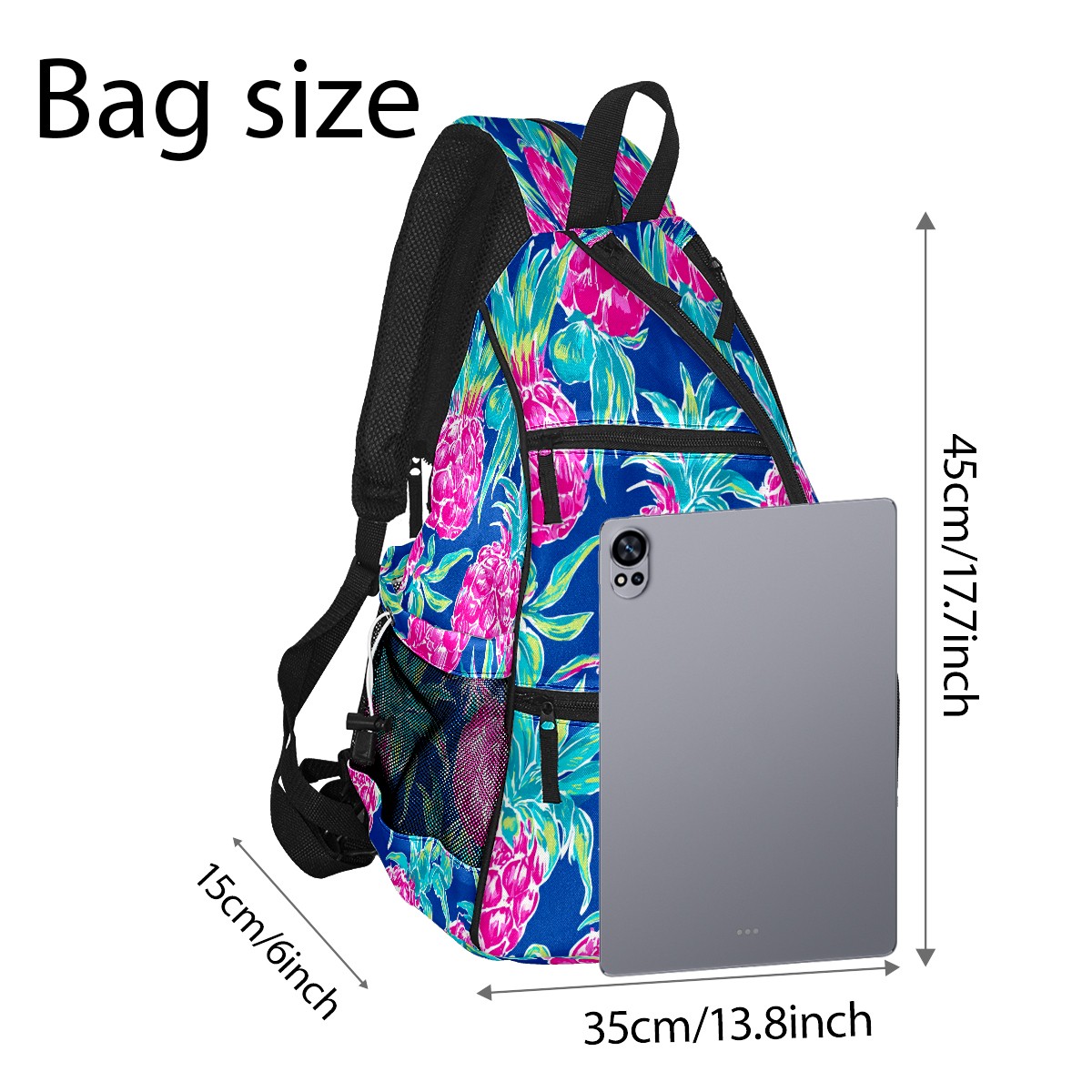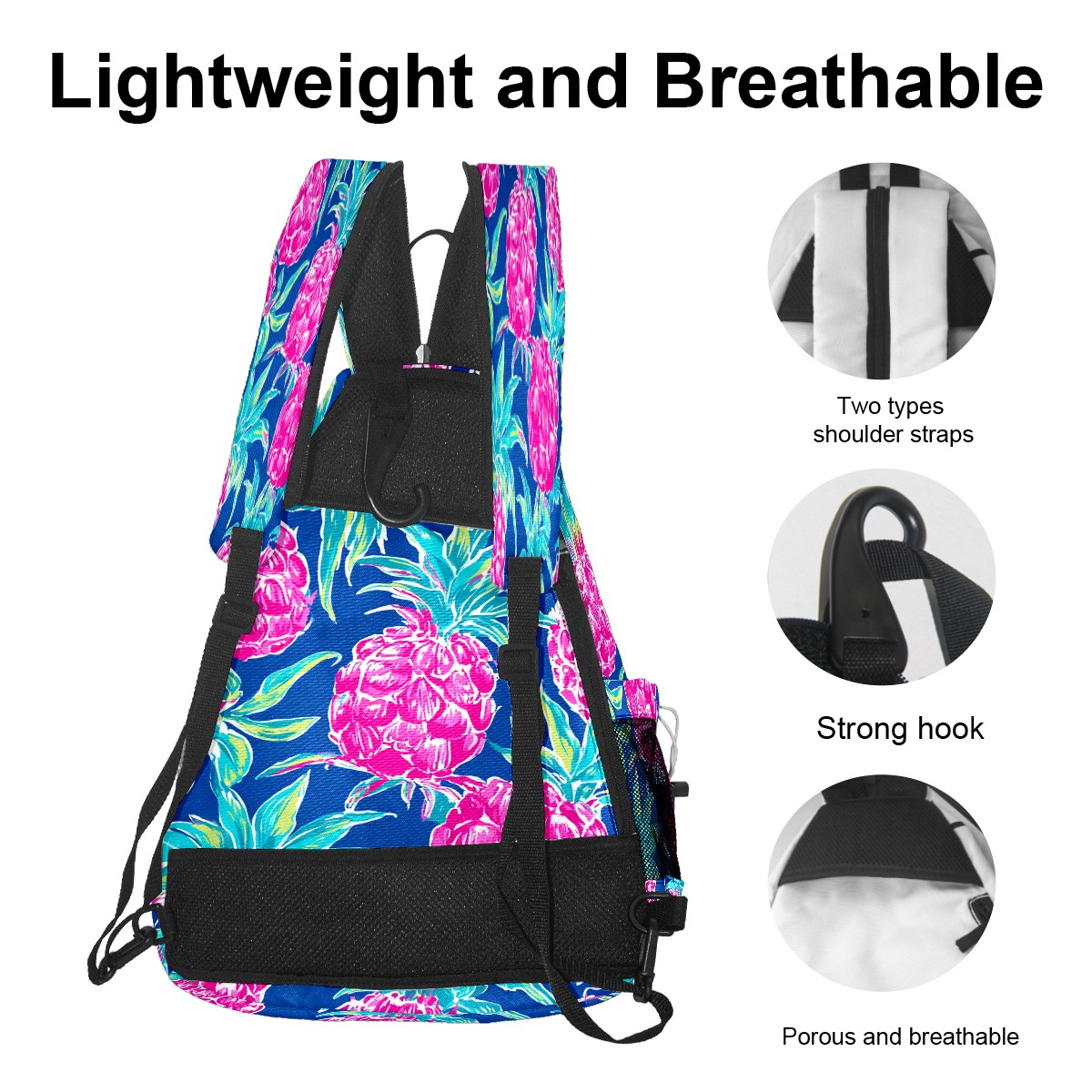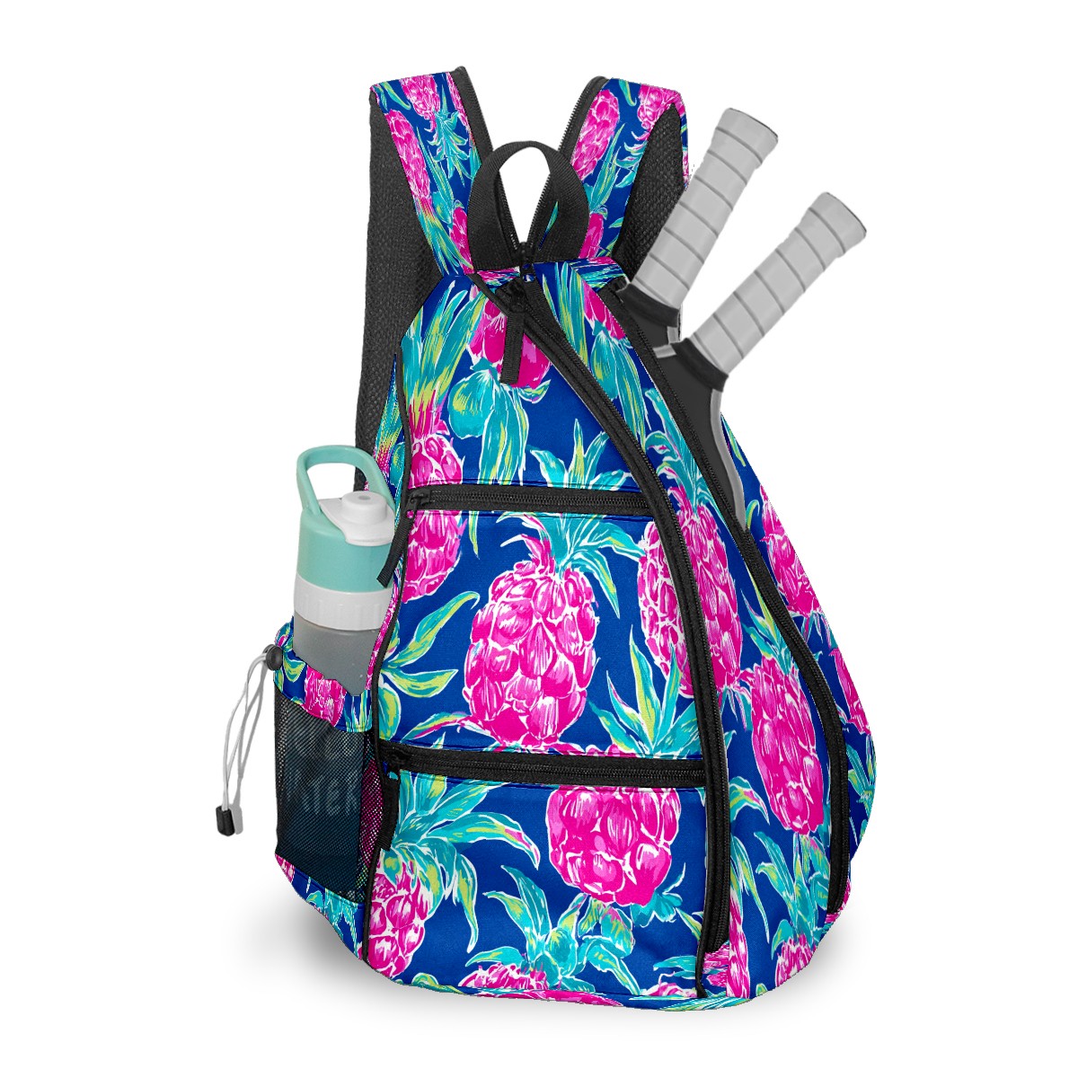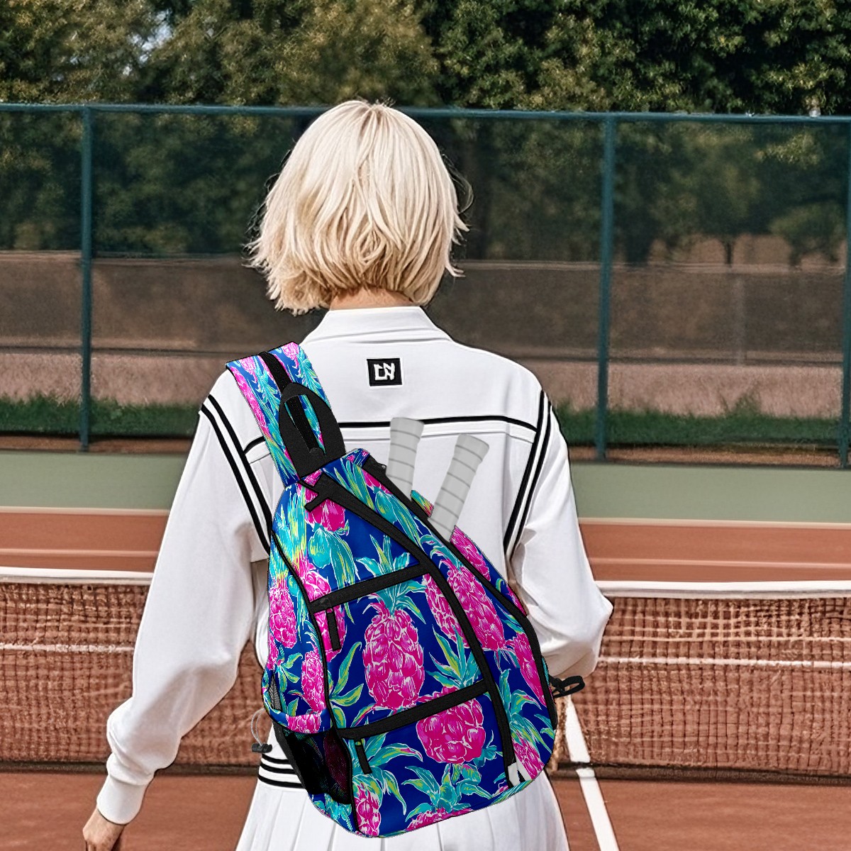 Pickleball Bag with Padded Back, Blue Pink Pineapples Multi-Compartment Paddle Backpack, Lightweight Nylon Sports Bag for Men & Women