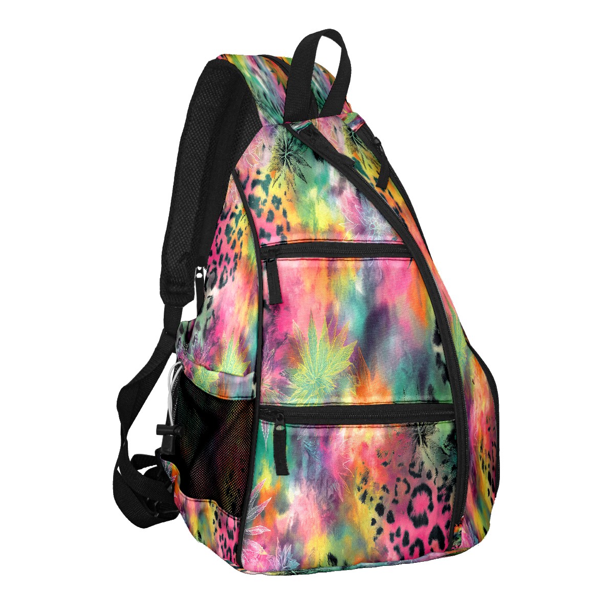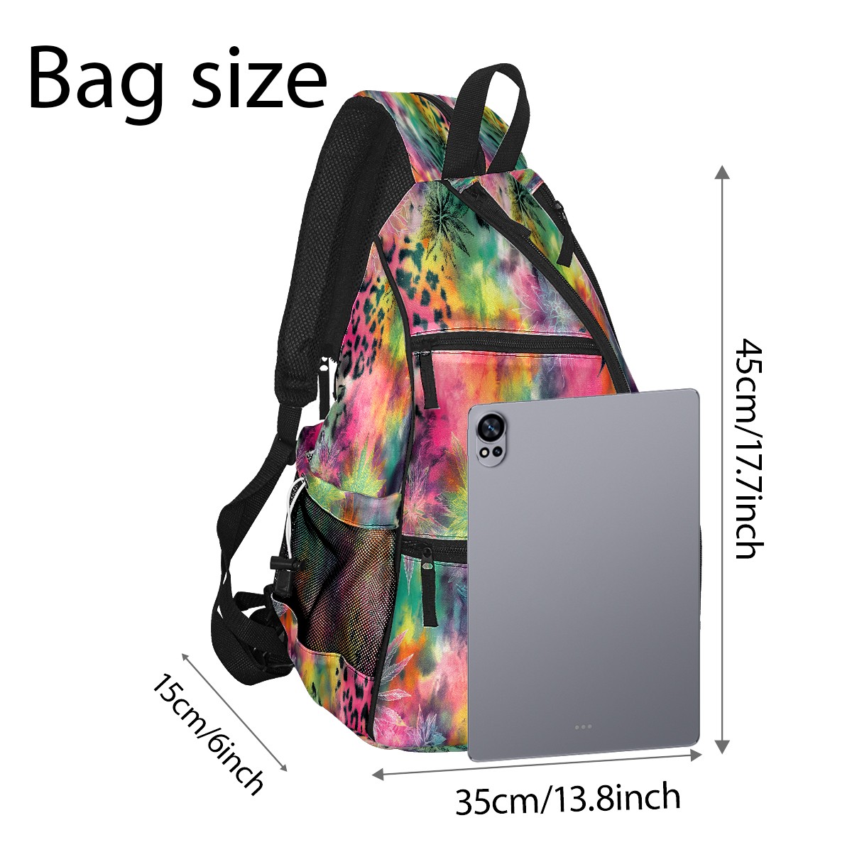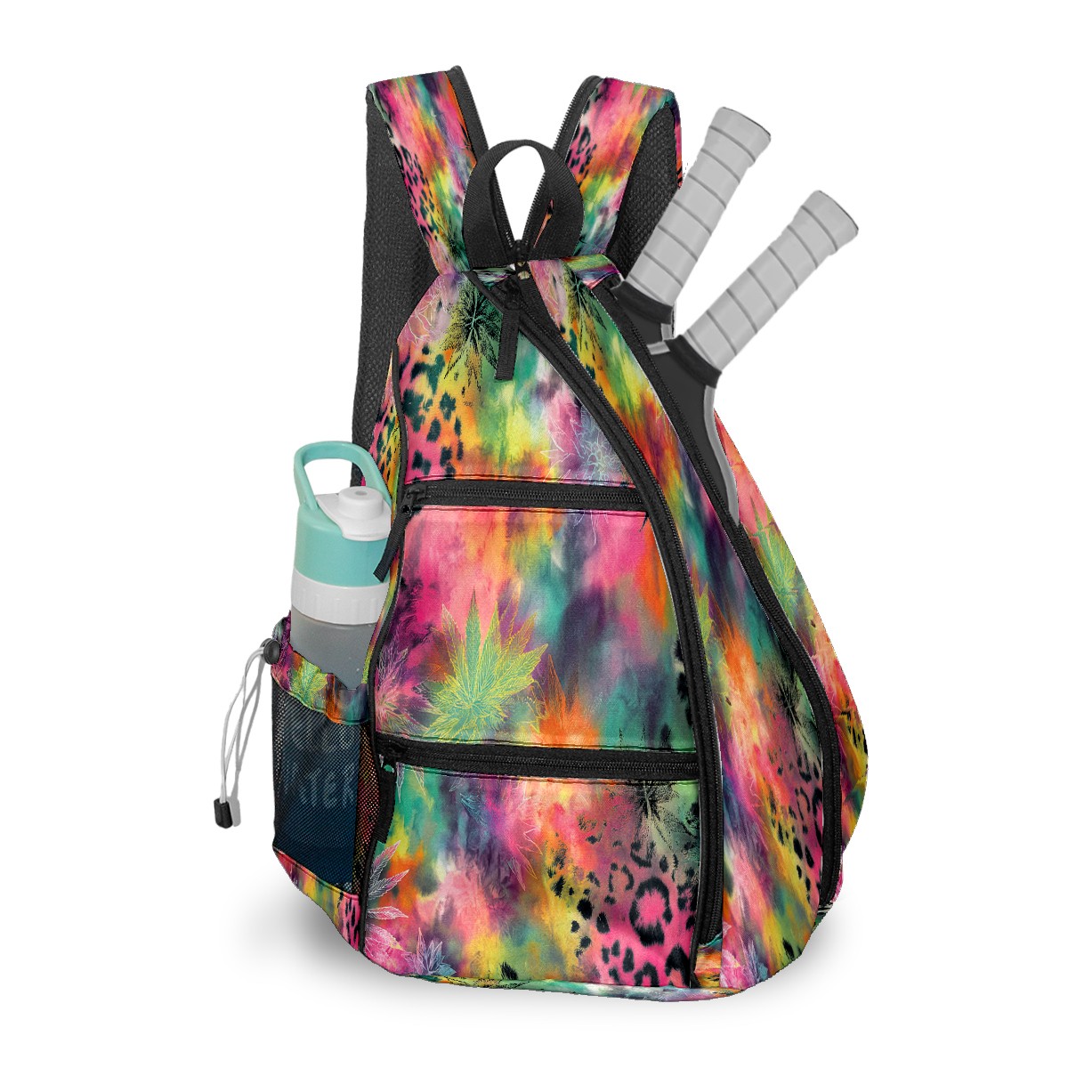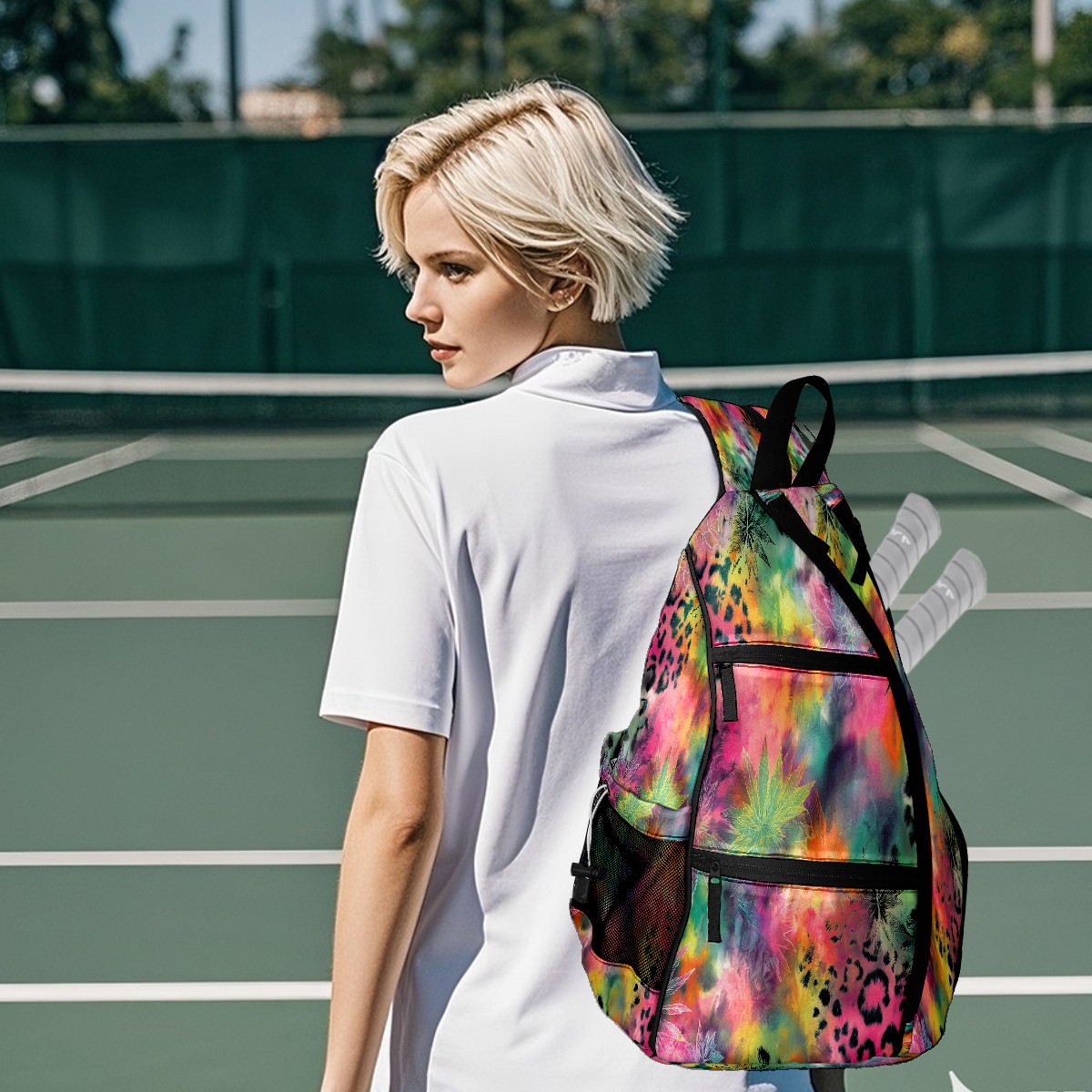 Pickleball Bag with Padded Back, Multicolor Tie Dye Multi-Compartment Paddle Backpack, Lightweight Nylon Sports Bag for Men & Women