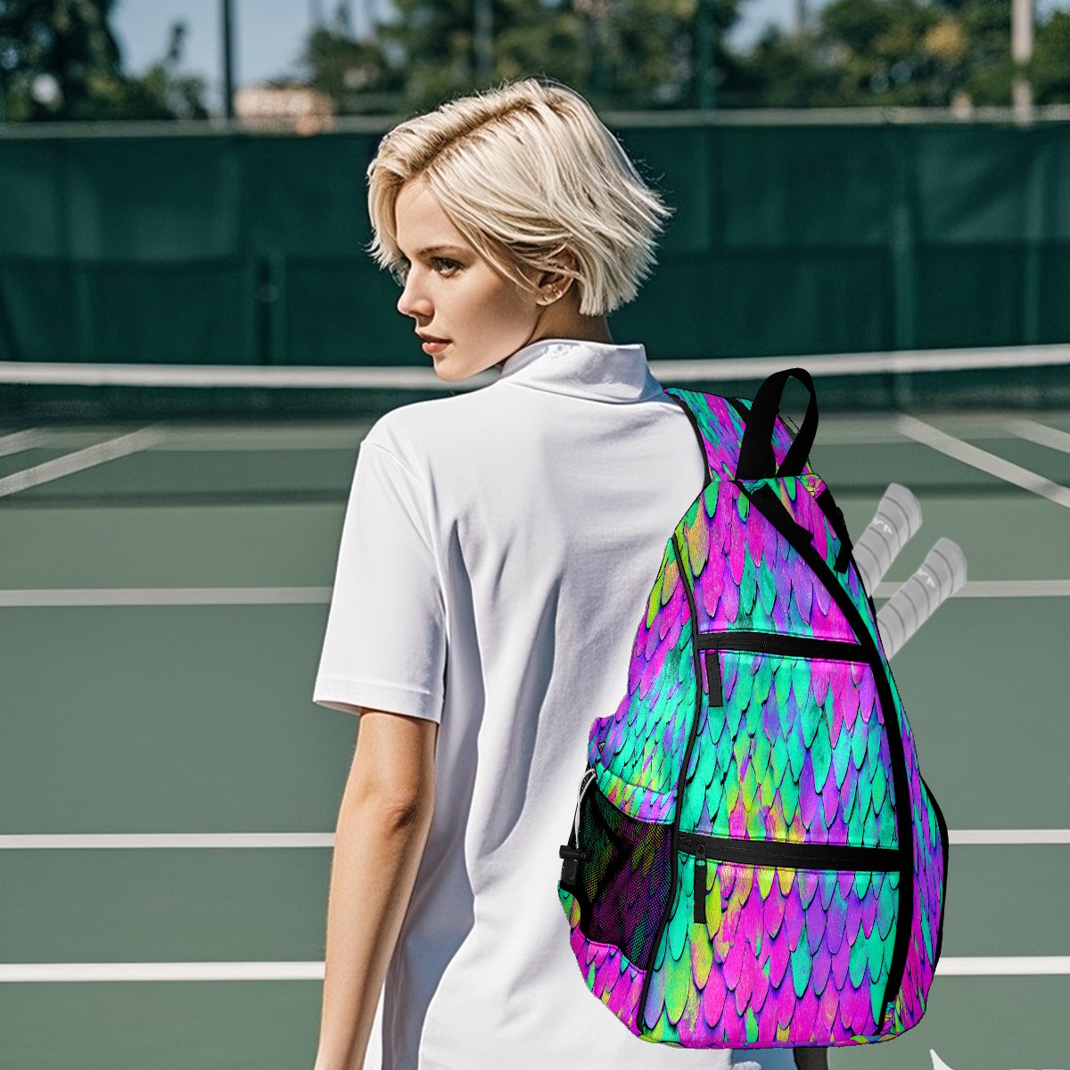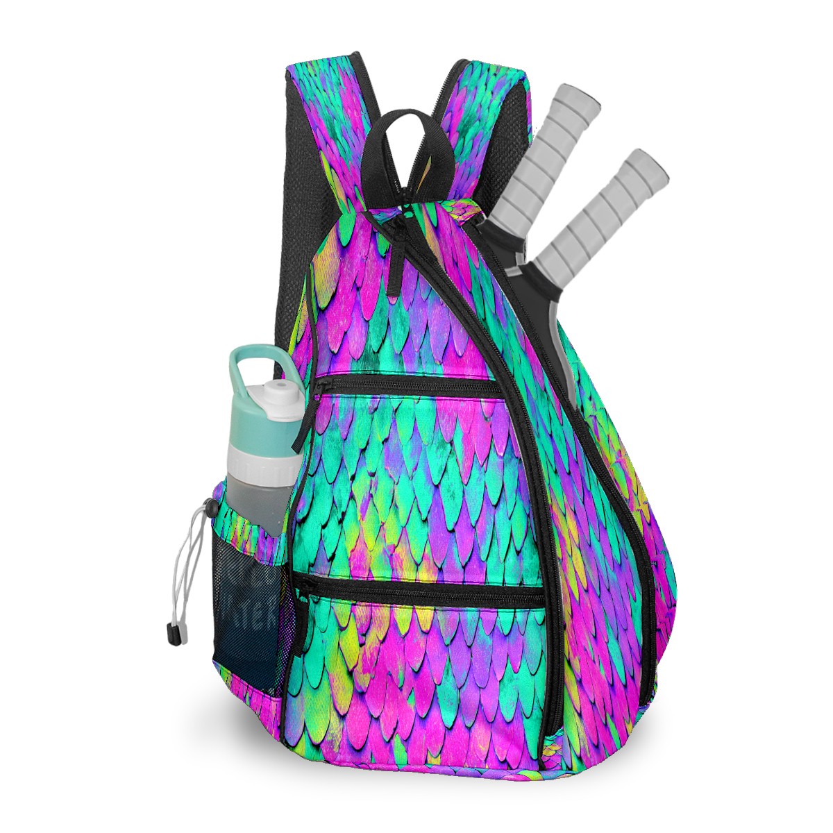 Pickleball Bag with Padded Back, Multicolor Scales Multi-Compartment Paddle Backpack, Lightweight Nylon Sports Bag for Men & Women