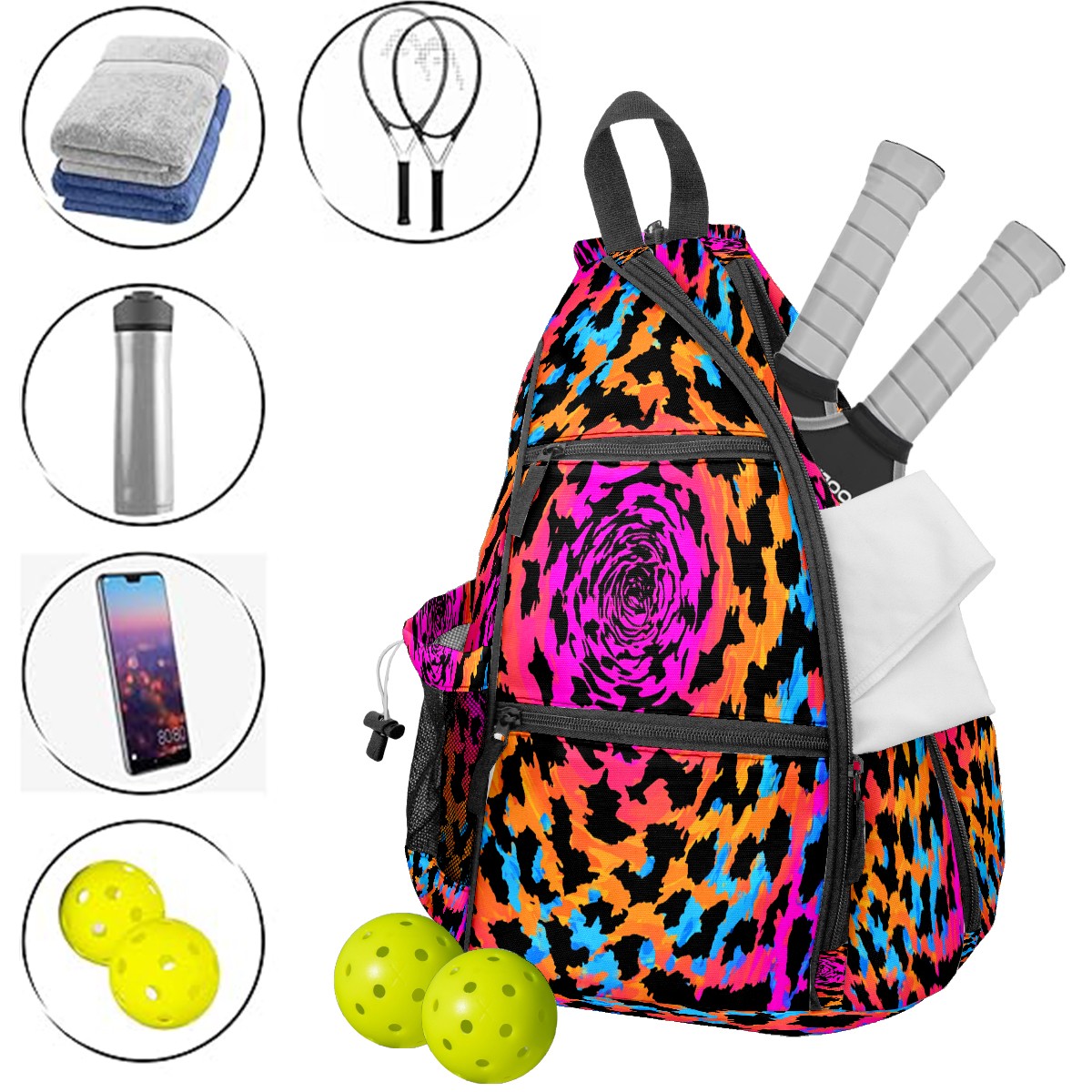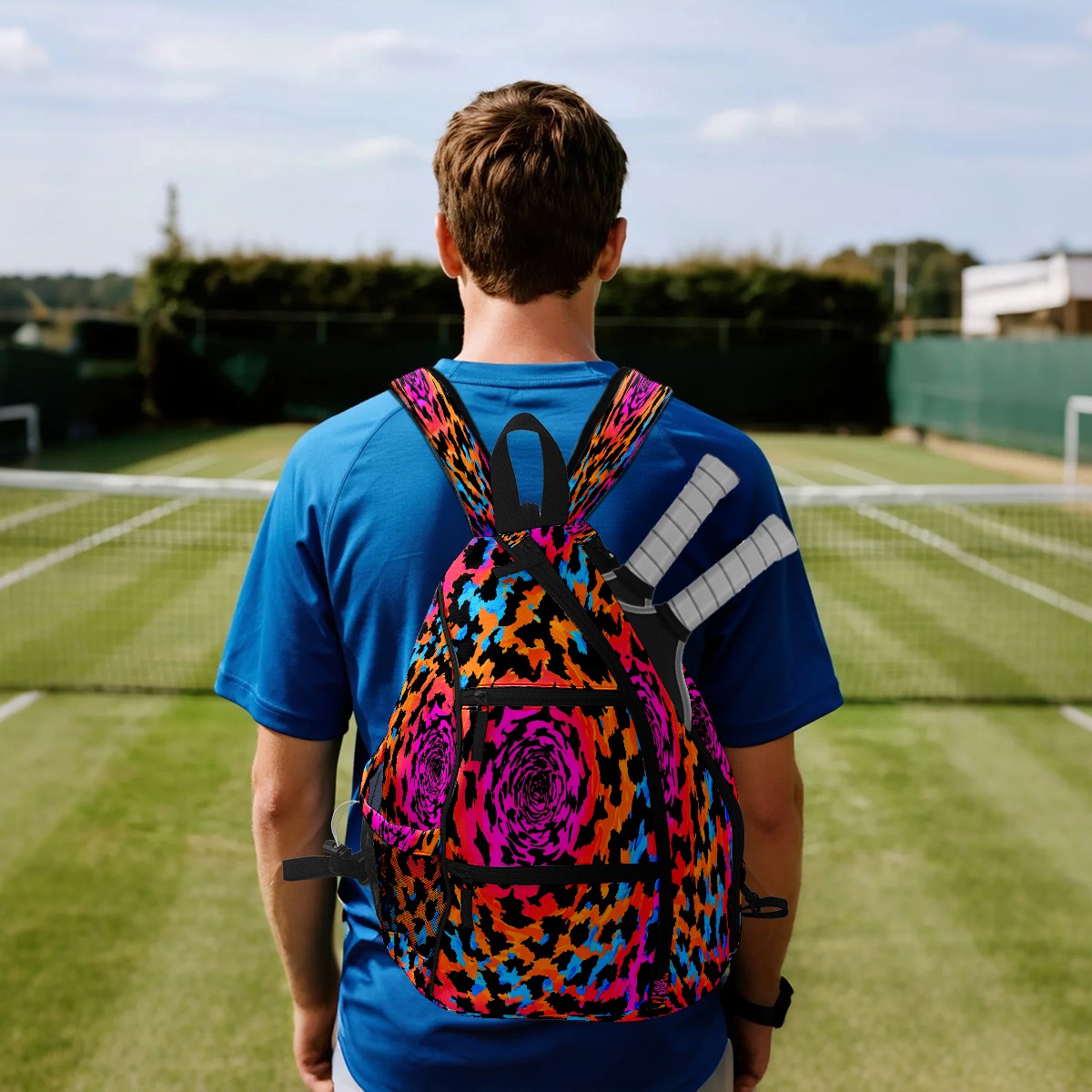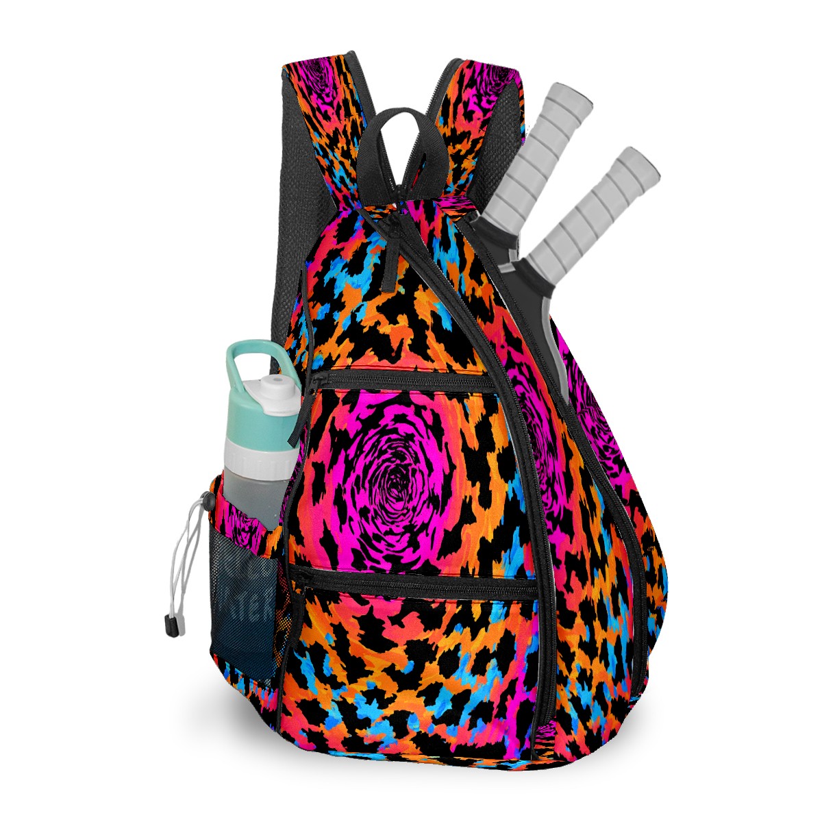 Pickleball Bag with Padded Back, Multicolor Swirl Multi-Compartment Paddle Backpack, Lightweight Nylon Sports Bag for Men & Women