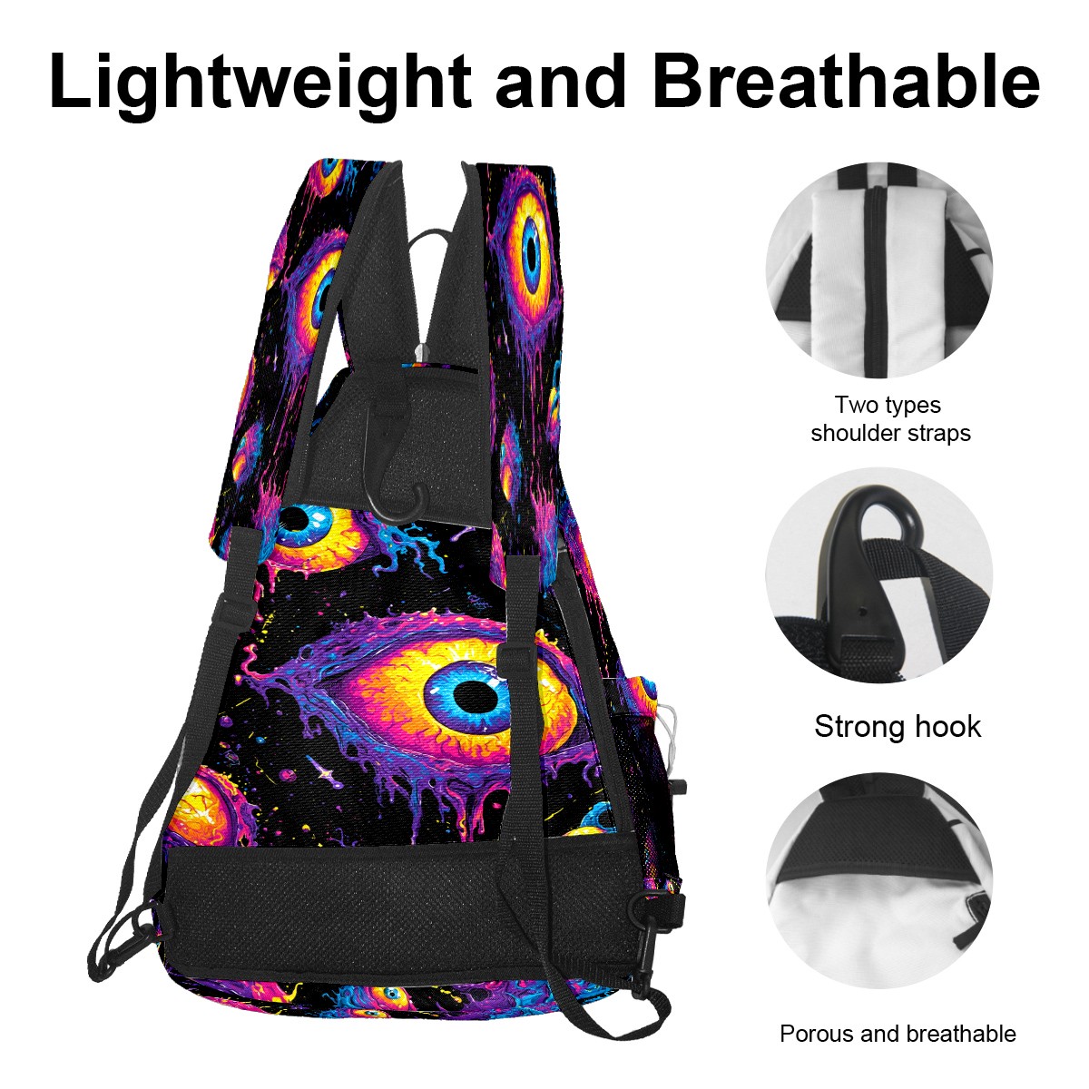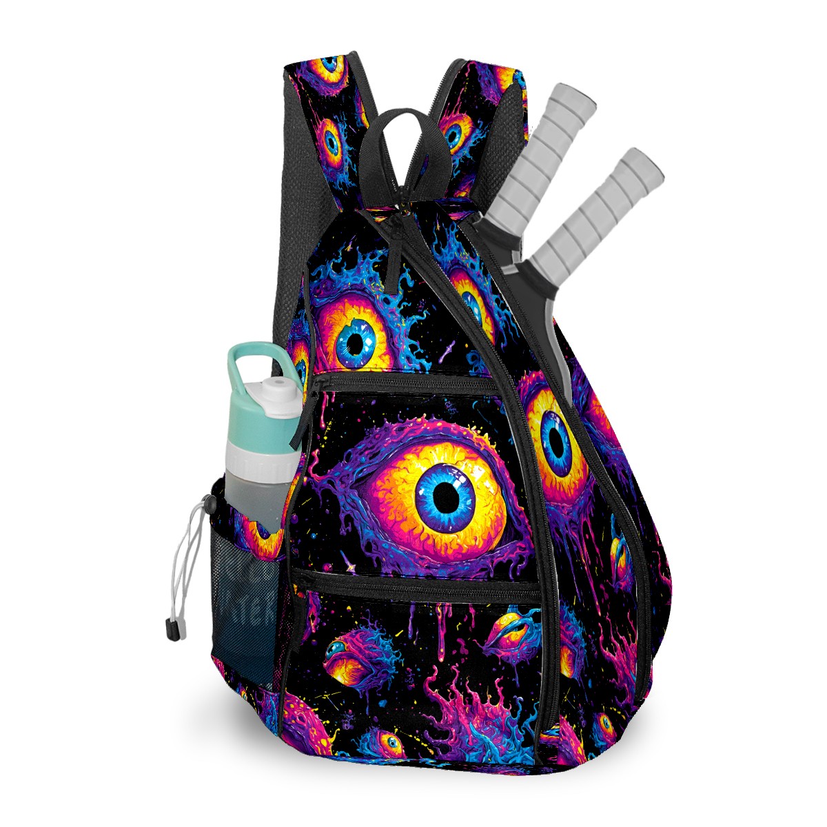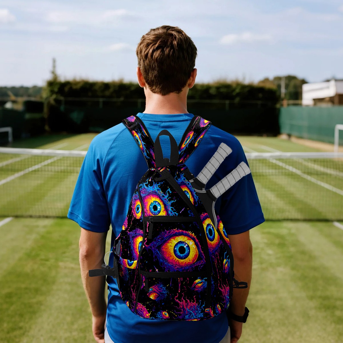 Pickleball Bag with Padded Back, Multicolor Eyes Multi-Compartment Paddle Backpack, Lightweight Nylon Sports Bag for Men & Women