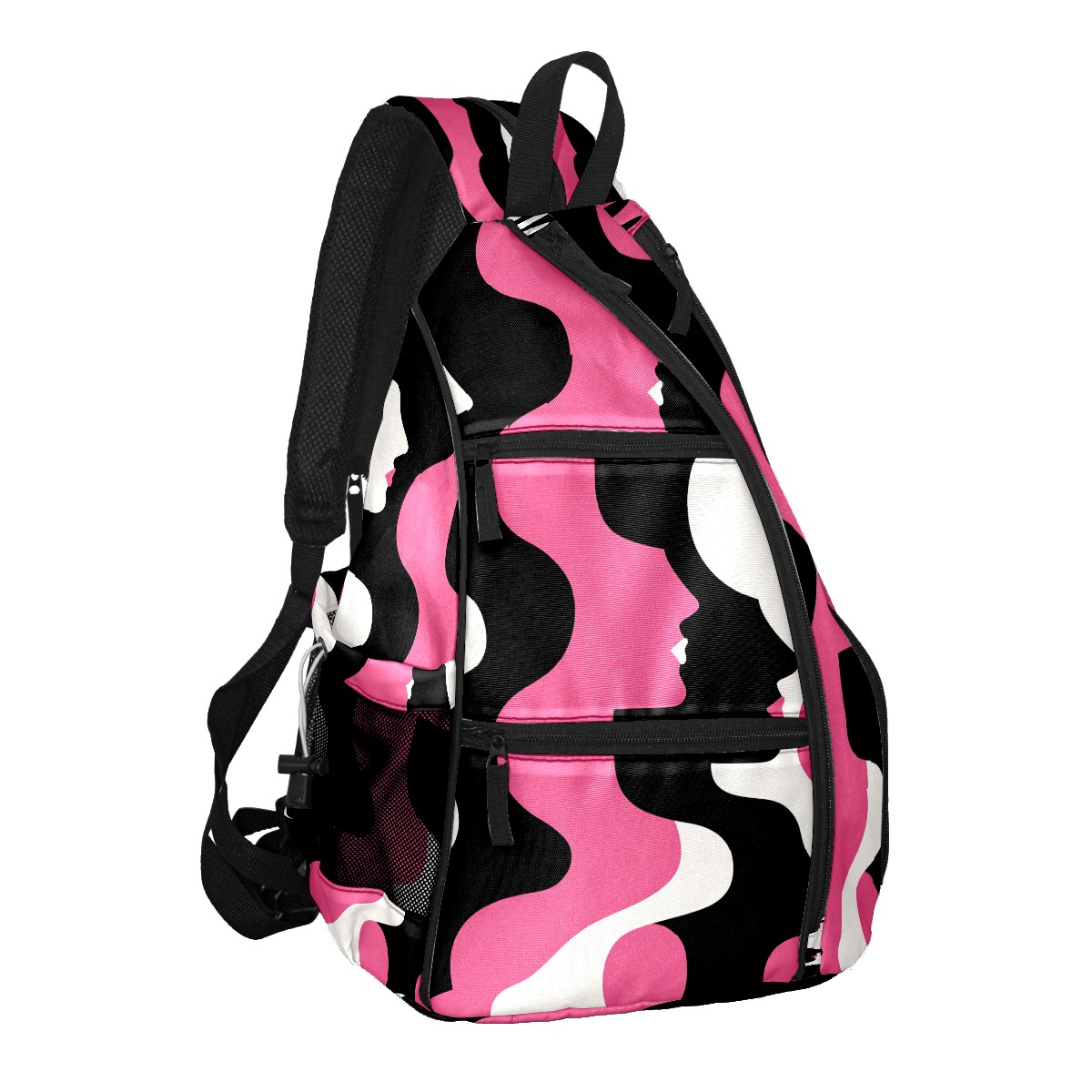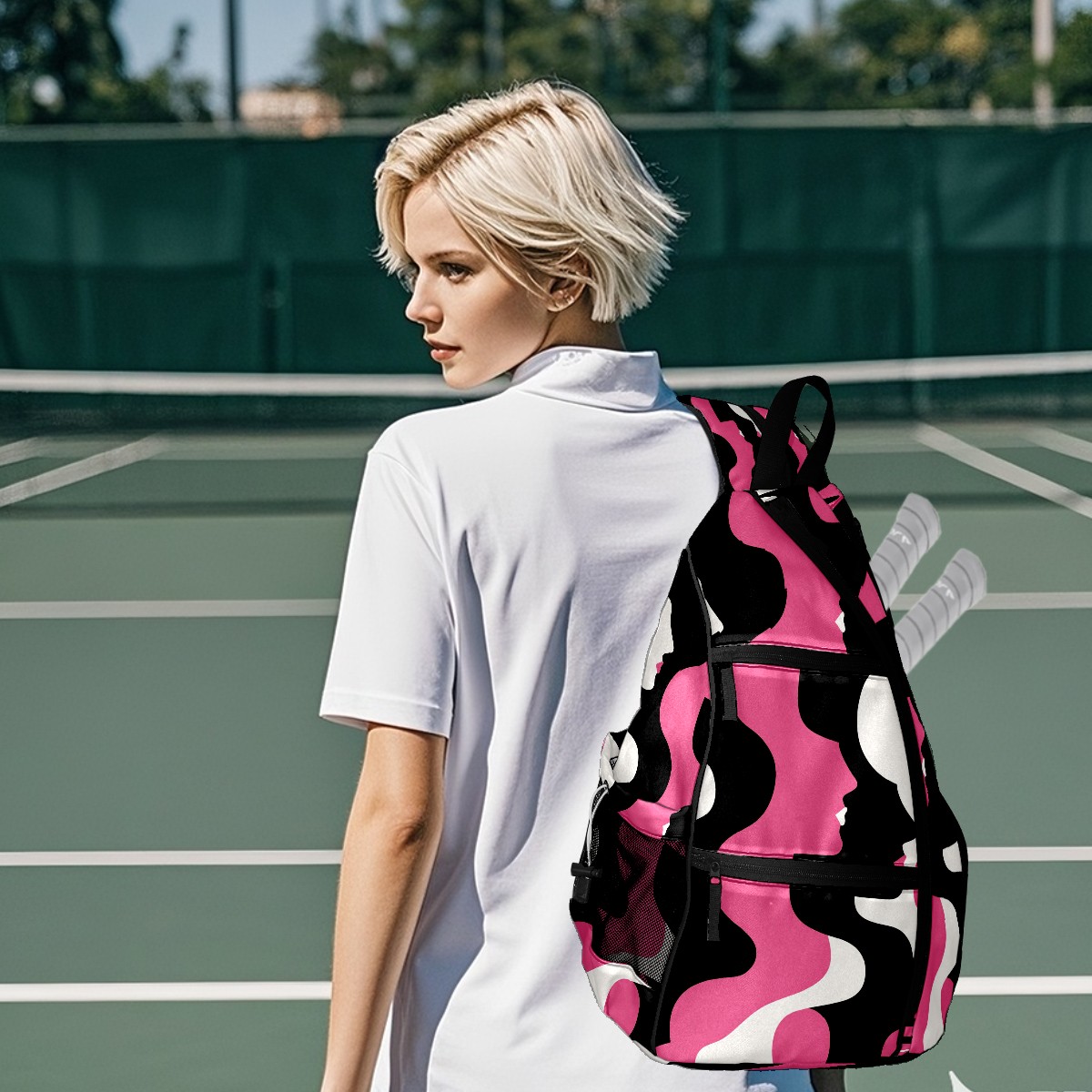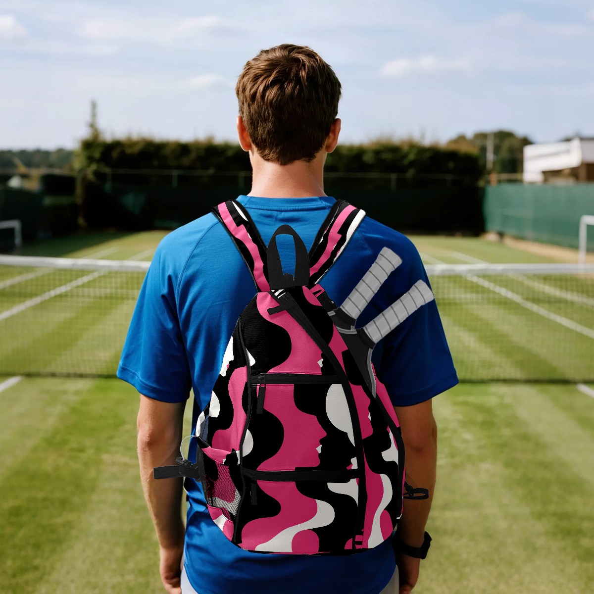 Pickleball Bag with Padded Back, Pink Black Face Waves Multi-Compartment Paddle Backpack, Lightweight Nylon Sports Bag for Men & Women