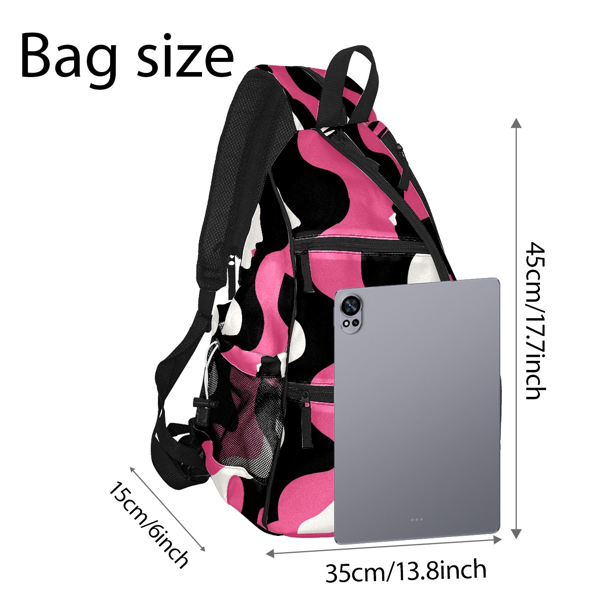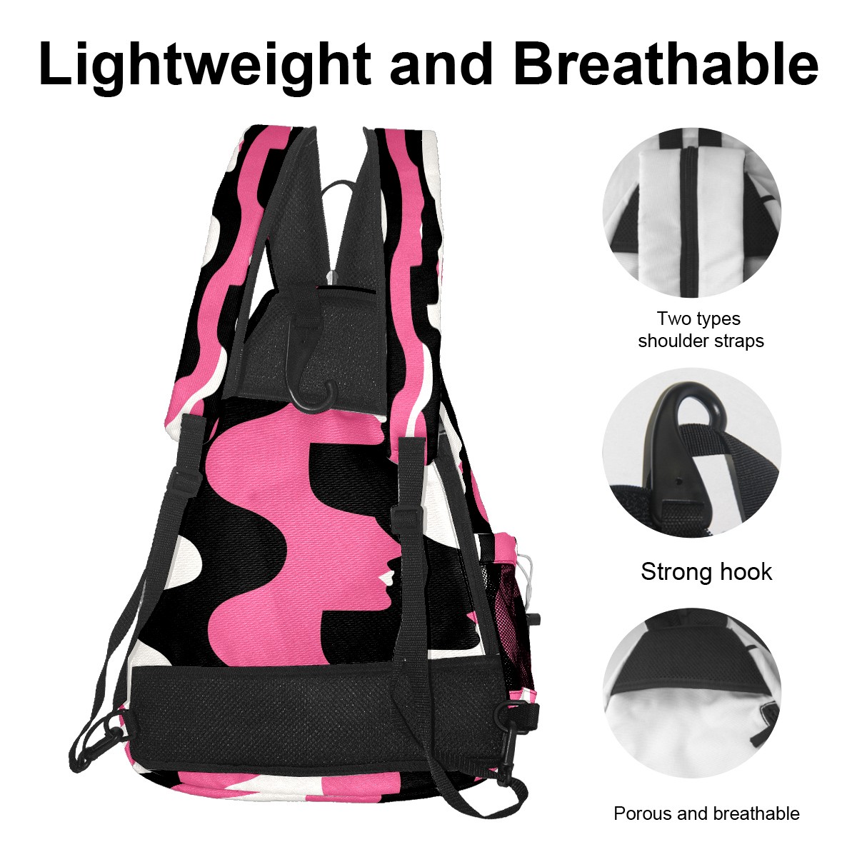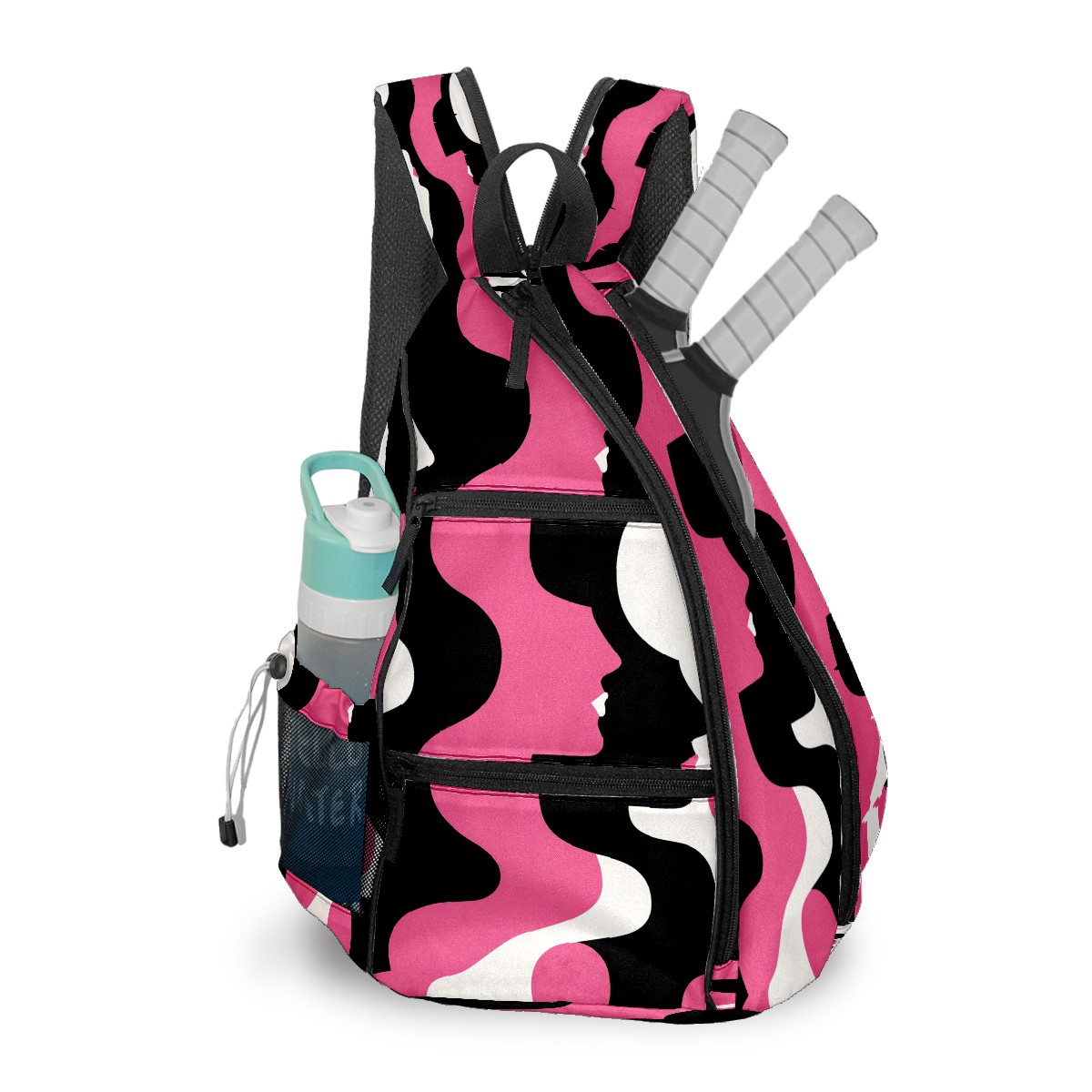Pickleball Bag with Padded Back, Pink Black Face Waves Multi-Compartment Paddle Backpack, Lightweight Nylon Sports Bag for Men & Women