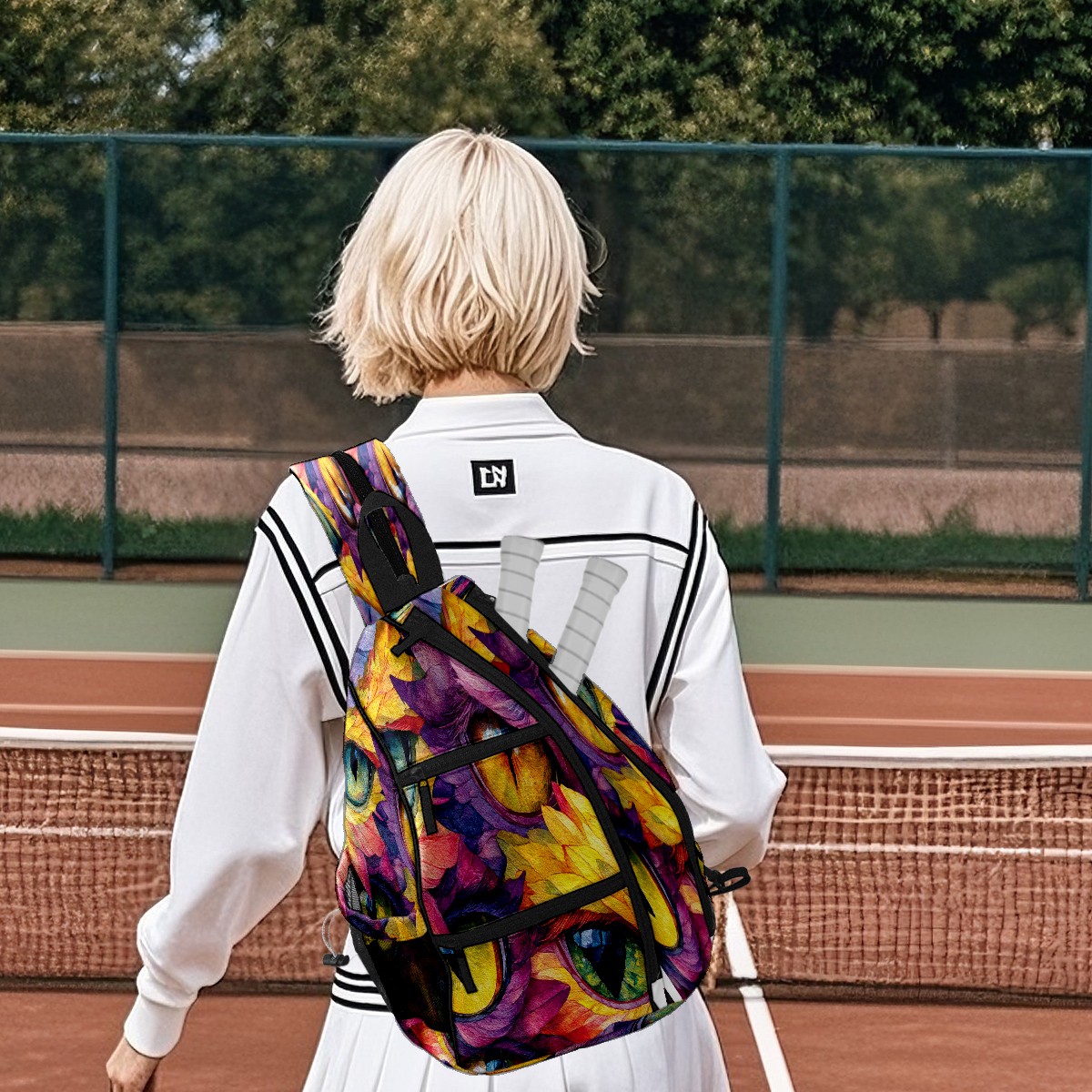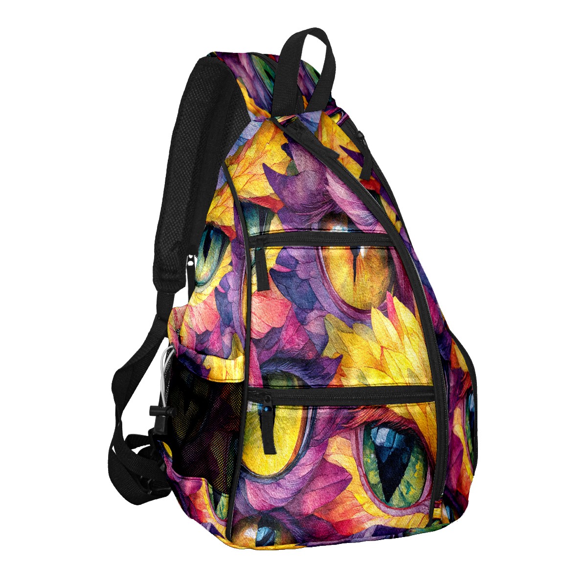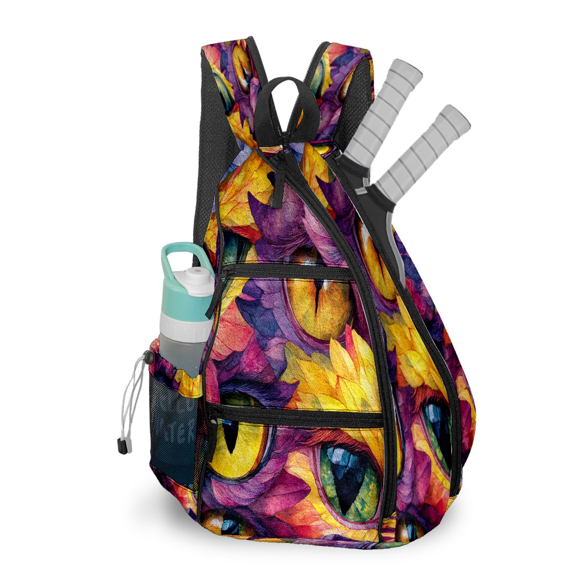 Pickleball Bag with Padded Back, Multicolor Eyes Art Multi-Compartment Paddle Backpack, Lightweight Nylon Sports Bag for Men & Women