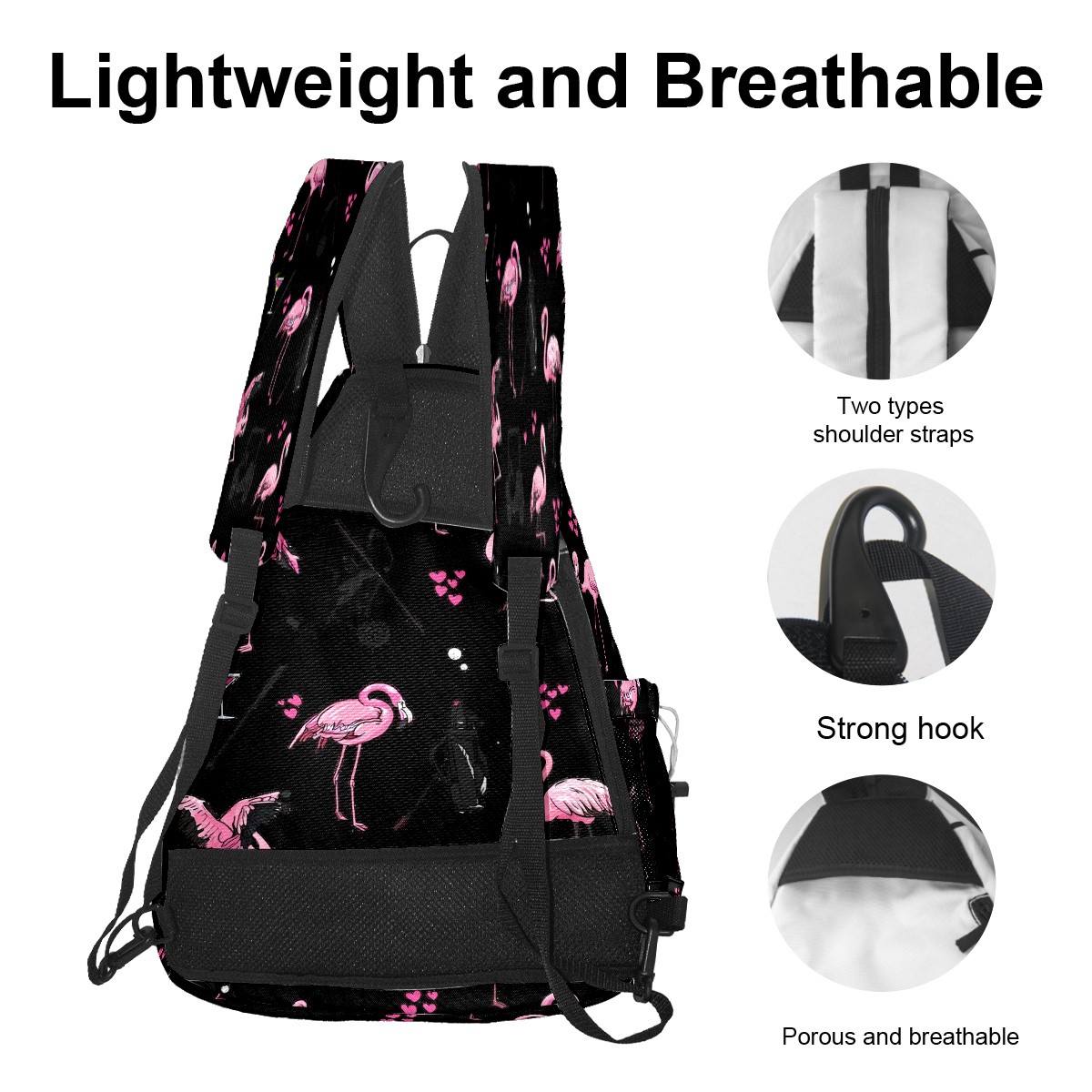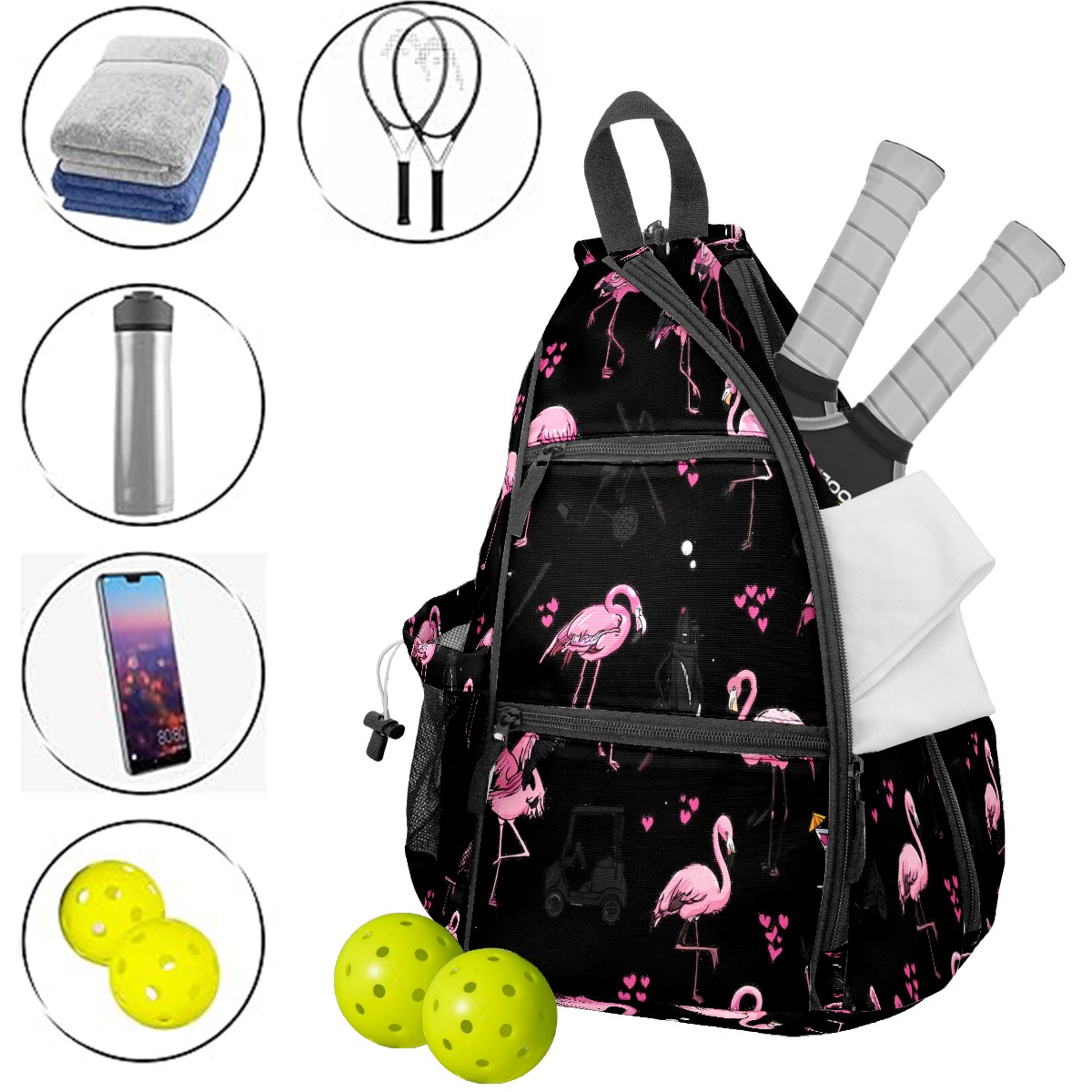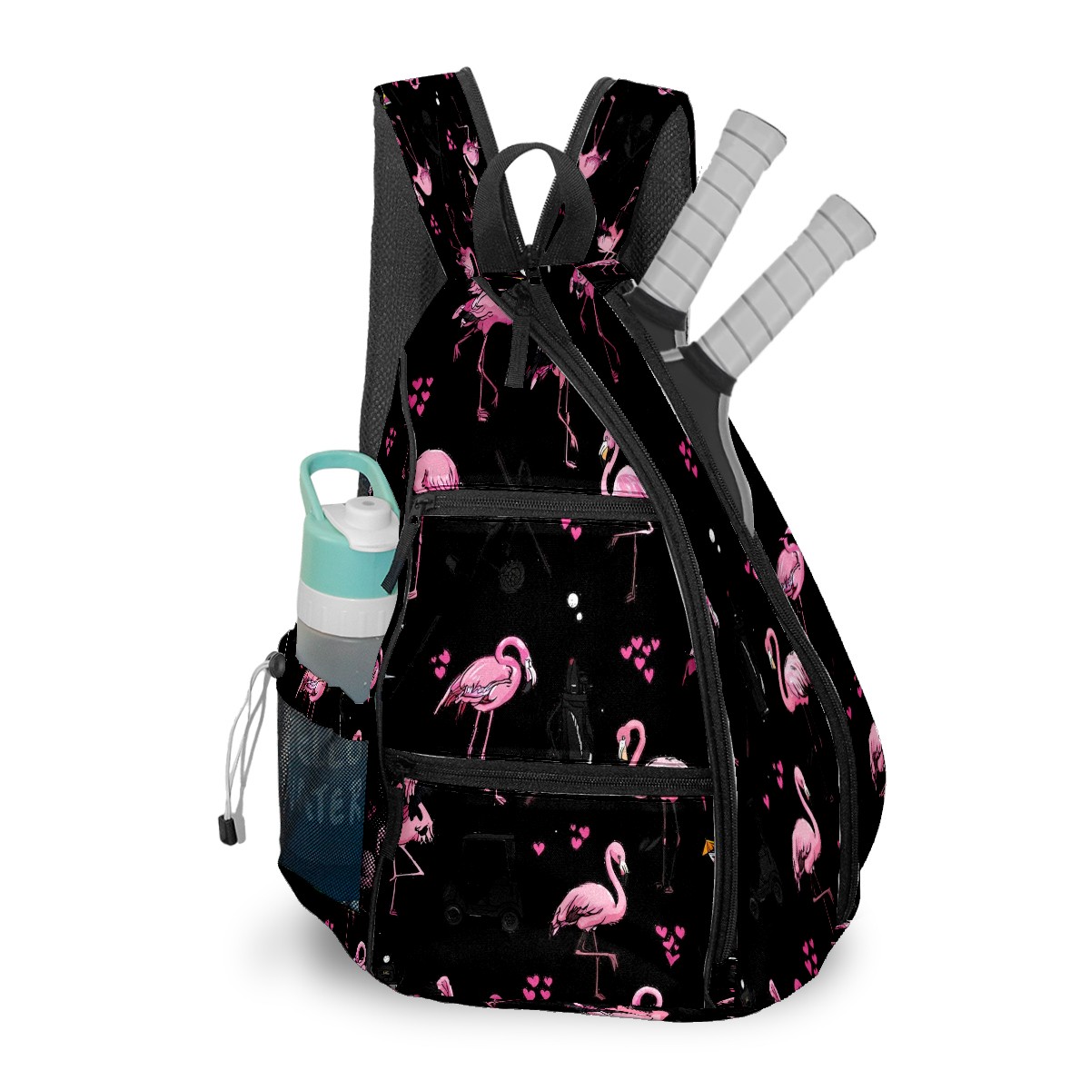 Pickleball Bag with Padded Back, Flamingos Black Multi-Compartment Paddle Backpack, Lightweight Nylon Sports Bag for Men & Women
