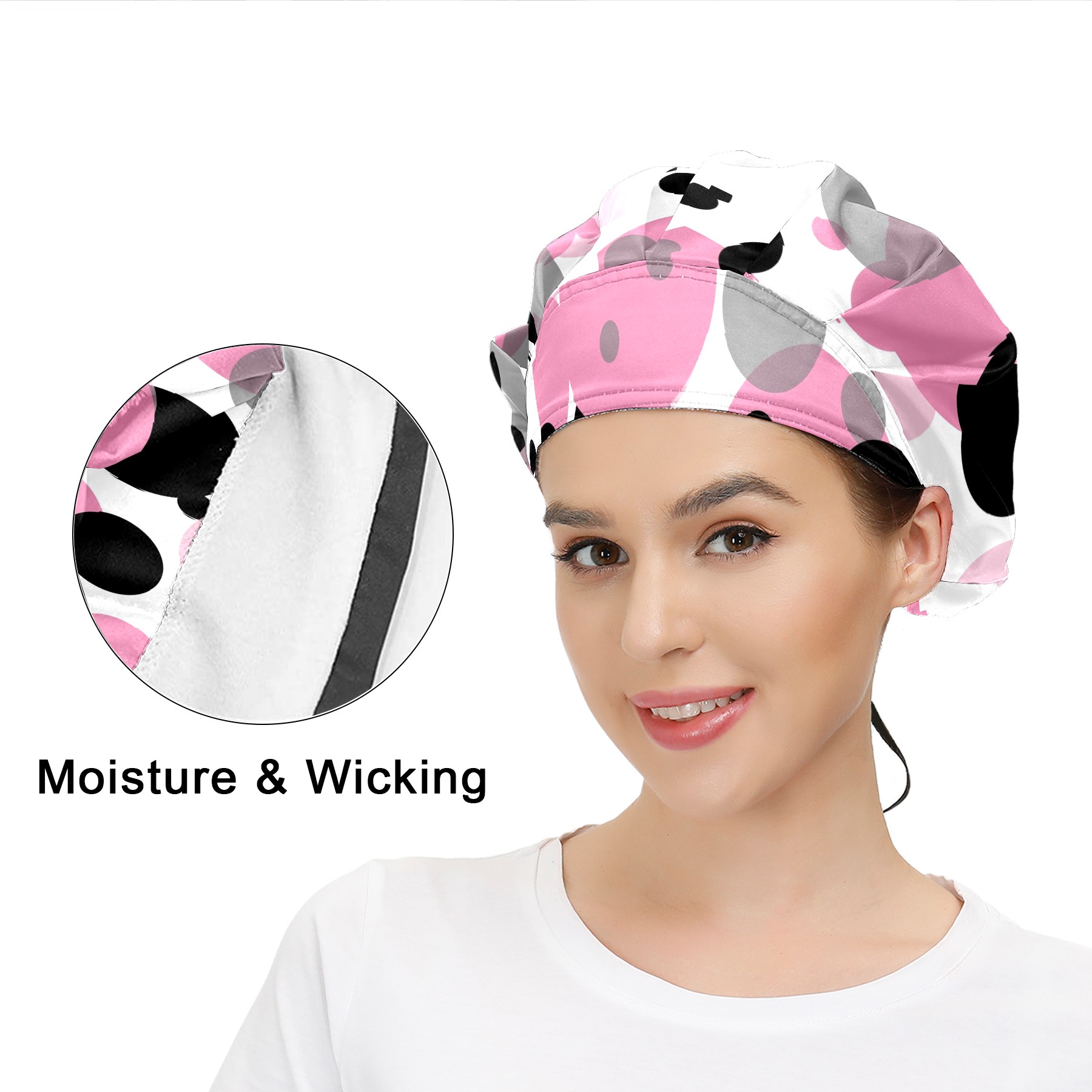 <p>Working cap with Sweatband for Women Men</p> <p>Nice soft Material : 50% cotton+50% polyester, skin-friendly & bleach-friendly fabric not easy to wrinkle, breathable & comfortable.</p> <p>Working cap with sweatband: Sweat-absorbent towel cloth inside: Built-in 100% cotton sweatband, keep dry and fresh for long time wearing, the cap can also keep the forehead clean after long time working.</p> <p>Easy adjustment: Elastic band & lace-up, without squishing your head, can easily adjust the lace-up for perfect fitting, this hat can completely cover it.</p> <p>Widely occasion: Widely used in beauty spa, research institutions working, cooking, sleeping, or for cos-play party.</p> <p>Adjustable design: Easy and comfortable to wear, one size fits most, suitable for both men and women.</p> <p>One size fits most: With semi-open and bandage design which you can freely adjustable as all head types and hair types of men and woman, you can use as working cap, chef cap, sleeping hat, beauty spa cap, cleaning caps for hair loss etc.</p> <p>Saving your ears: no more headache from wearing ma-sk for a long time, very comfortable.</p> <p>Lovely pattern: lovely 3D printed pattern, it's perfect for gift to you family and friends.</p>