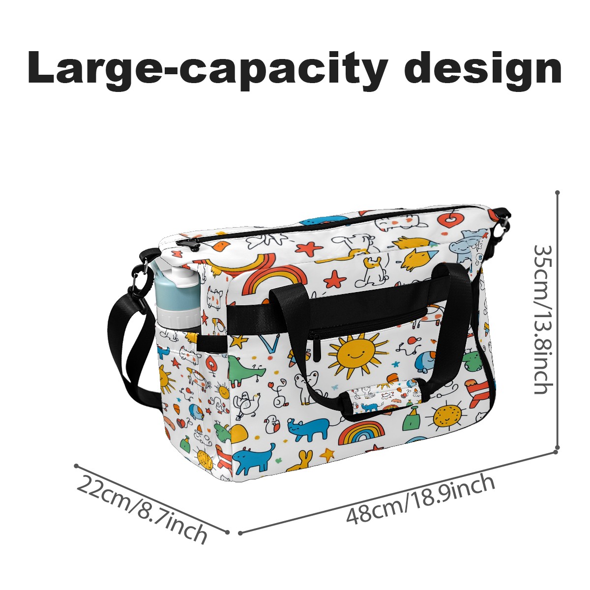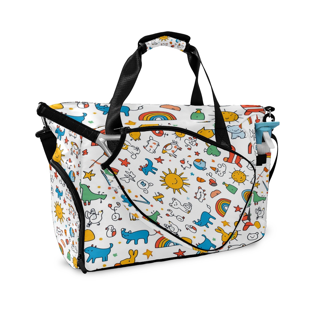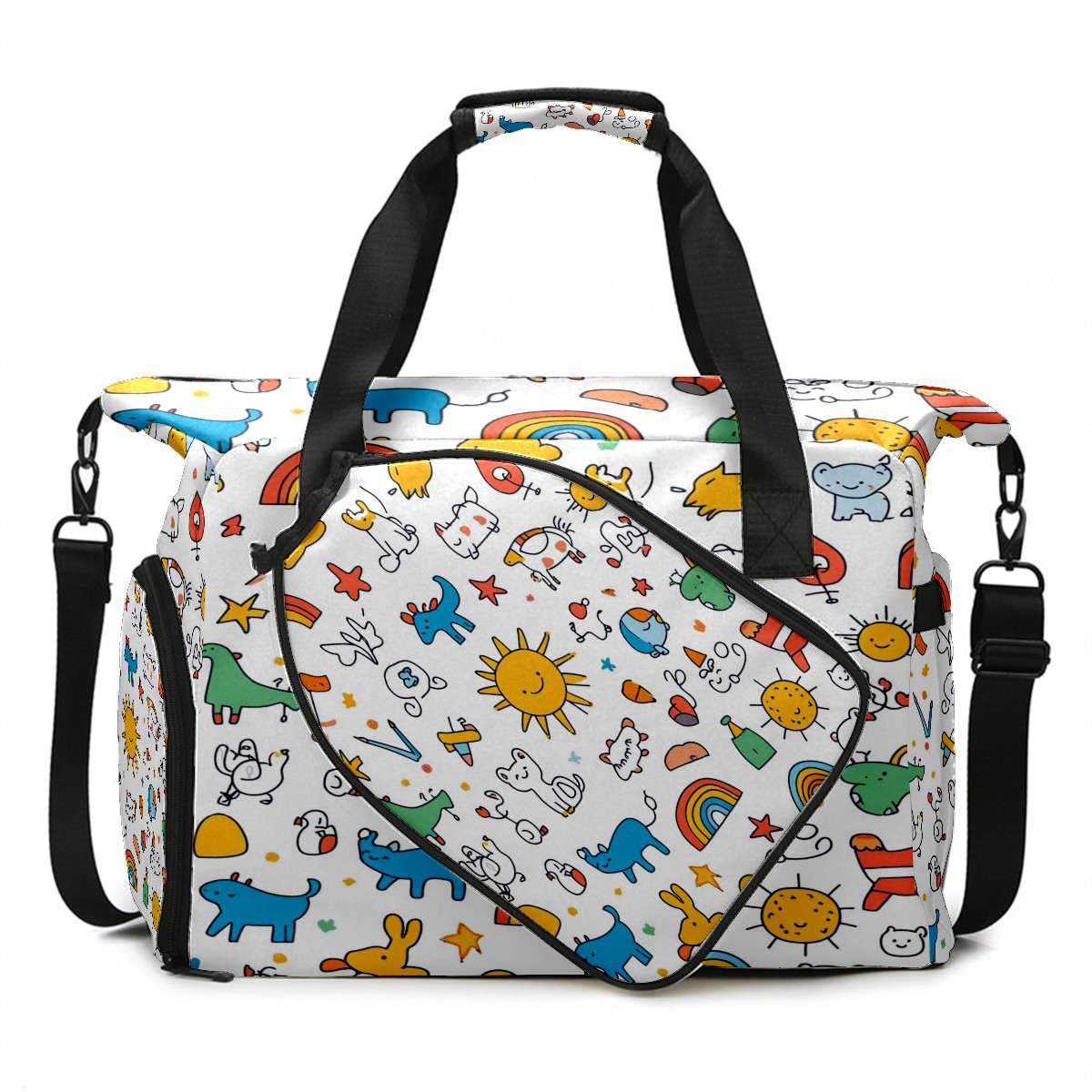 Pickleball Bag for Men and Women,with Water Bottle Holder and Separate Shoe Compartment, Cartoon Animals Rainbow Elements Pattern Great Best Gift for Pickleball Enthusiasts