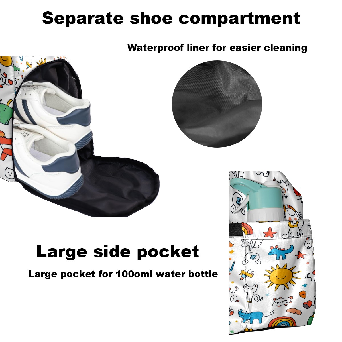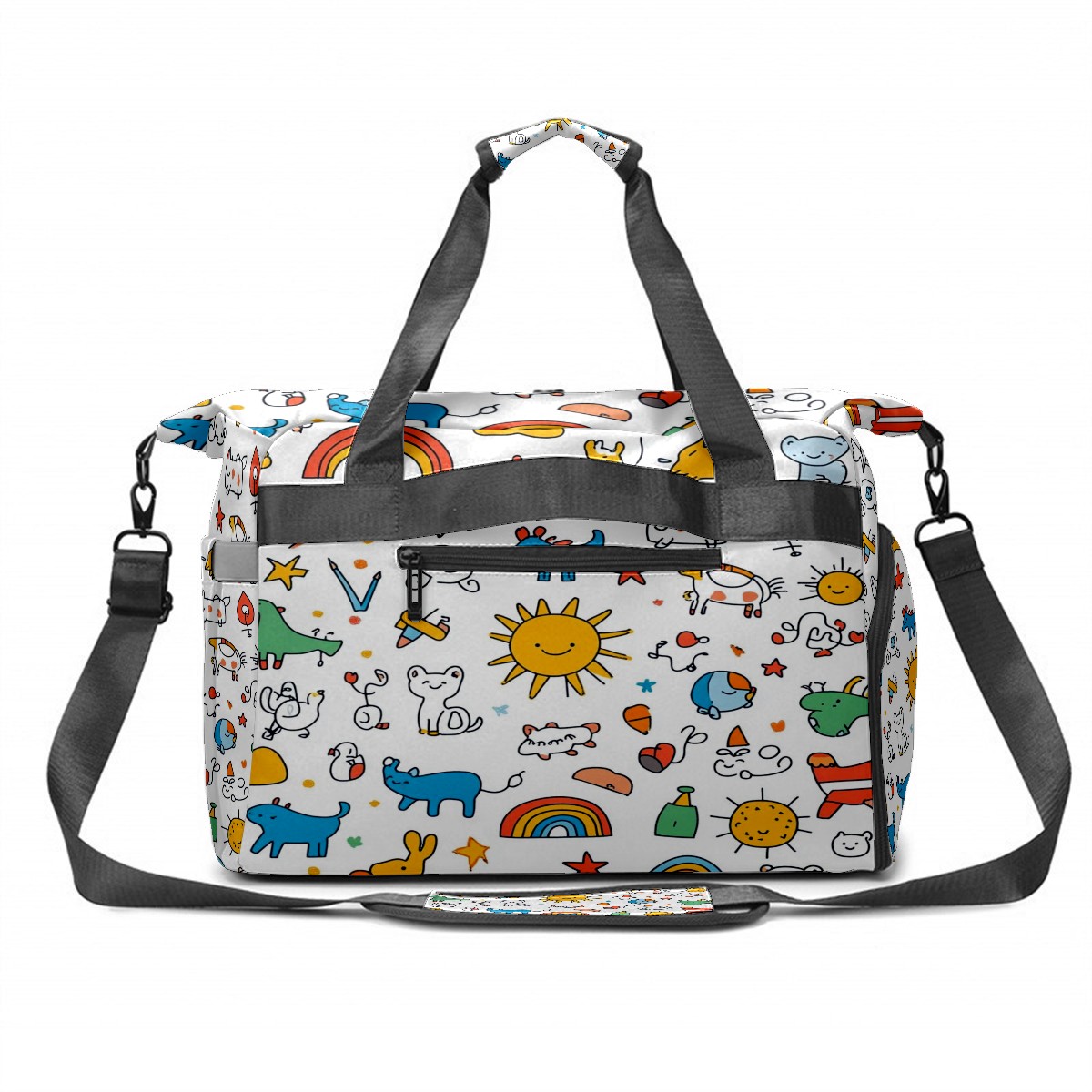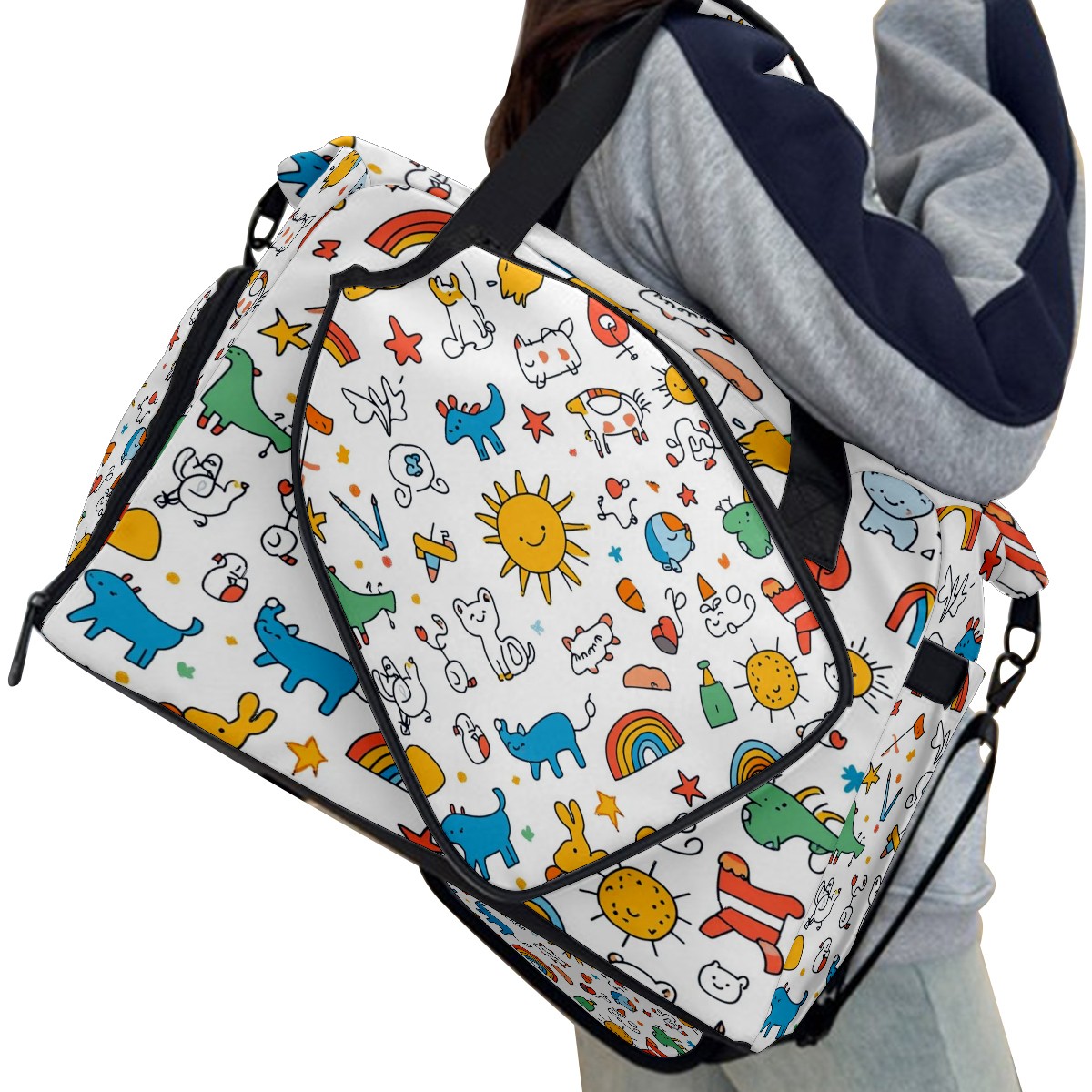 Pickleball Bag for Men and Women,with Water Bottle Holder and Separate Shoe Compartment, Cartoon Animals Rainbow Elements Pattern Great Best Gift for Pickleball Enthusiasts