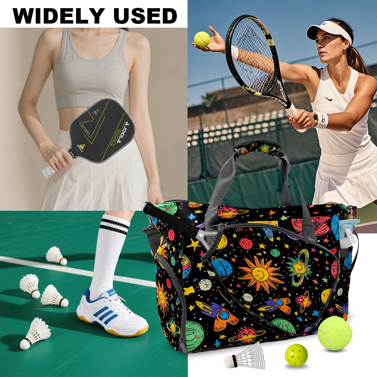 Pickleball Bag for Men and Women,with Water Bottle Holder and Separate Shoe Compartment, Space Elements Collection Great Best Gift for Pickleball Enthusiasts