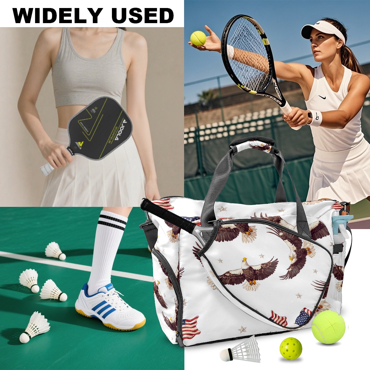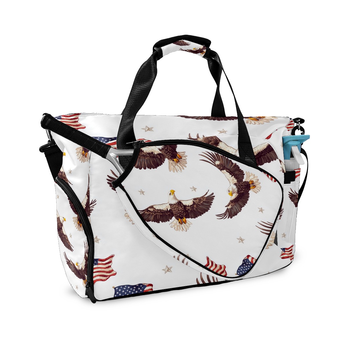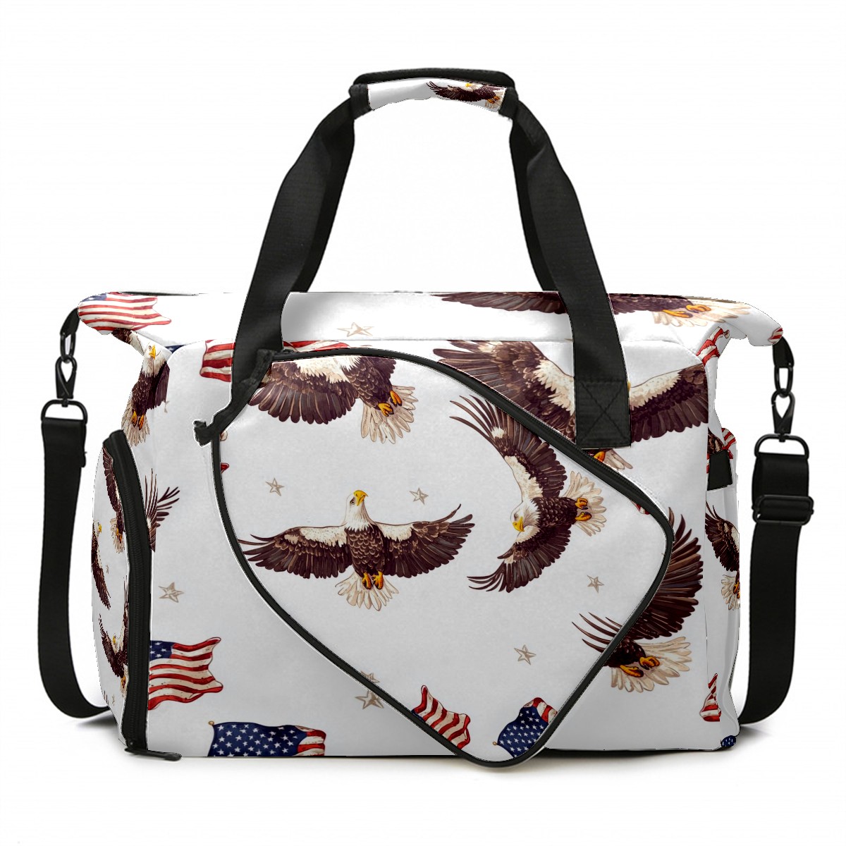 Pickleball Bag for Men and Women,with Water Bottle Holder and Separate Shoe Compartment, Bald Eagles American Flags Great Best Gift for Pickleball Enthusiasts