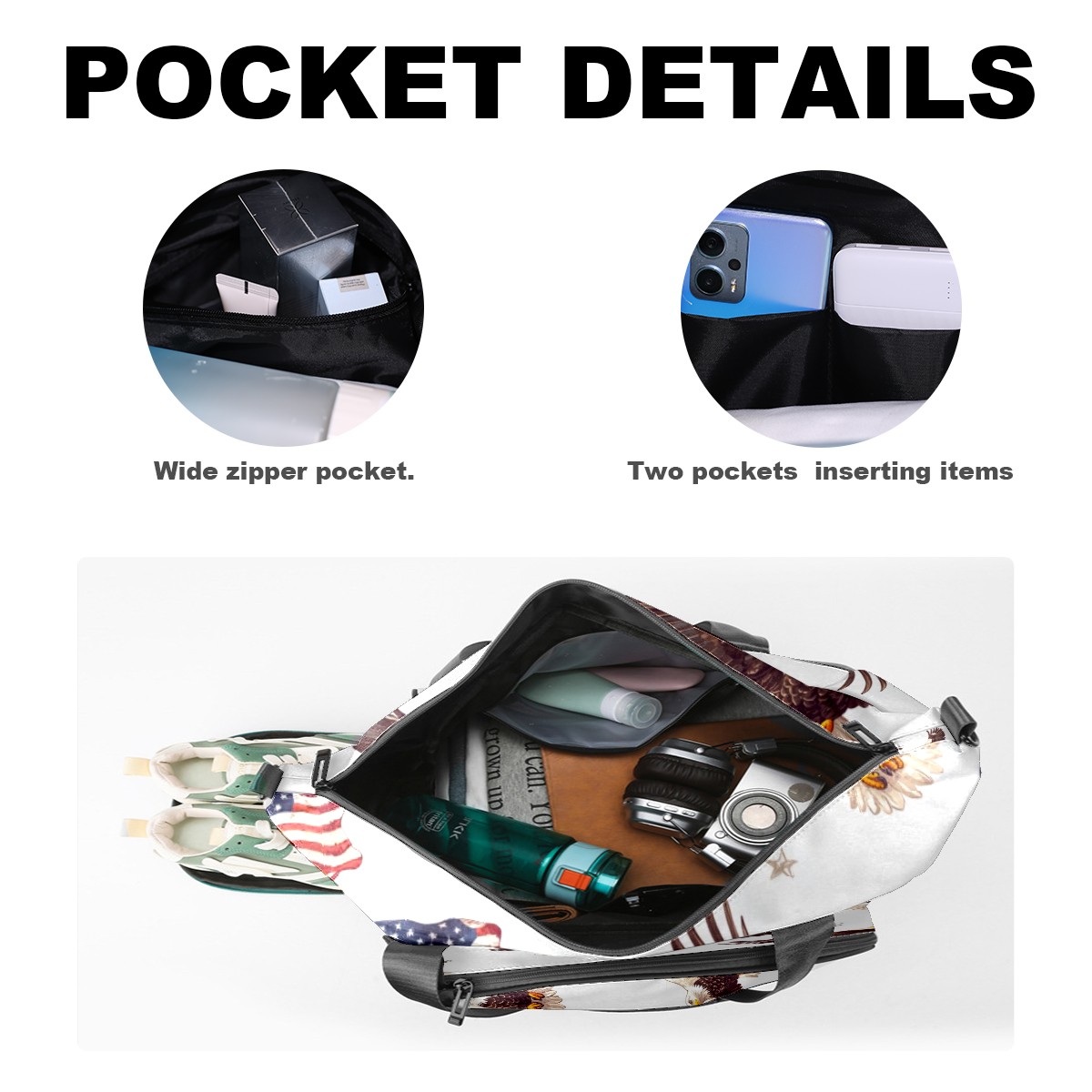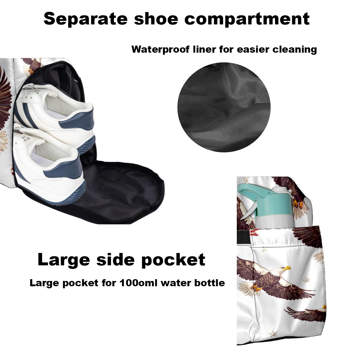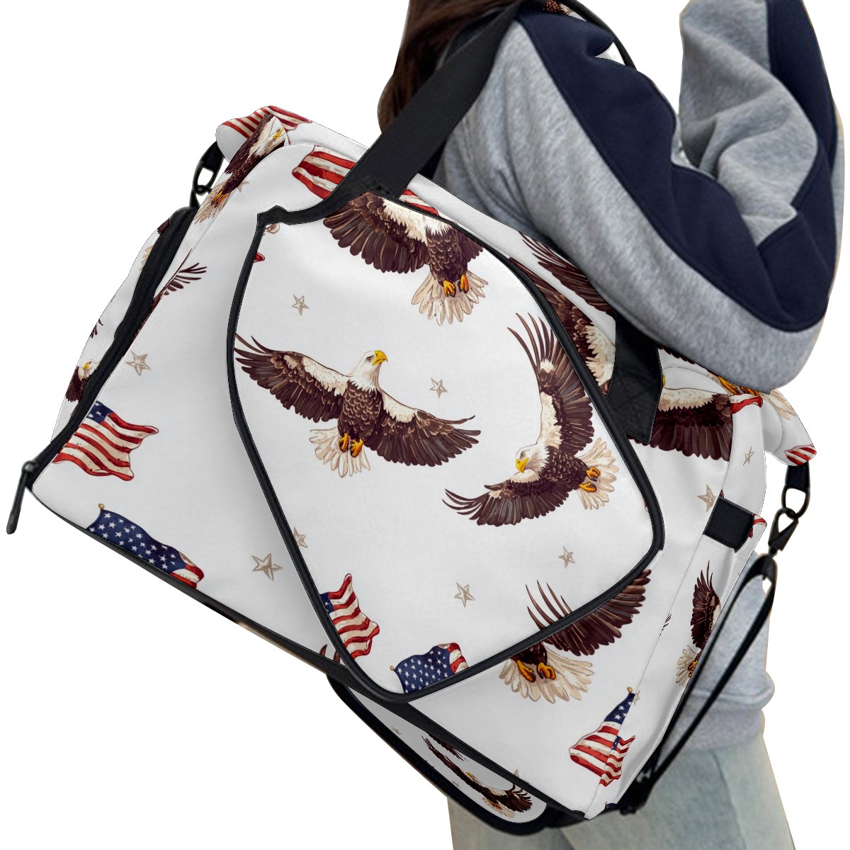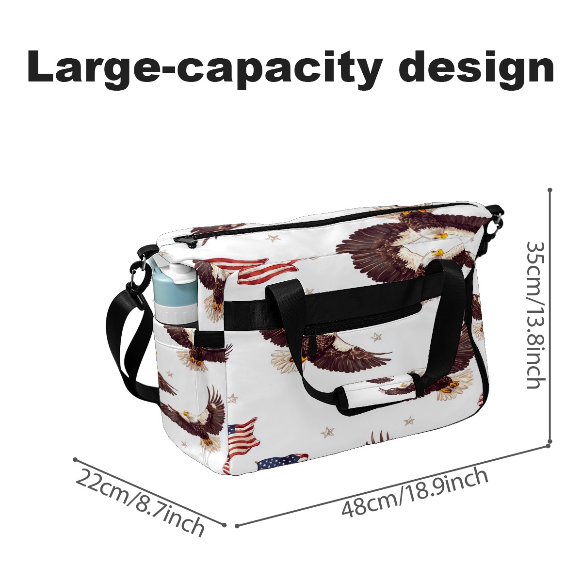 Pickleball Bag for Men and Women,with Water Bottle Holder and Separate Shoe Compartment, Bald Eagles American Flags Great Best Gift for Pickleball Enthusiasts