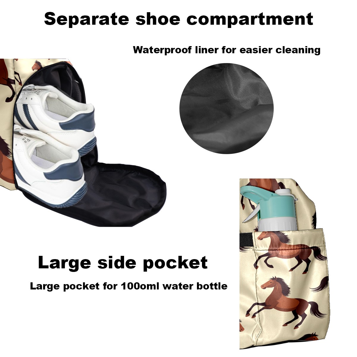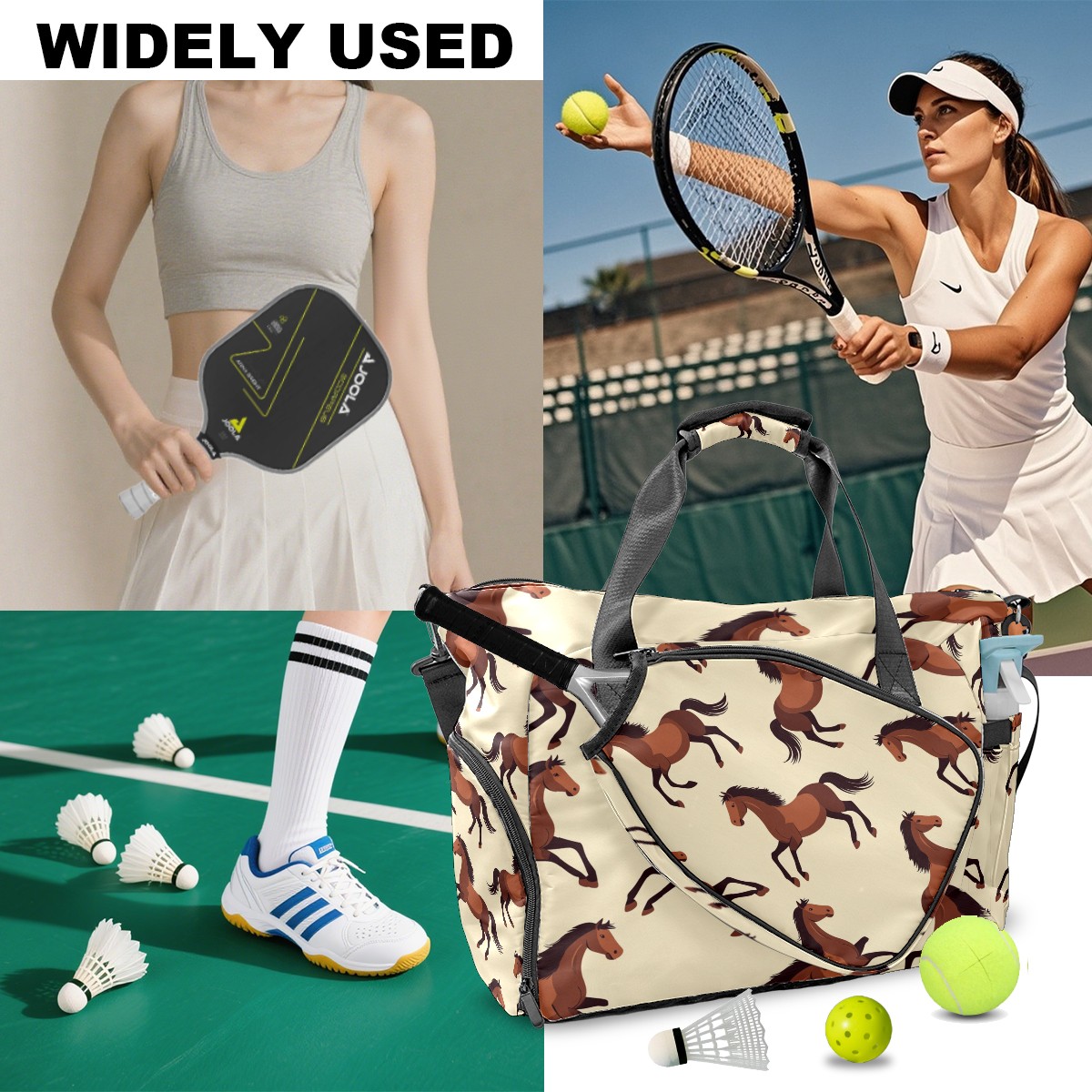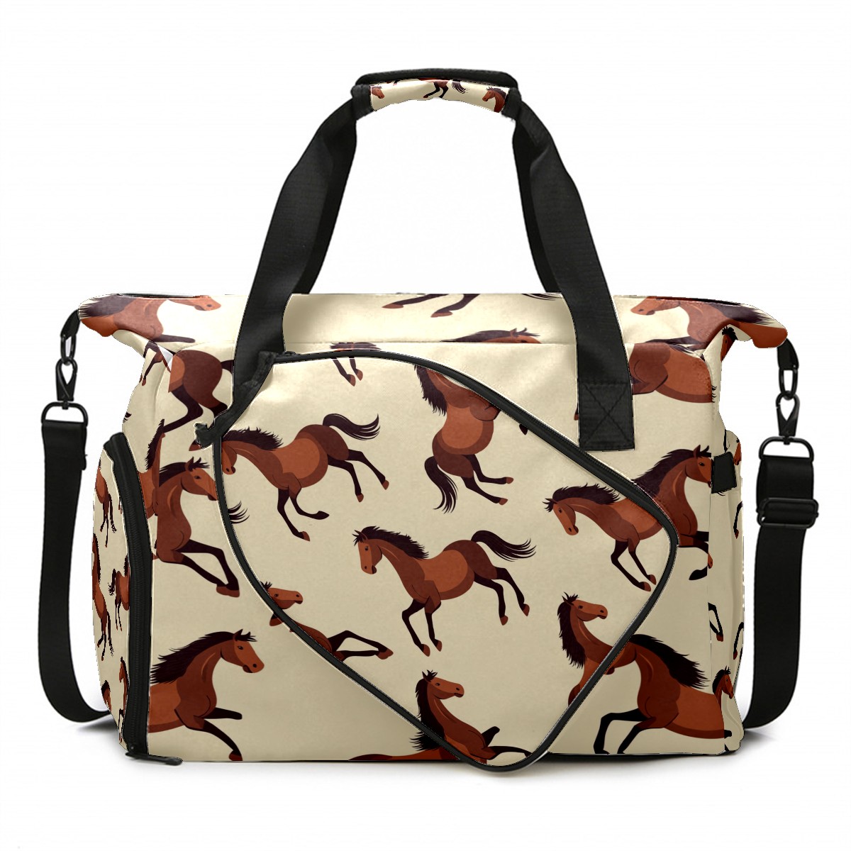 Pickleball Bag for Men and Women,with Water Bottle Holder and Separate Shoe Compartment, Brown Galloping Horse Great Best Gift for Pickleball Enthusiasts