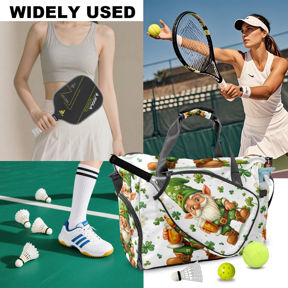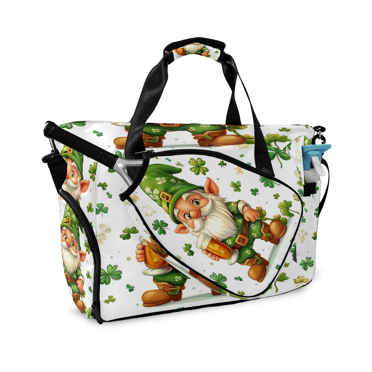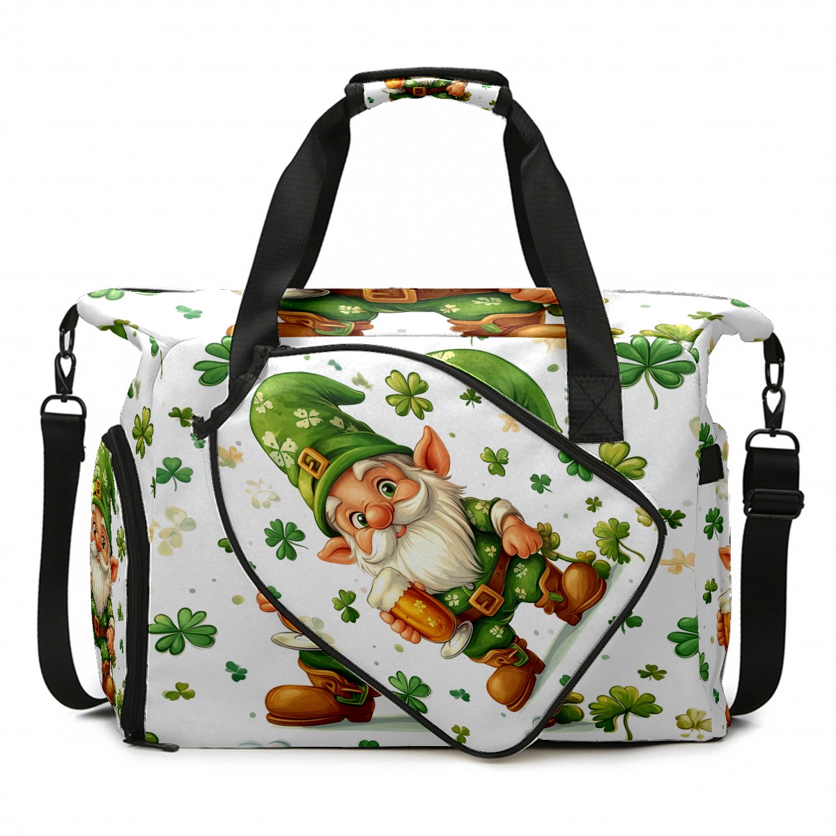 Pickleball Bag for Men and Women,with Water Bottle Holder and Separate Shoe Compartment, St Patrick's Day Gnome Shamrock Great Best Gift for Pickleball Enthusiasts