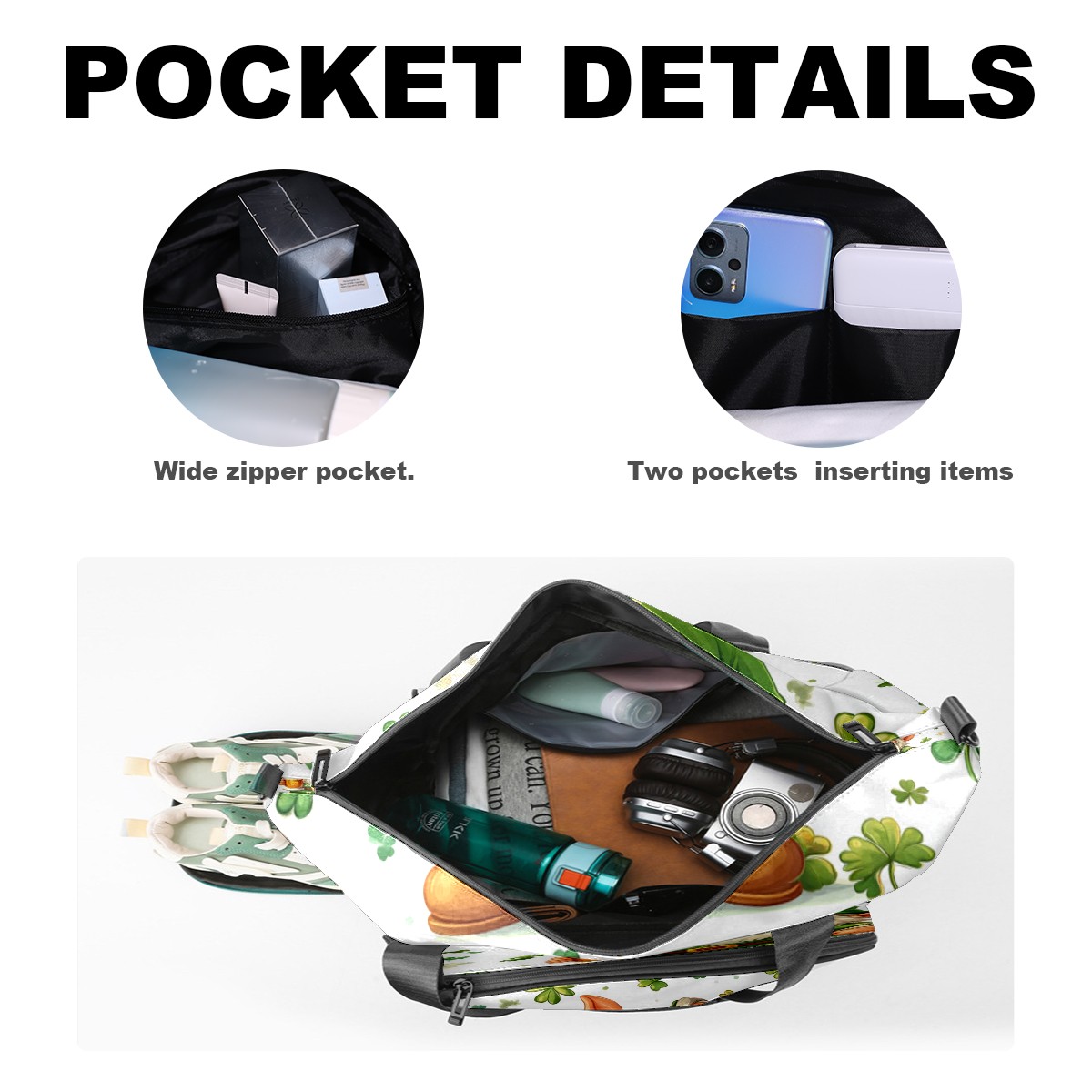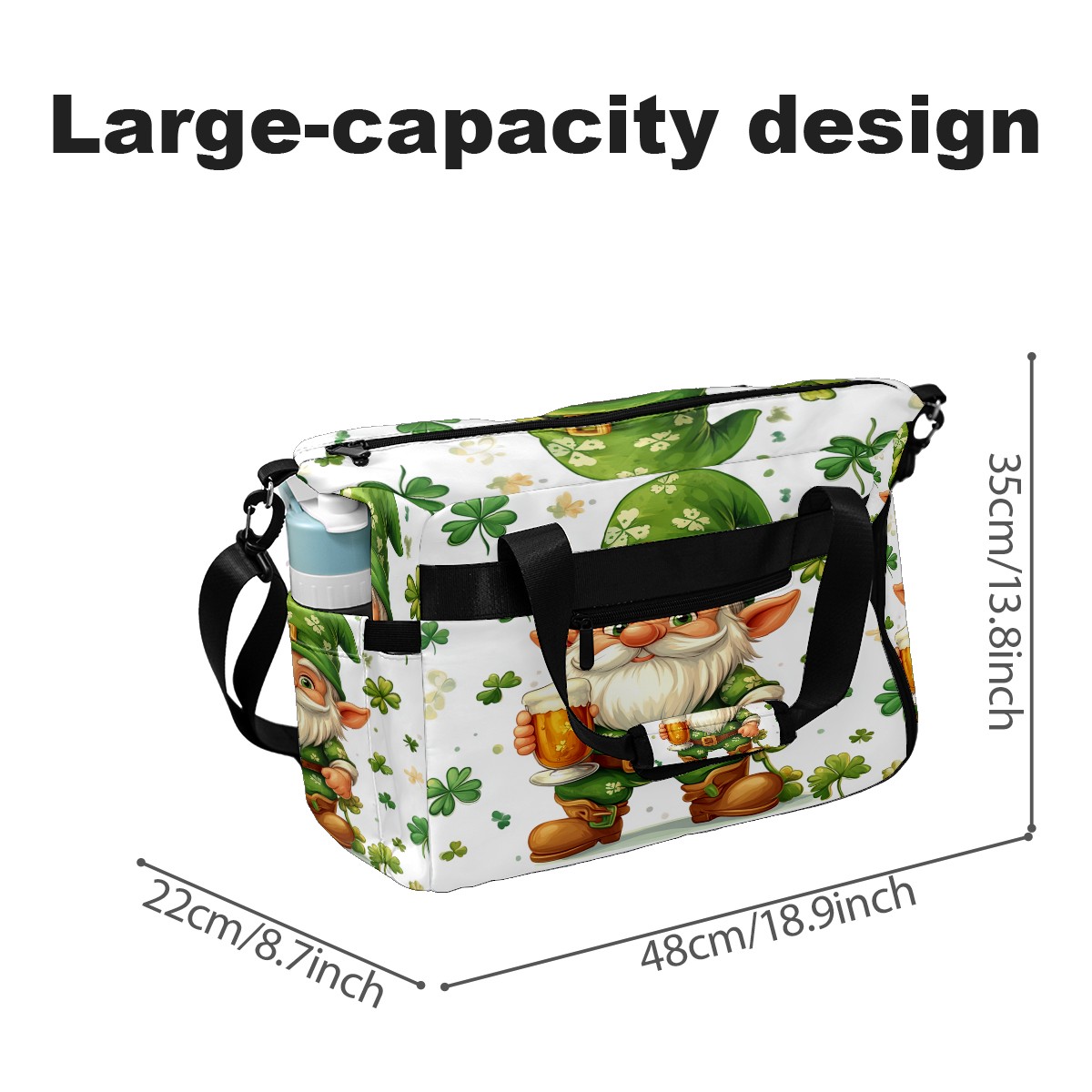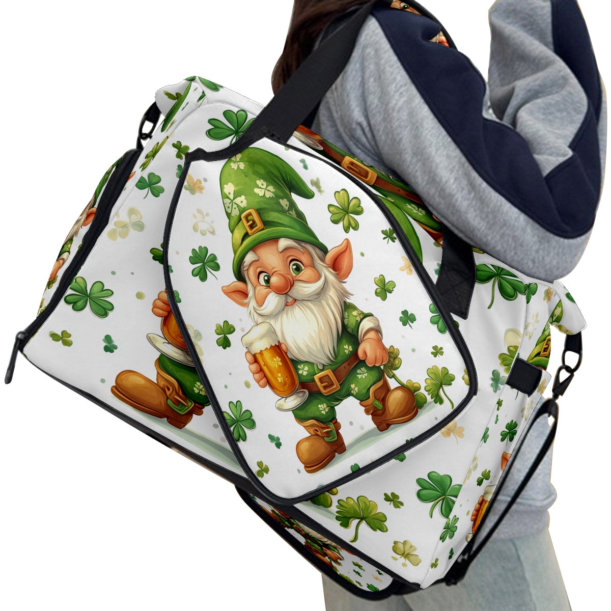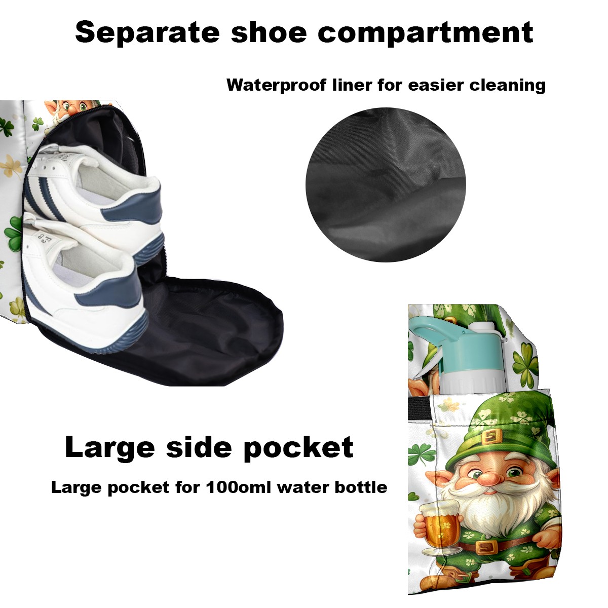 Pickleball Bag for Men and Women,with Water Bottle Holder and Separate Shoe Compartment, St Patrick's Day Gnome Shamrock Great Best Gift for Pickleball Enthusiasts