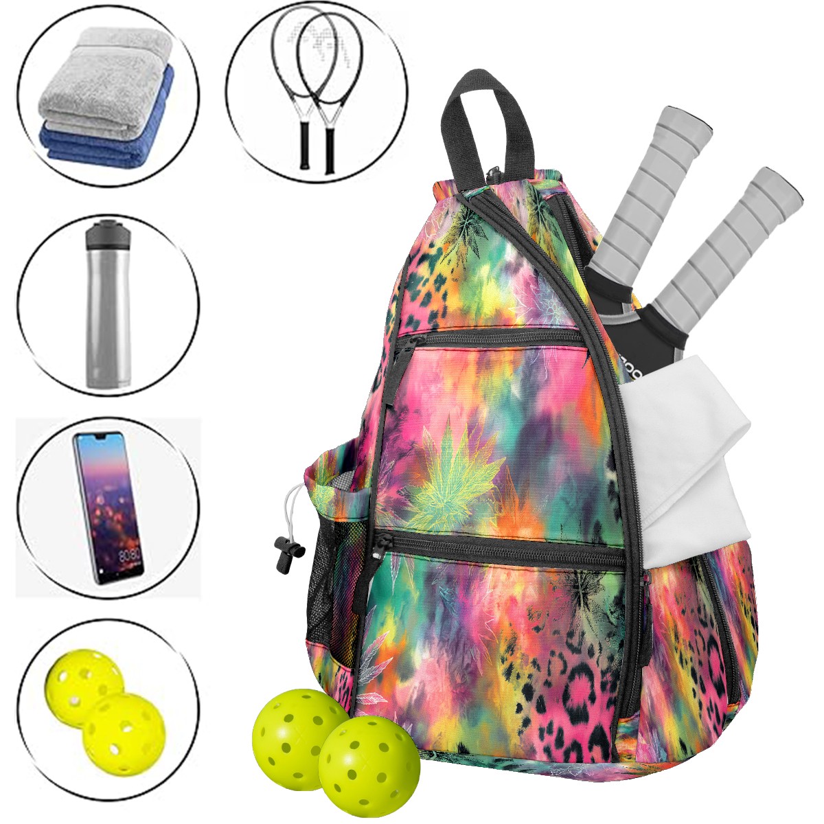 Print Pickleball Backpack Multicolor Tie Dye | Padded 6-Paddle Compartment & Separate Shoe Bag | Multi-Pocket Sports & Gym Backpack for Tennis, Travel, Commute