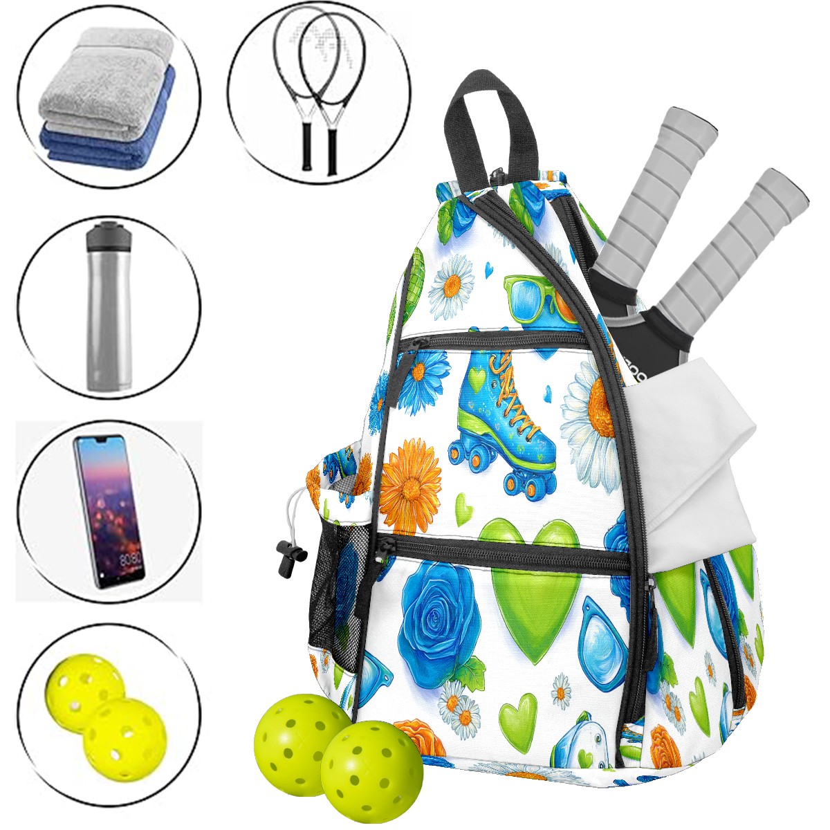 Print Pickleball Backpack Multicolor Retro Party | Padded 6-Paddle Compartment & Separate Shoe Bag | Multi-Pocket Sports & Gym Backpack for Tennis, Travel, Commute