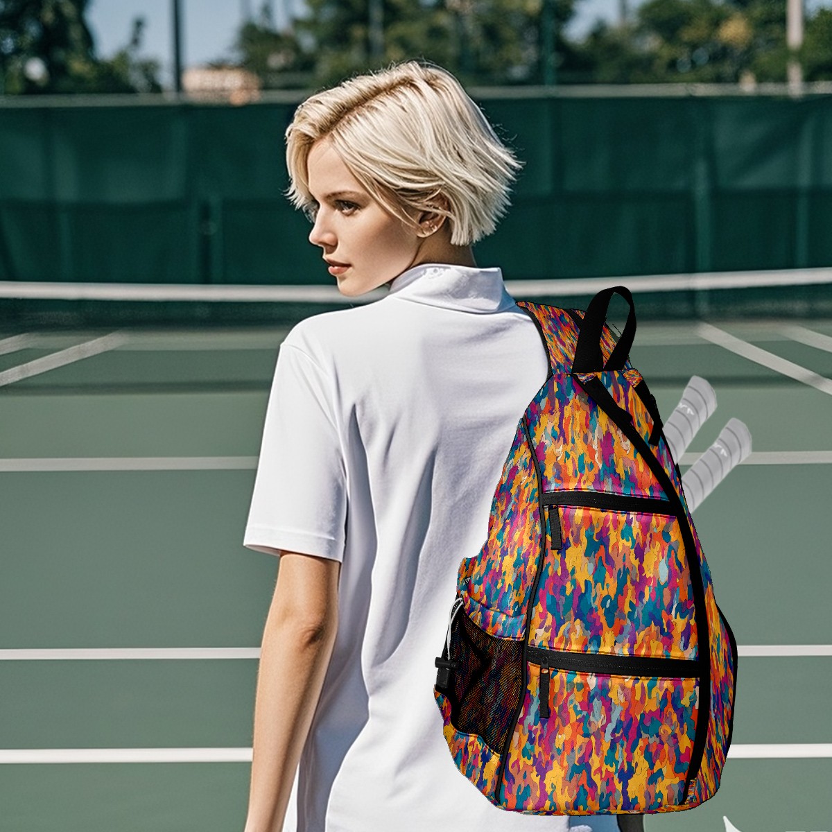 Print Pickleball Backpack Multicolor Abstract | Padded 6-Paddle Compartment & Separate Shoe Bag | Multi-Pocket Sports & Gym Backpack for Tennis, Travel, Commute