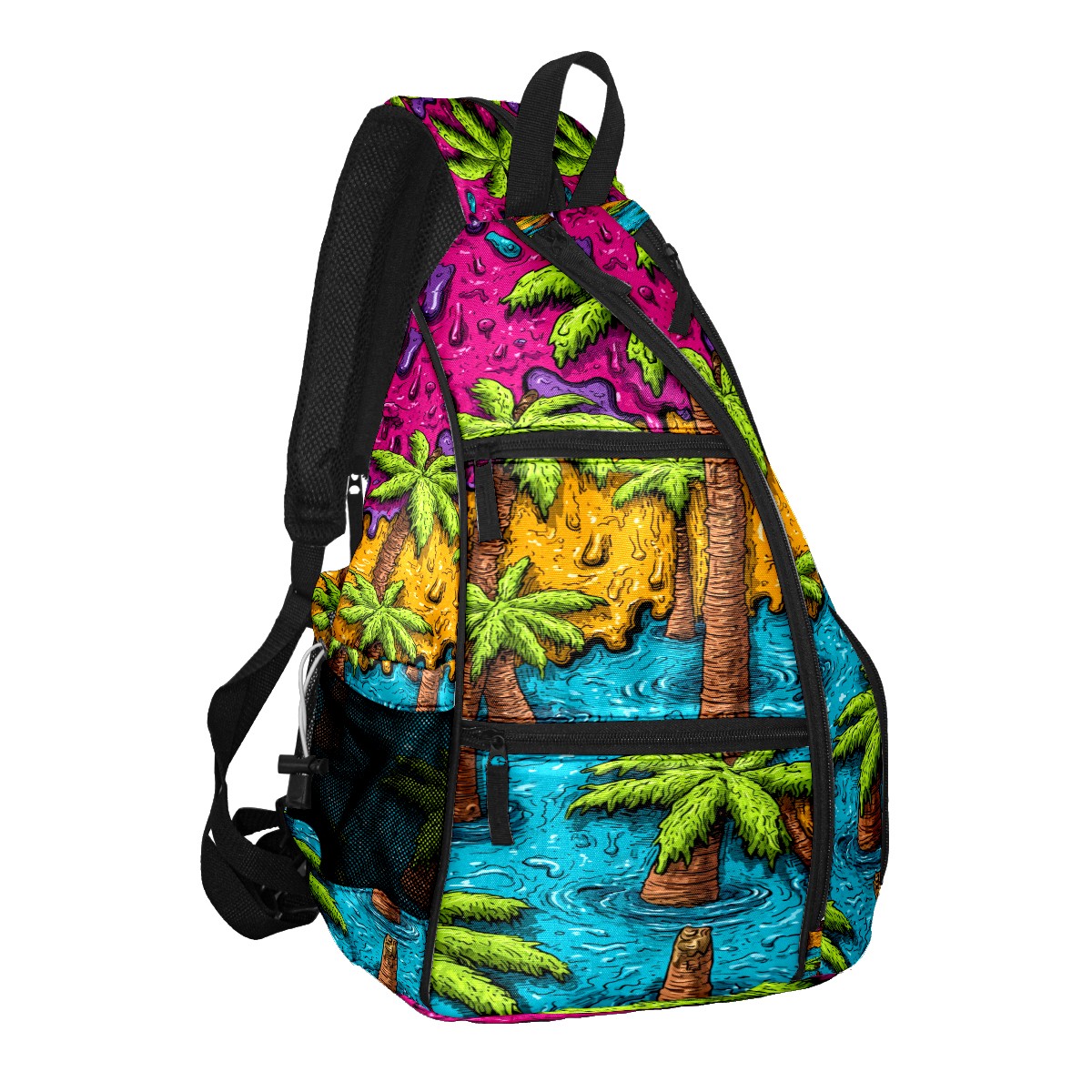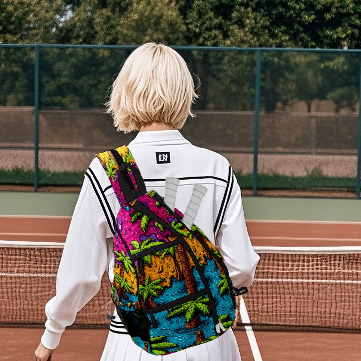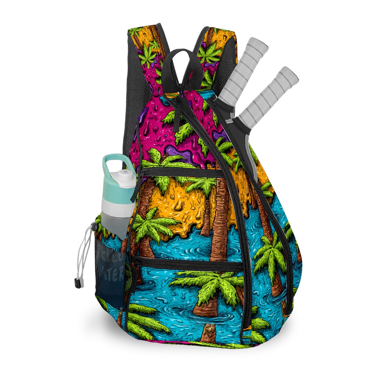 Print Pickleball Backpack Green Tropical Palms | Padded 6-Paddle Compartment & Separate Shoe Bag | Multi-Pocket Sports & Gym Backpack for Tennis, Travel, Commute