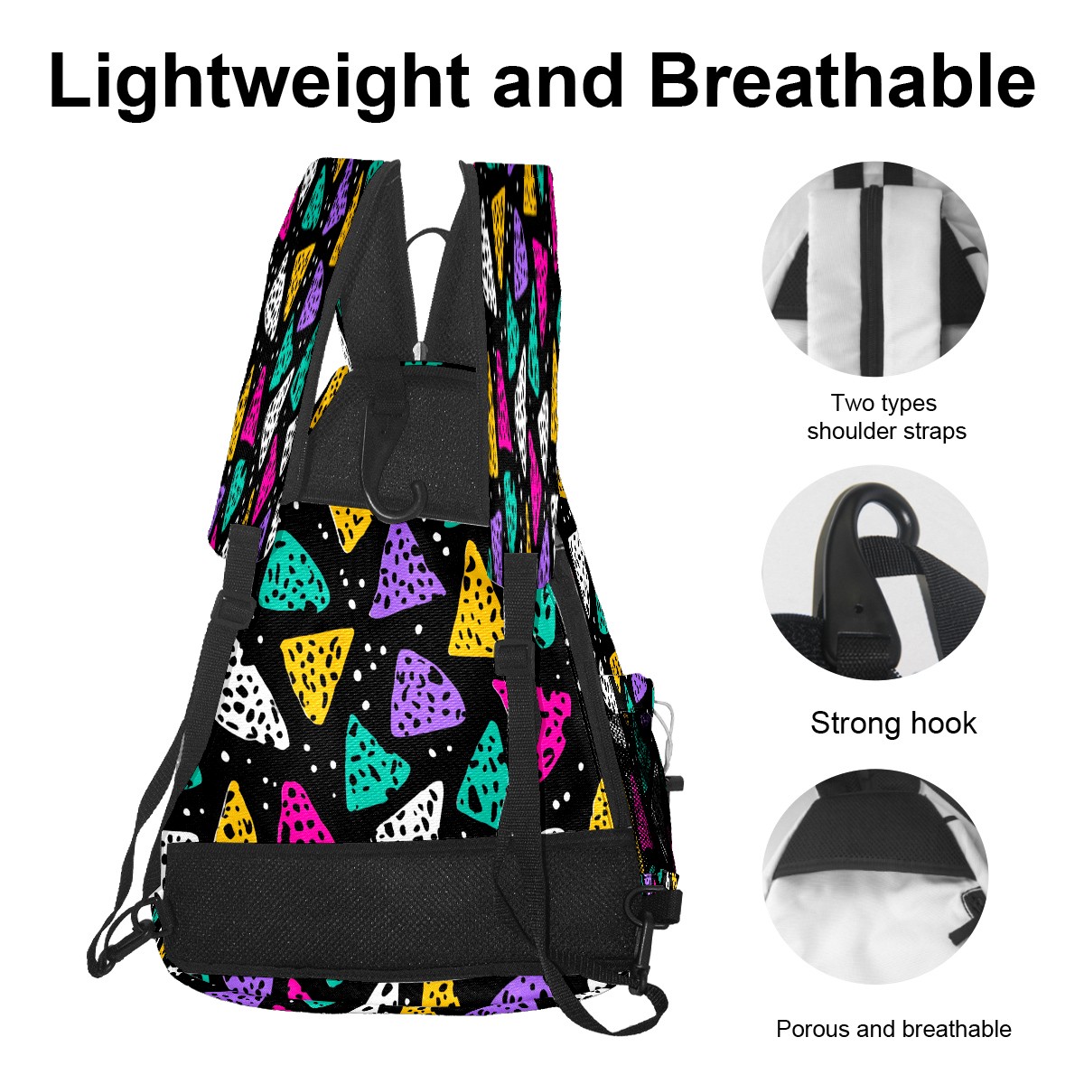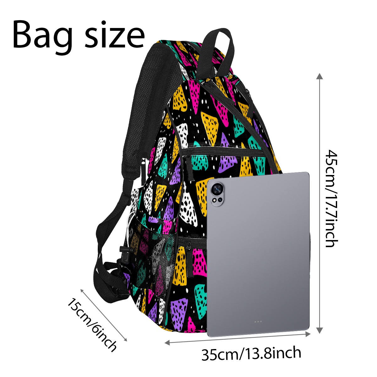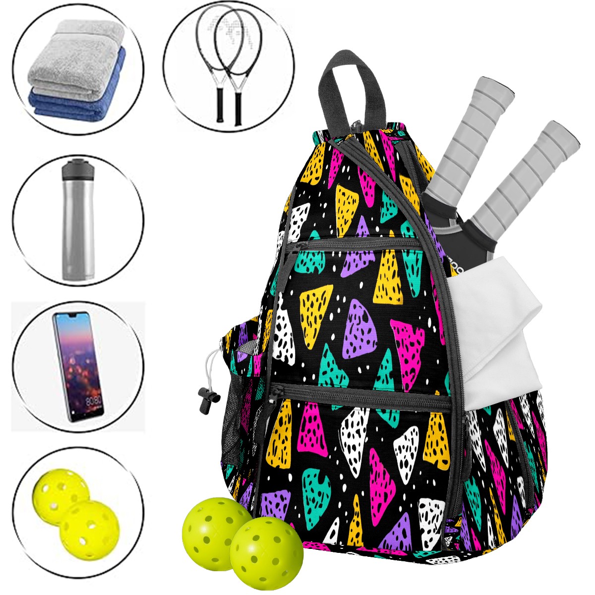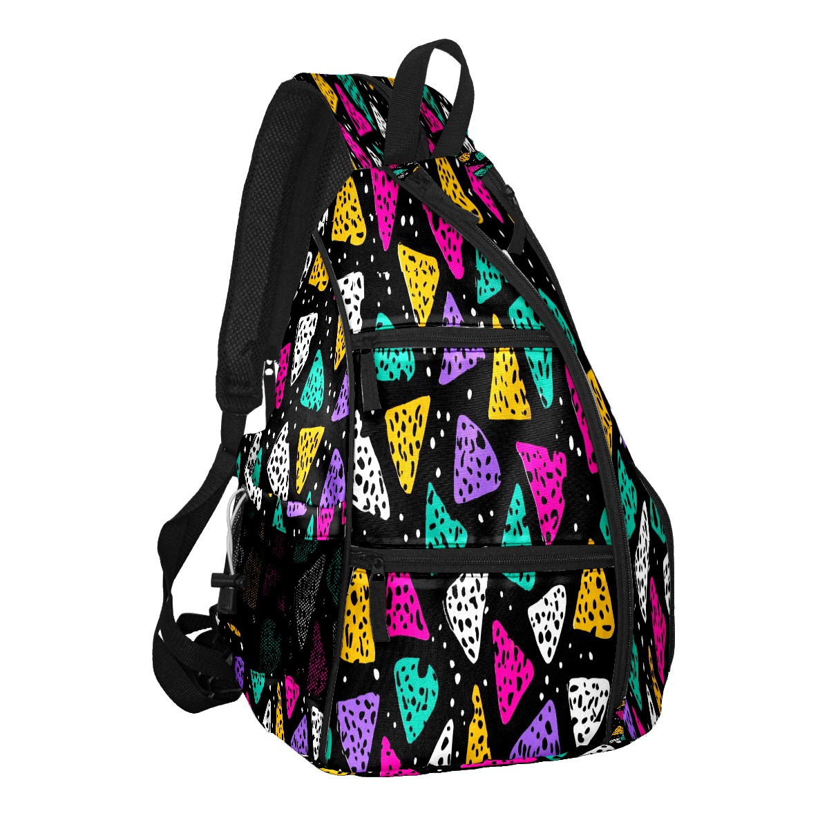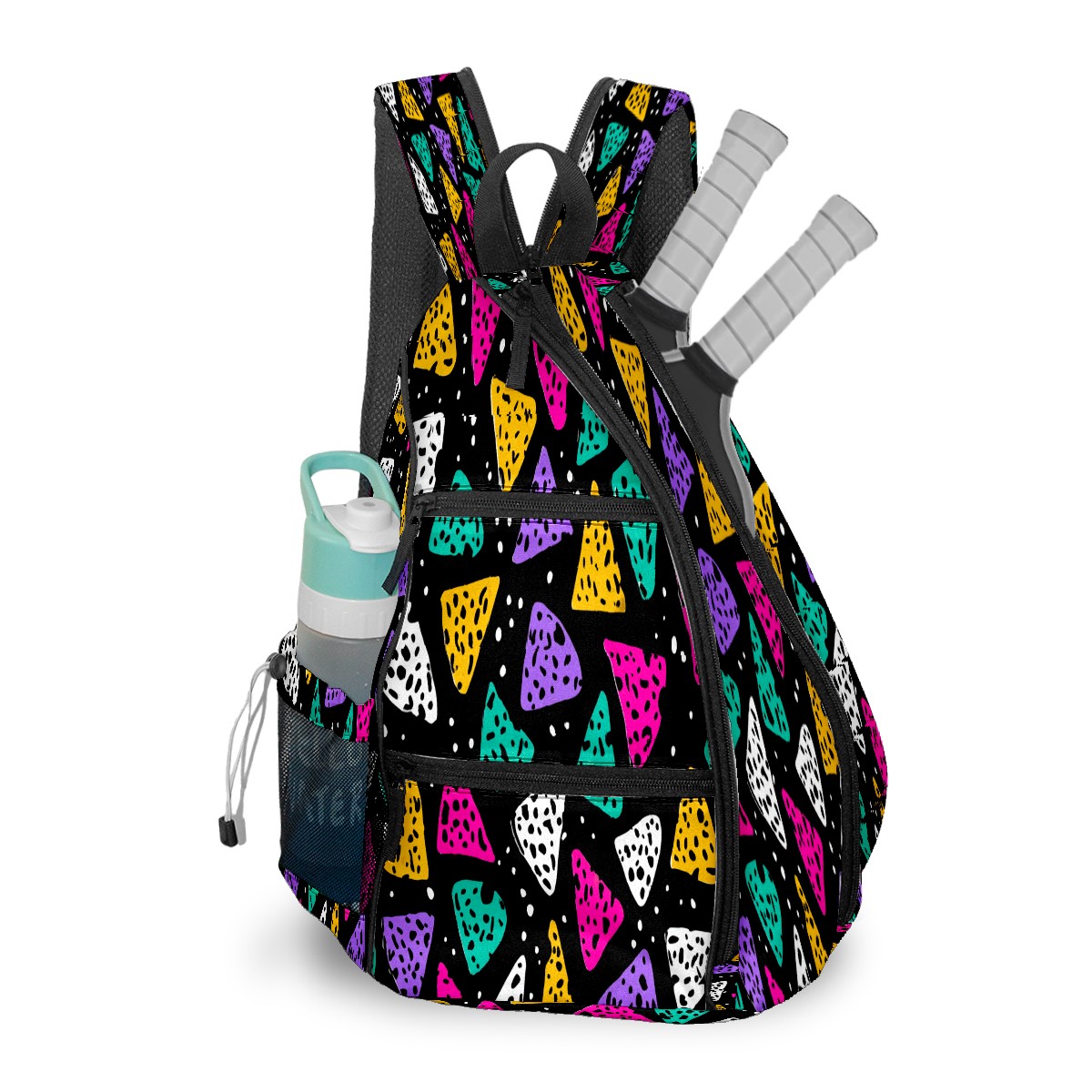 Print Pickleball Backpack Multicolor Triangles | Padded 6-Paddle Compartment & Separate Shoe Bag | Multi-Pocket Sports & Gym Backpack for Tennis, Travel, Commute