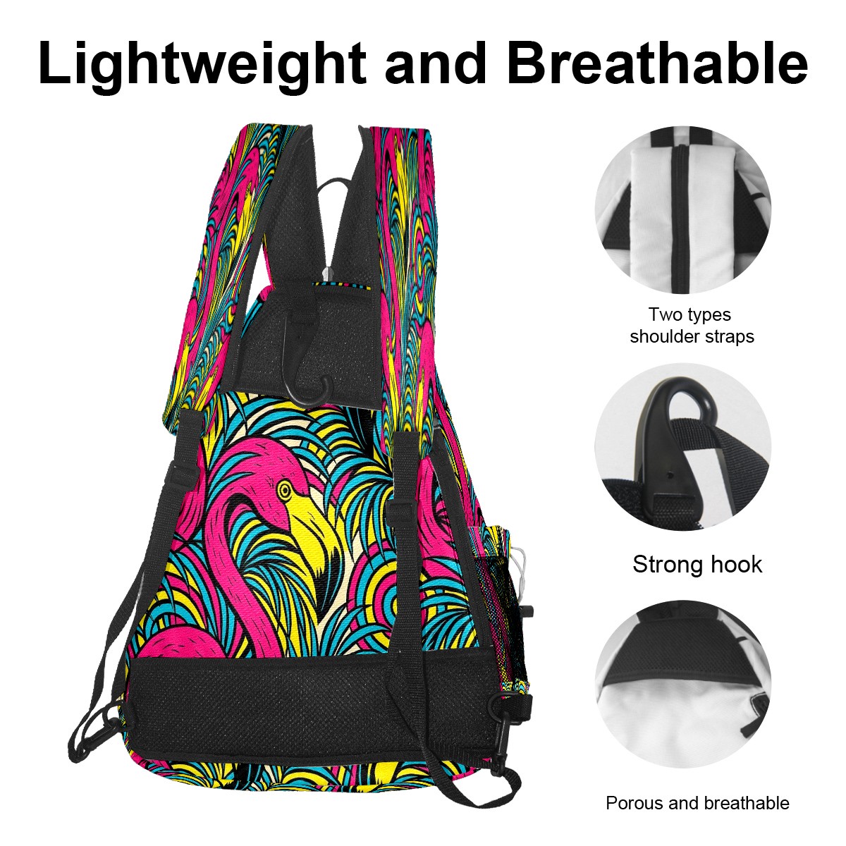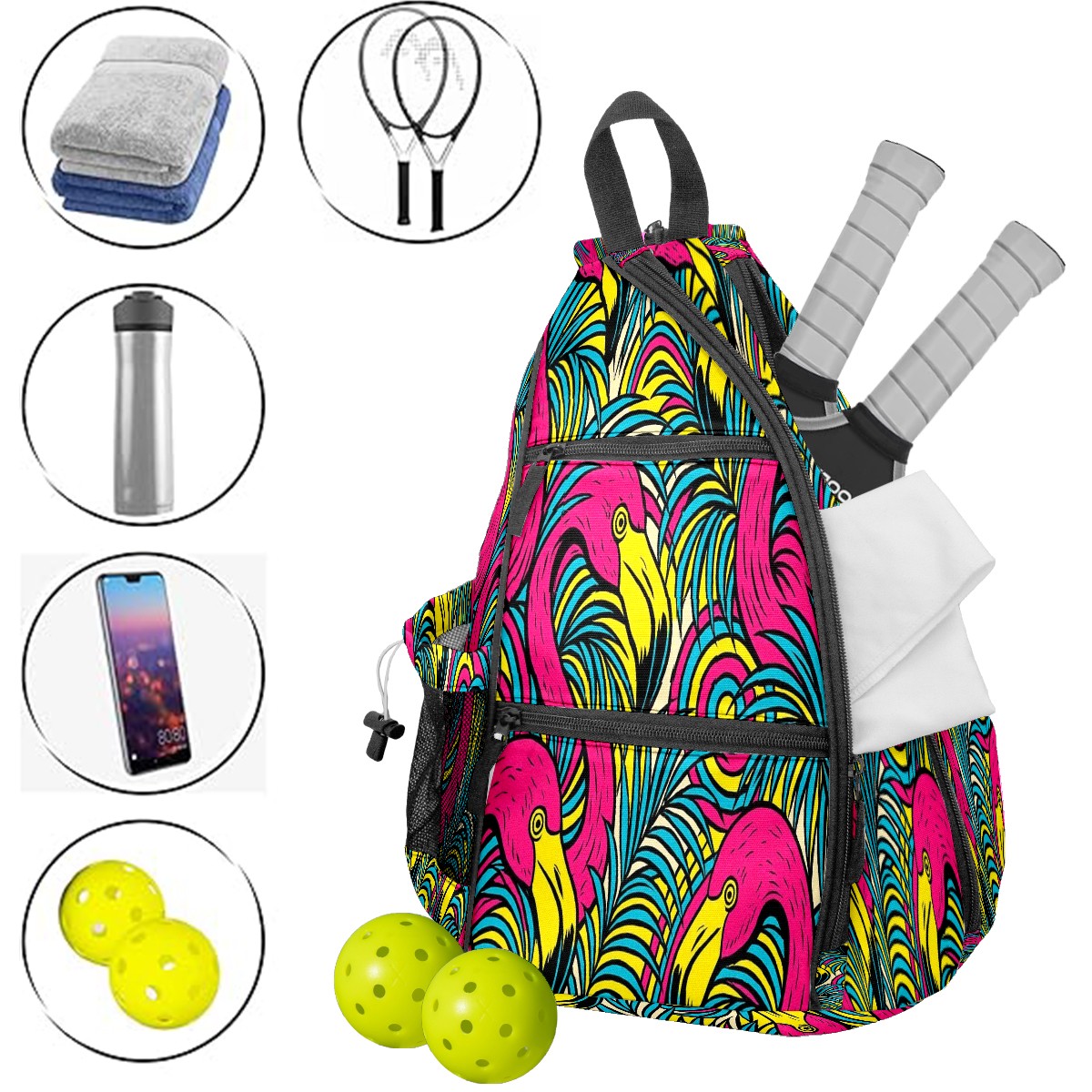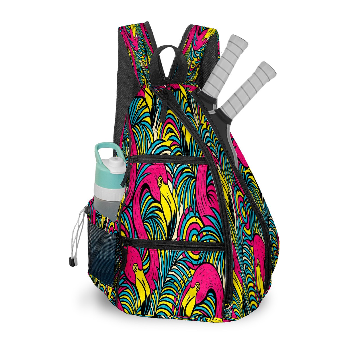 Print Pickleball Backpack Multicolor Flamingos Tropical | Padded 6-Paddle Compartment & Separate Shoe Bag | Multi-Pocket Sports & Gym Backpack for Tennis, Travel, Commute