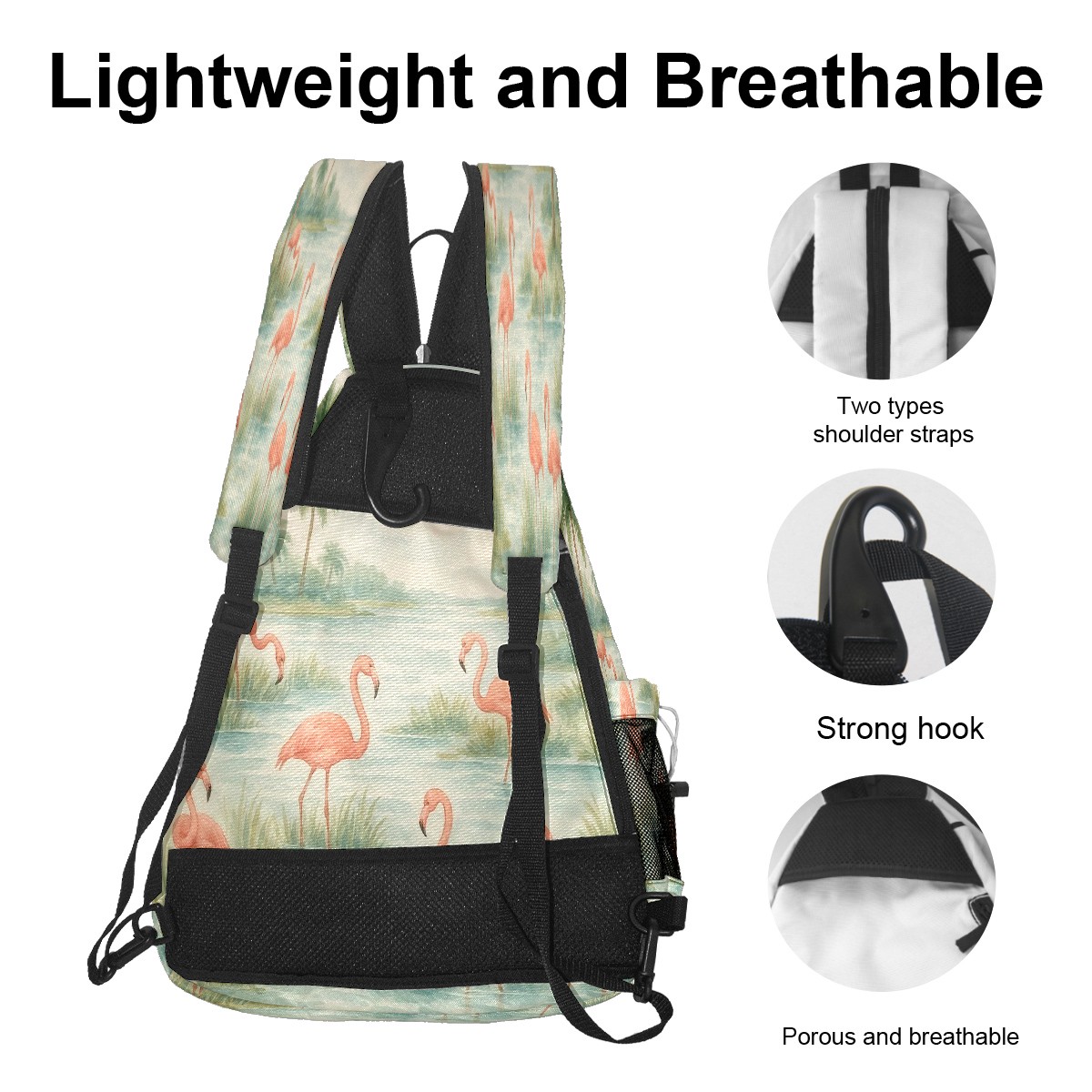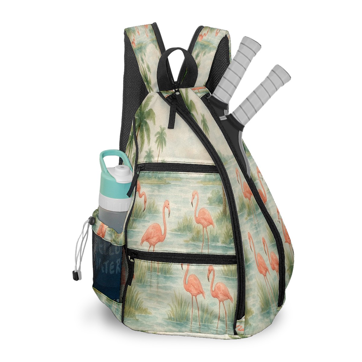 Print Pickleball Backpack Beige Flamingos Watercolor | Padded 6-Paddle Compartment & Separate Shoe Bag | Multi-Pocket Sports & Gym Backpack for Tennis, Travel, Commute