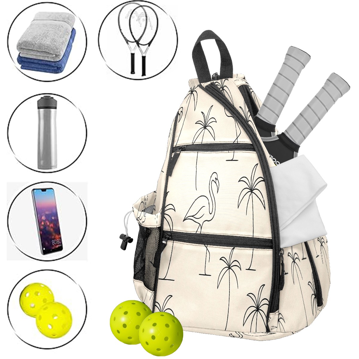 Print Pickleball Backpack Beige Flamingos | Padded 6-Paddle Compartment & Separate Shoe Bag | Multi-Pocket Sports & Gym Backpack for Tennis, Travel, Commute