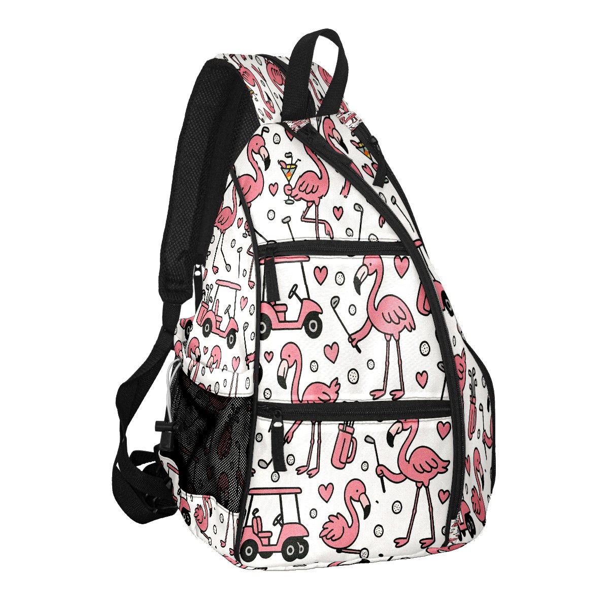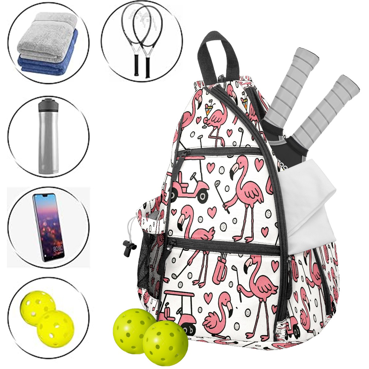 Print Pickleball Backpack Pink Flamingos | Padded 6-Paddle Compartment & Separate Shoe Bag | Multi-Pocket Sports & Gym Backpack for Tennis, Travel, Commute