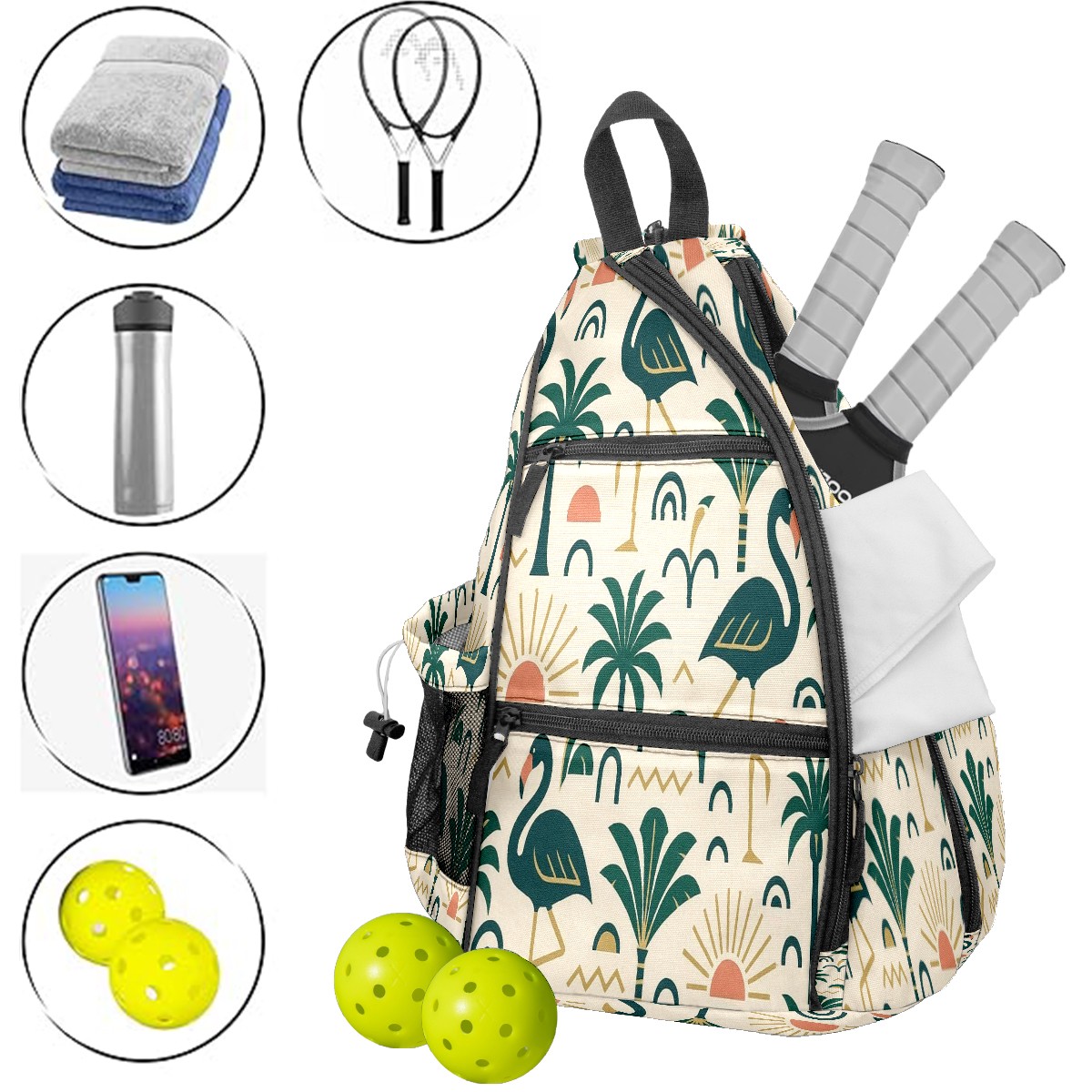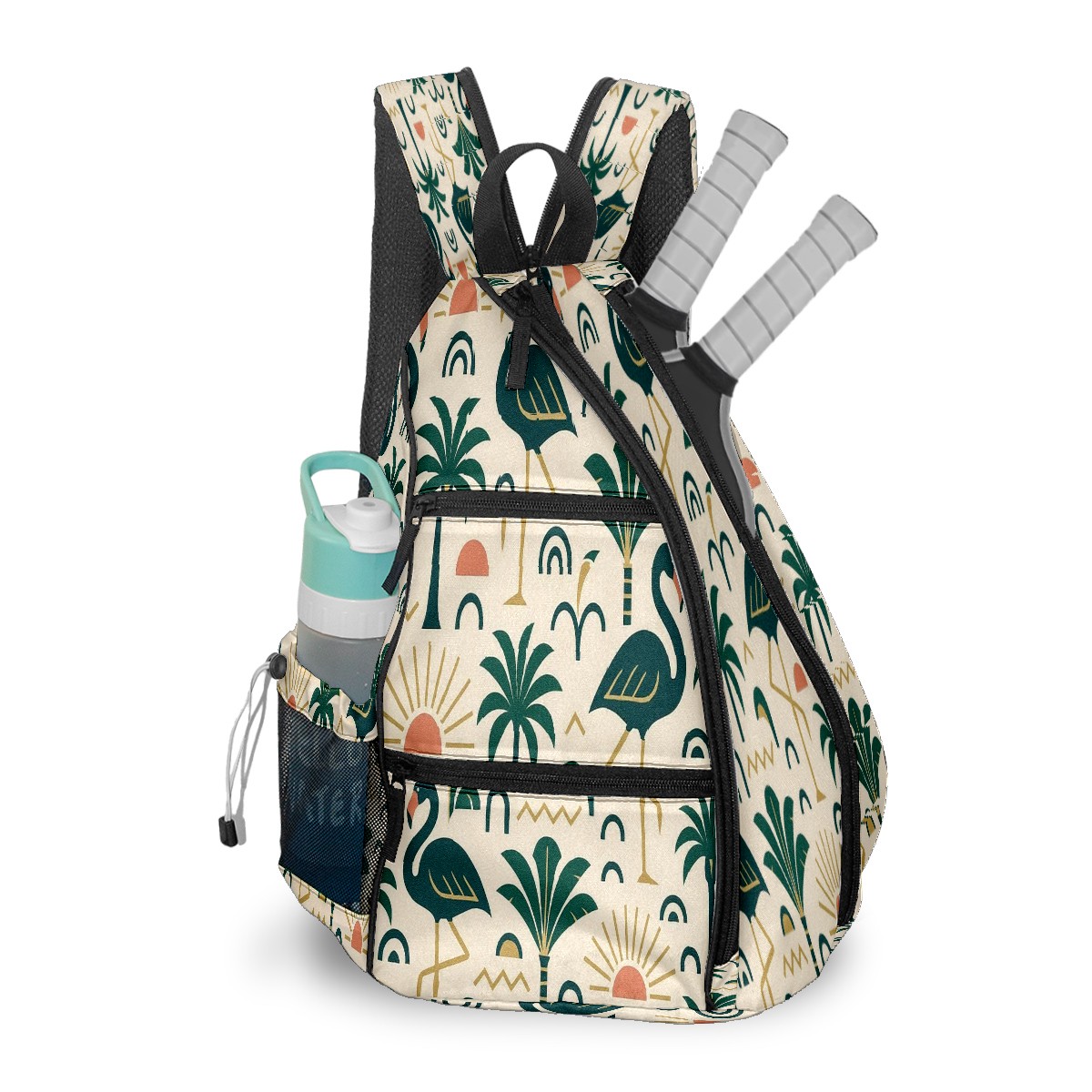 Print Pickleball Backpack Green Flamingos Palms | Padded 6-Paddle Compartment & Separate Shoe Bag | Multi-Pocket Sports & Gym Backpack for Tennis, Travel, Commute