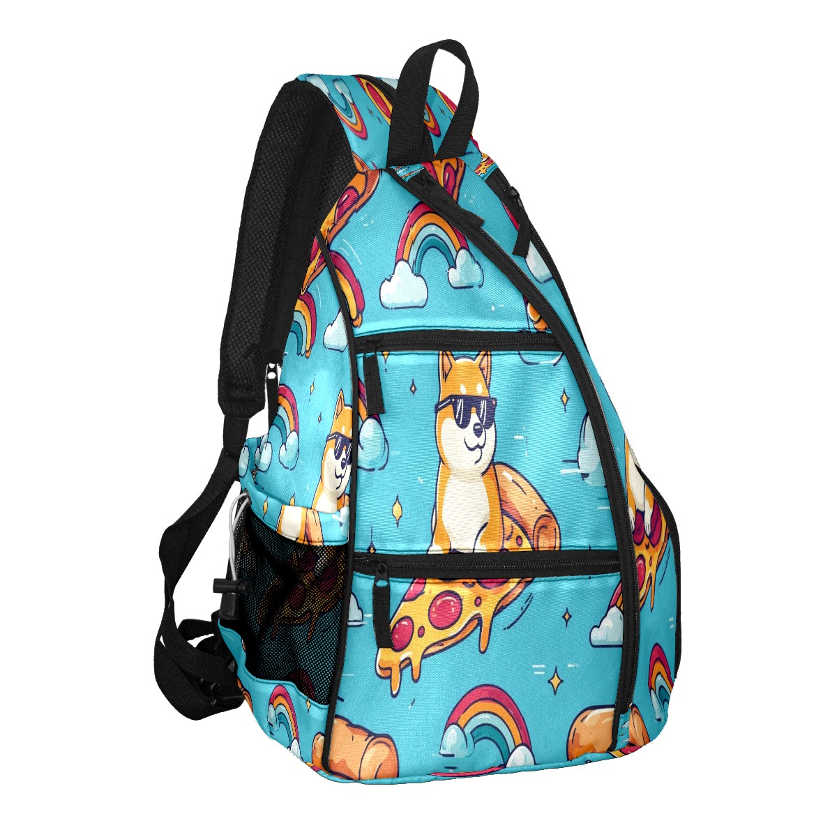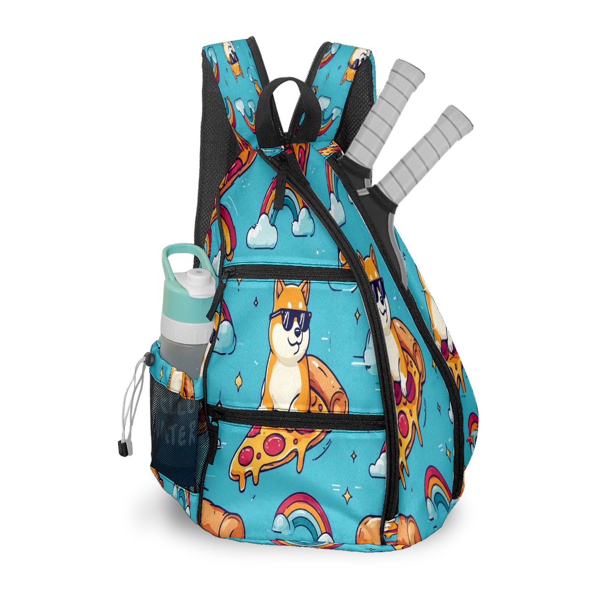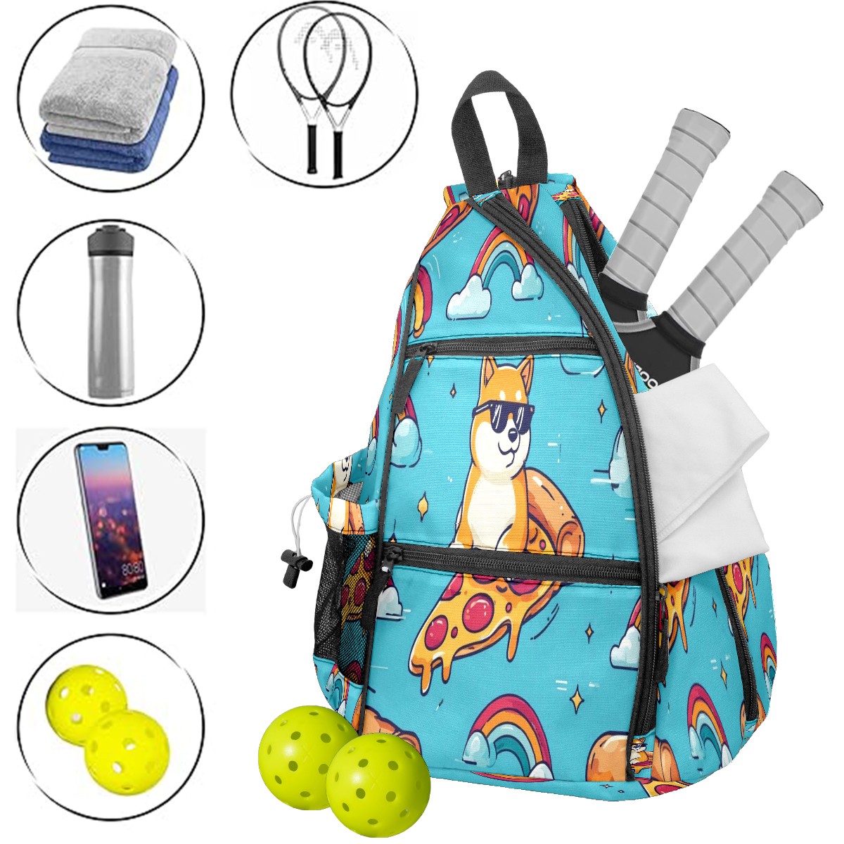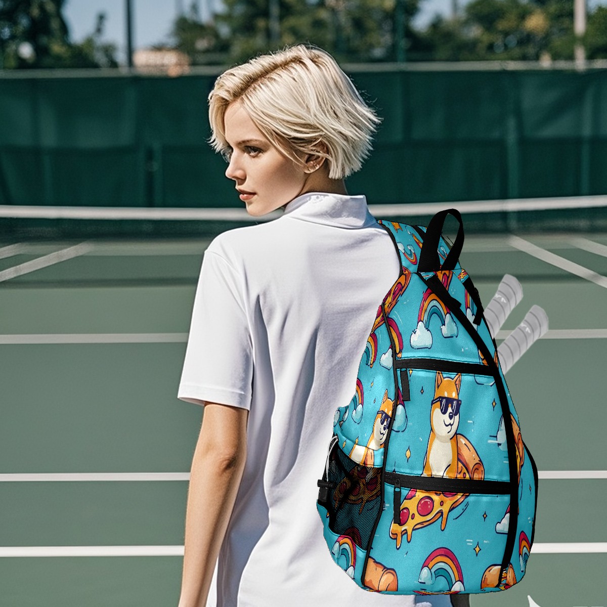 Print Pickleball Backpack Blue Corgis | Padded 6-Paddle Compartment & Separate Shoe Bag | Multi-Pocket Sports & Gym Backpack for Tennis, Travel, Commute