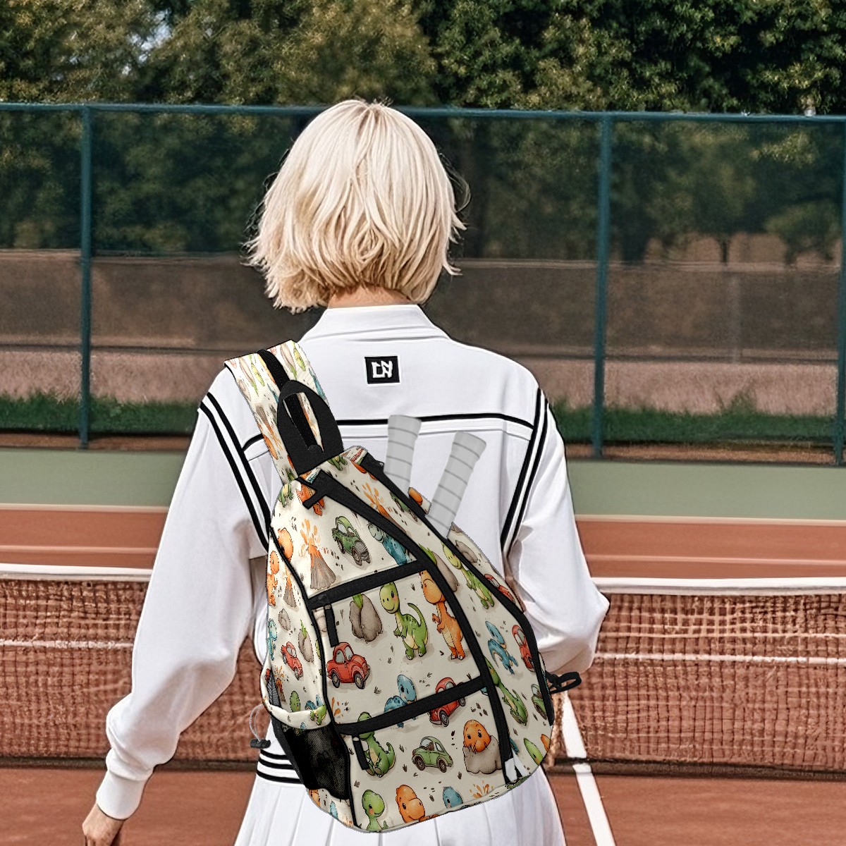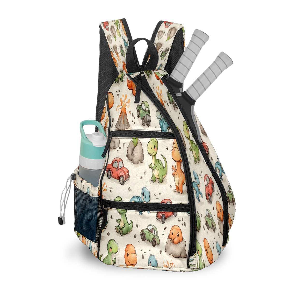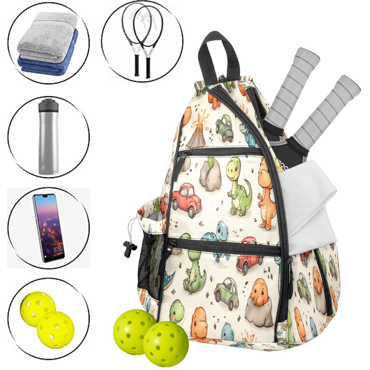 Print Pickleball Backpack Multicolor Dinos Cars | Padded 6-Paddle Compartment & Separate Shoe Bag | Multi-Pocket Sports & Gym Backpack for Tennis, Travel, Commute