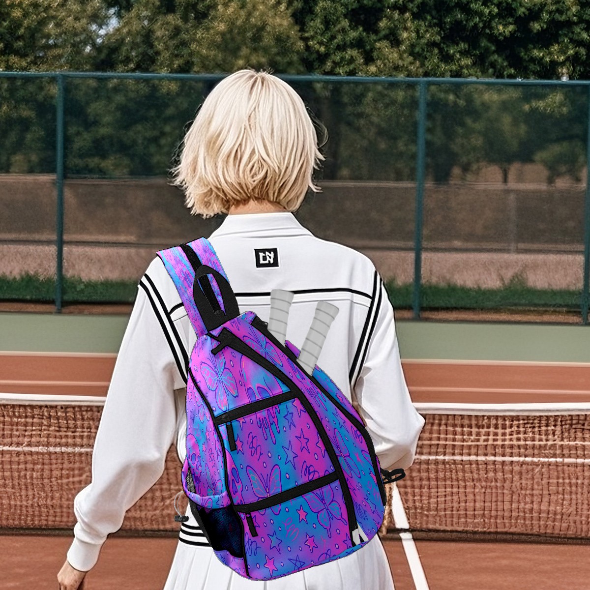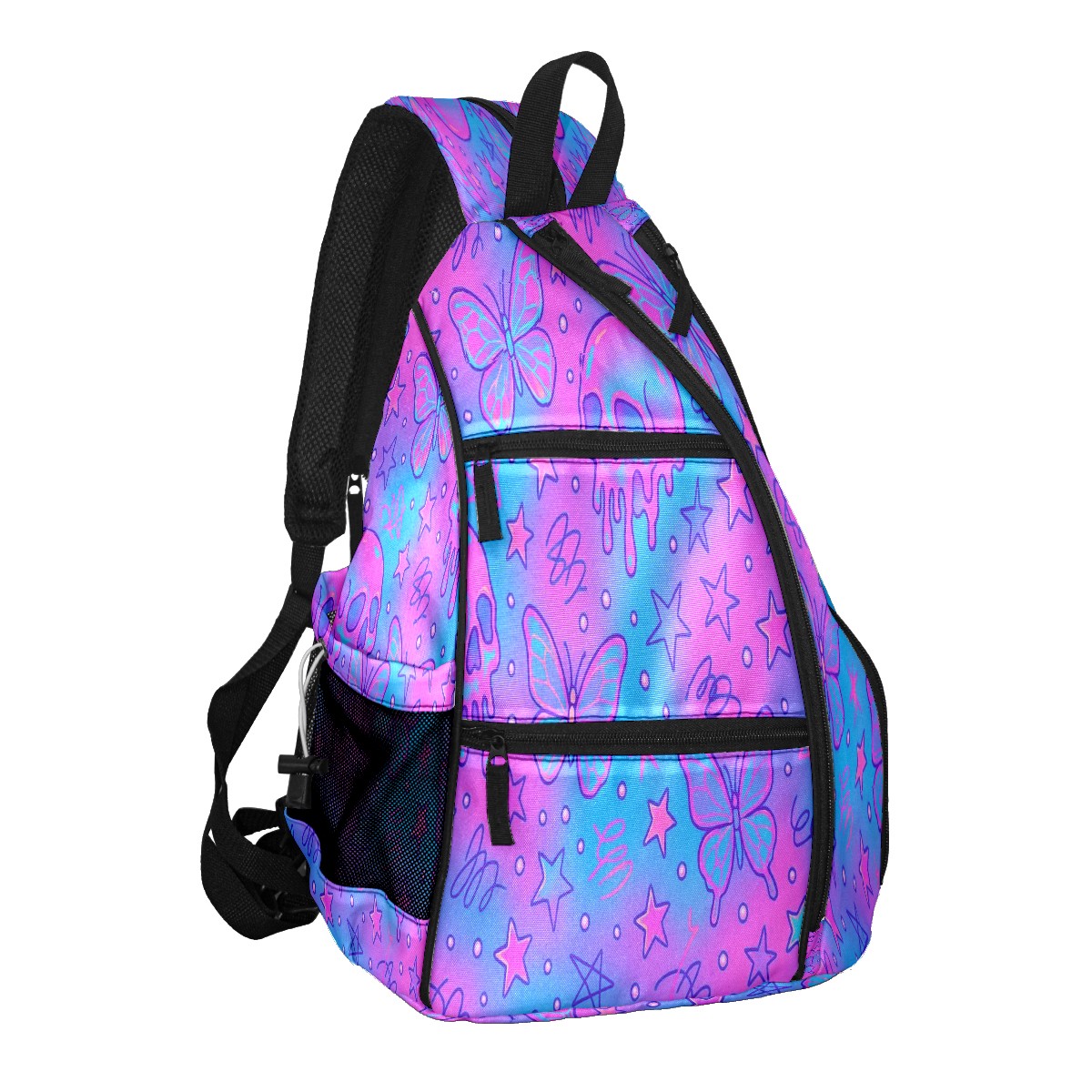 Print Pickleball Backpack Pink Skulls Butterflies | Padded 6-Paddle Compartment & Separate Shoe Bag | Multi-Pocket Sports & Gym Backpack for Tennis, Travel, Commute