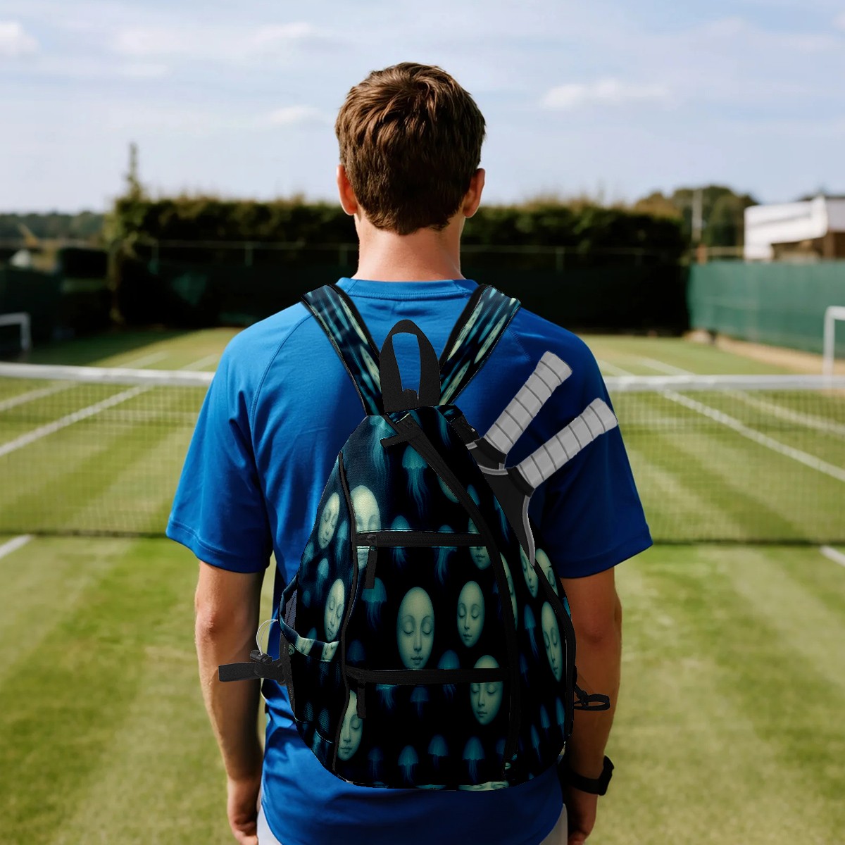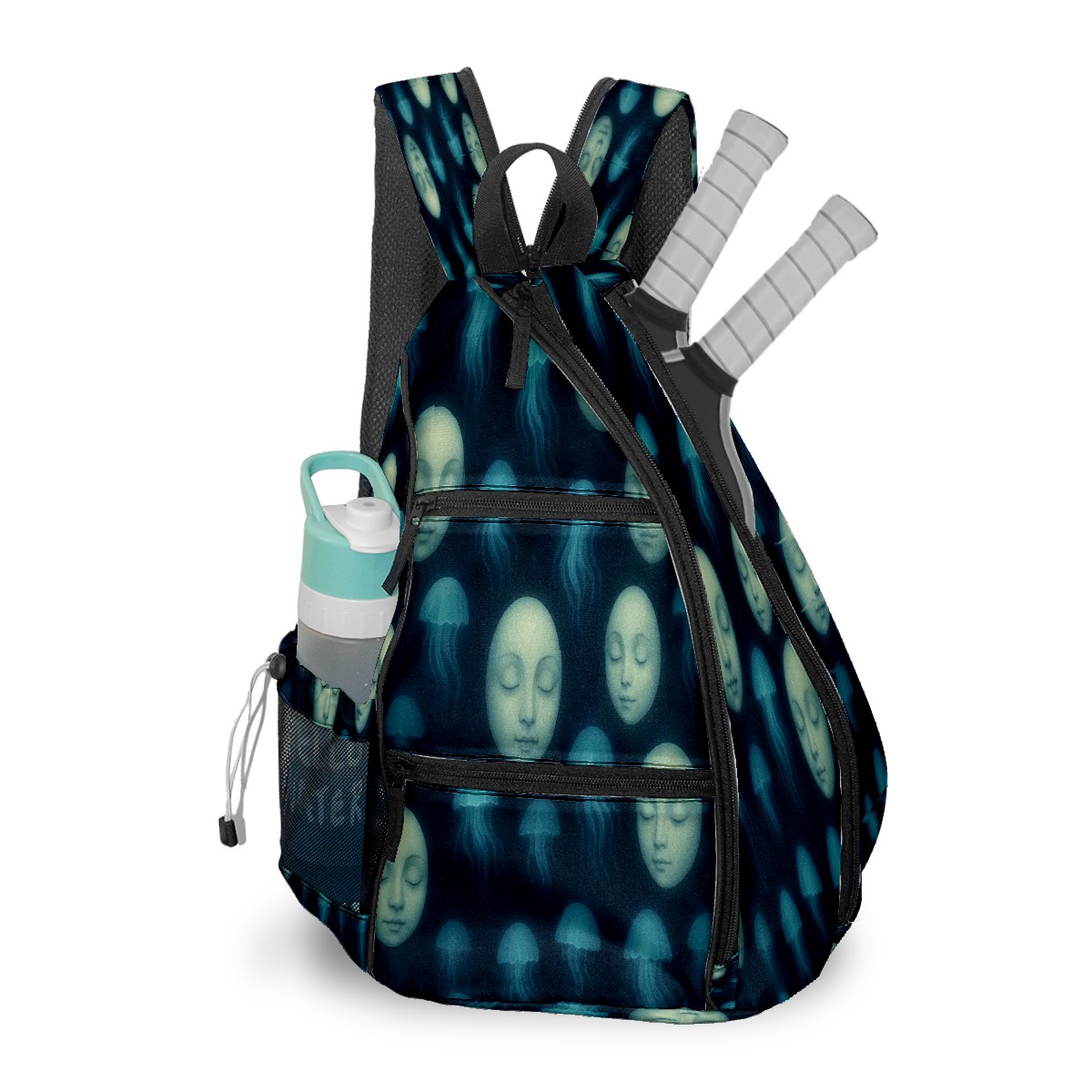 Print Pickleball Backpack Blue Jellyfish Moons | Padded 6-Paddle Compartment & Separate Shoe Bag | Multi-Pocket Sports & Gym Backpack for Tennis, Travel, Commute