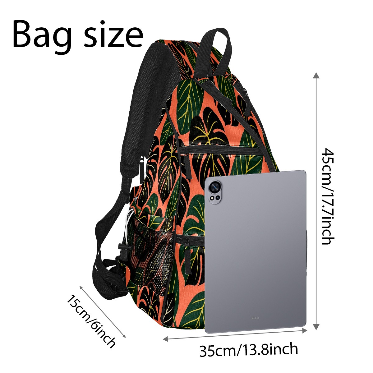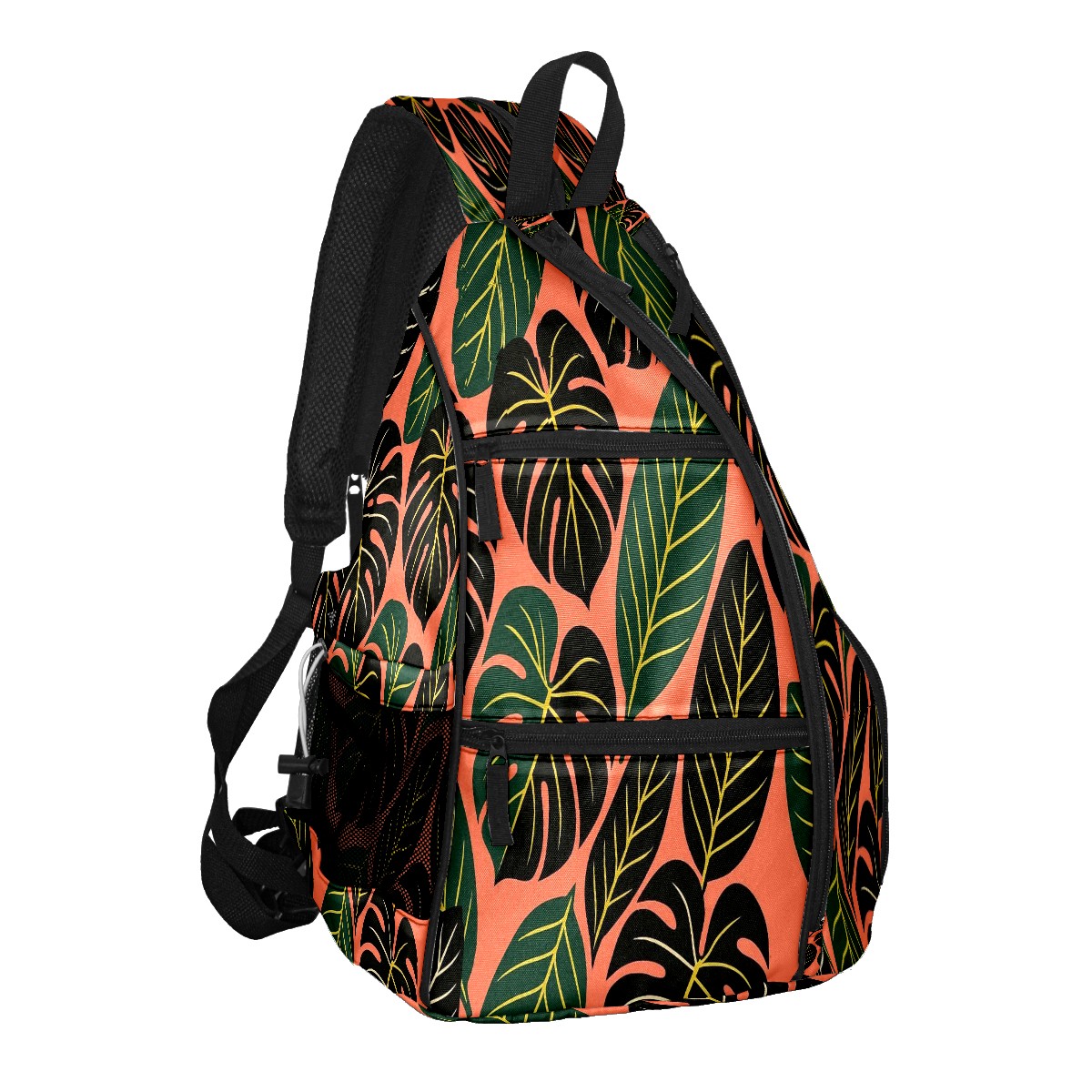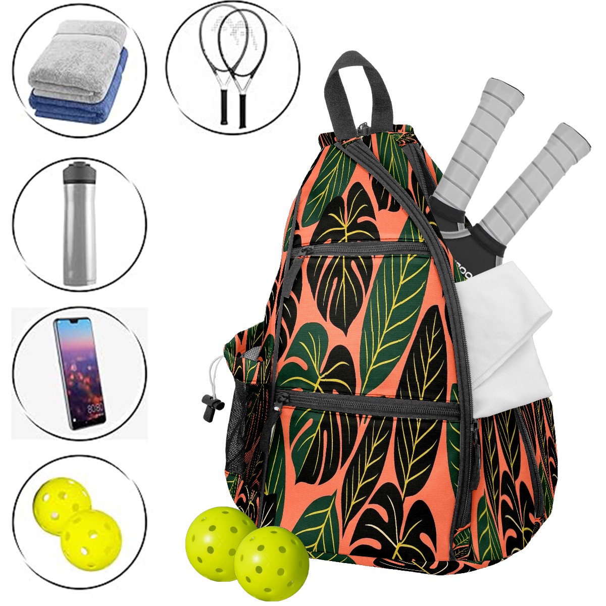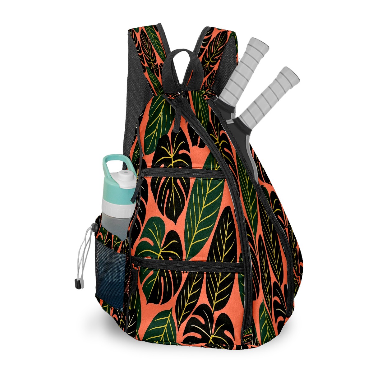 Print Pickleball Backpack Orange Monstera Leaves | Padded 6-Paddle Compartment & Separate Shoe Bag | Multi-Pocket Sports & Gym Backpack for Tennis, Travel, Commute