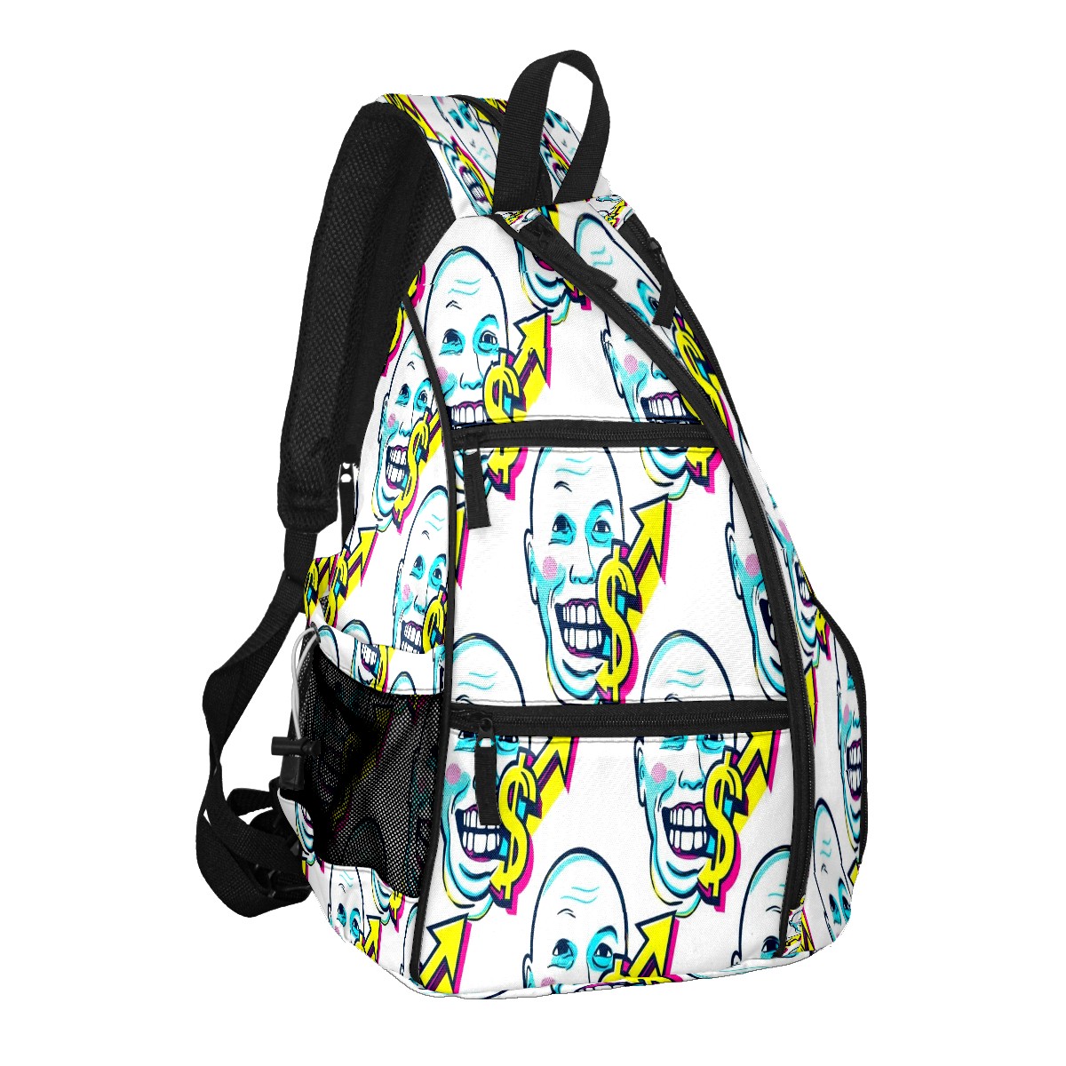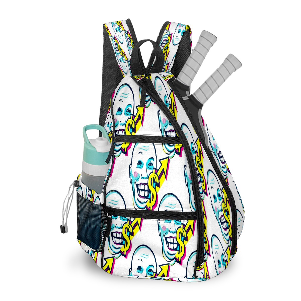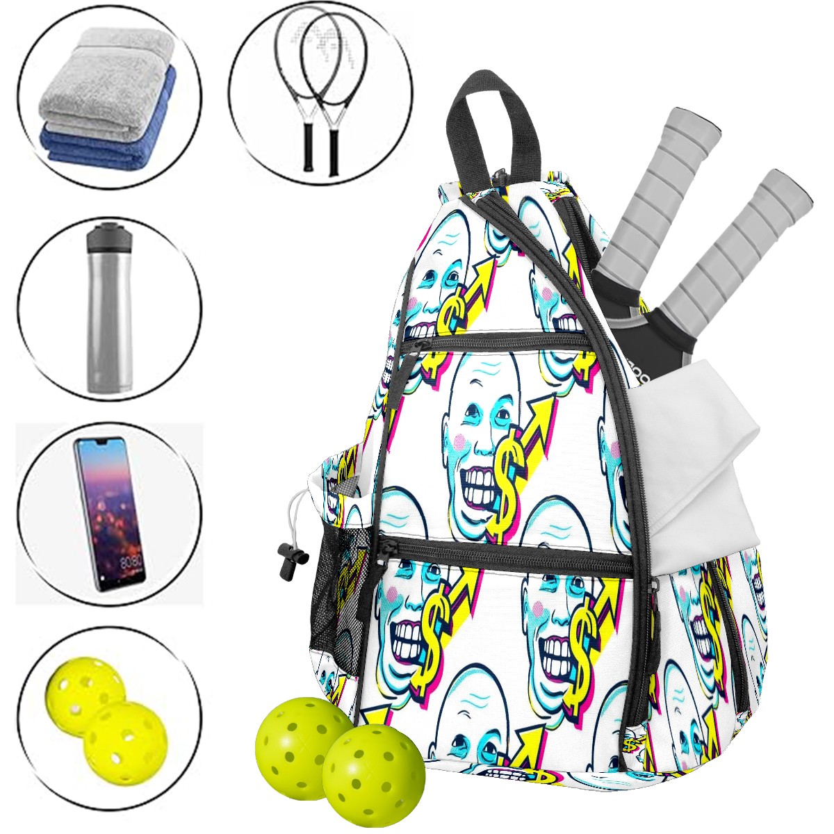 Print Pickleball Backpack White Dollar Smiles | Padded 6-Paddle Compartment & Separate Shoe Bag | Multi-Pocket Sports & Gym Backpack for Tennis, Travel, Commute