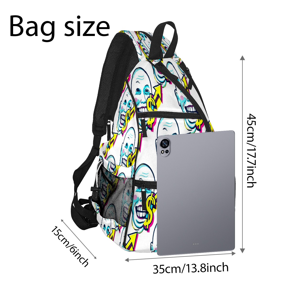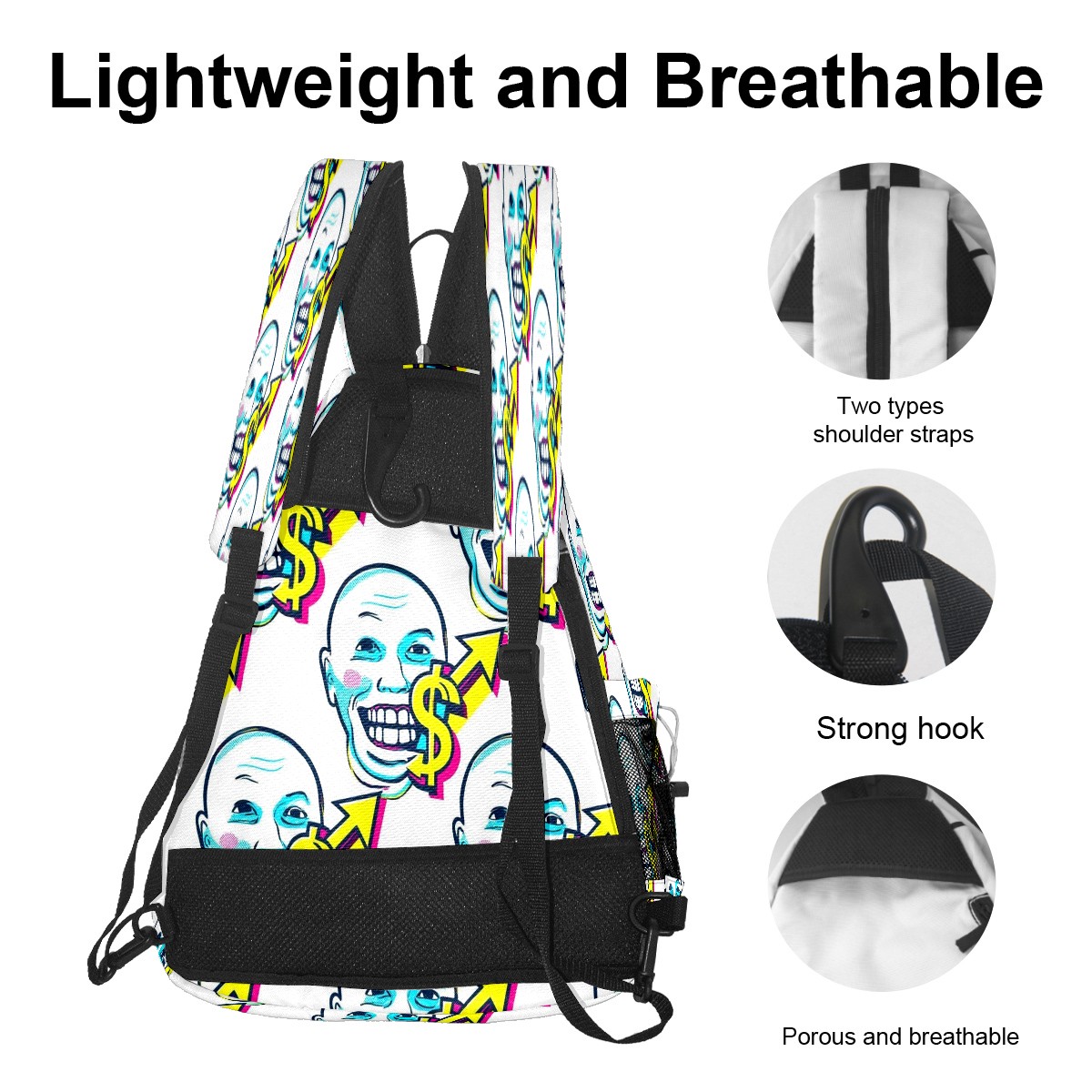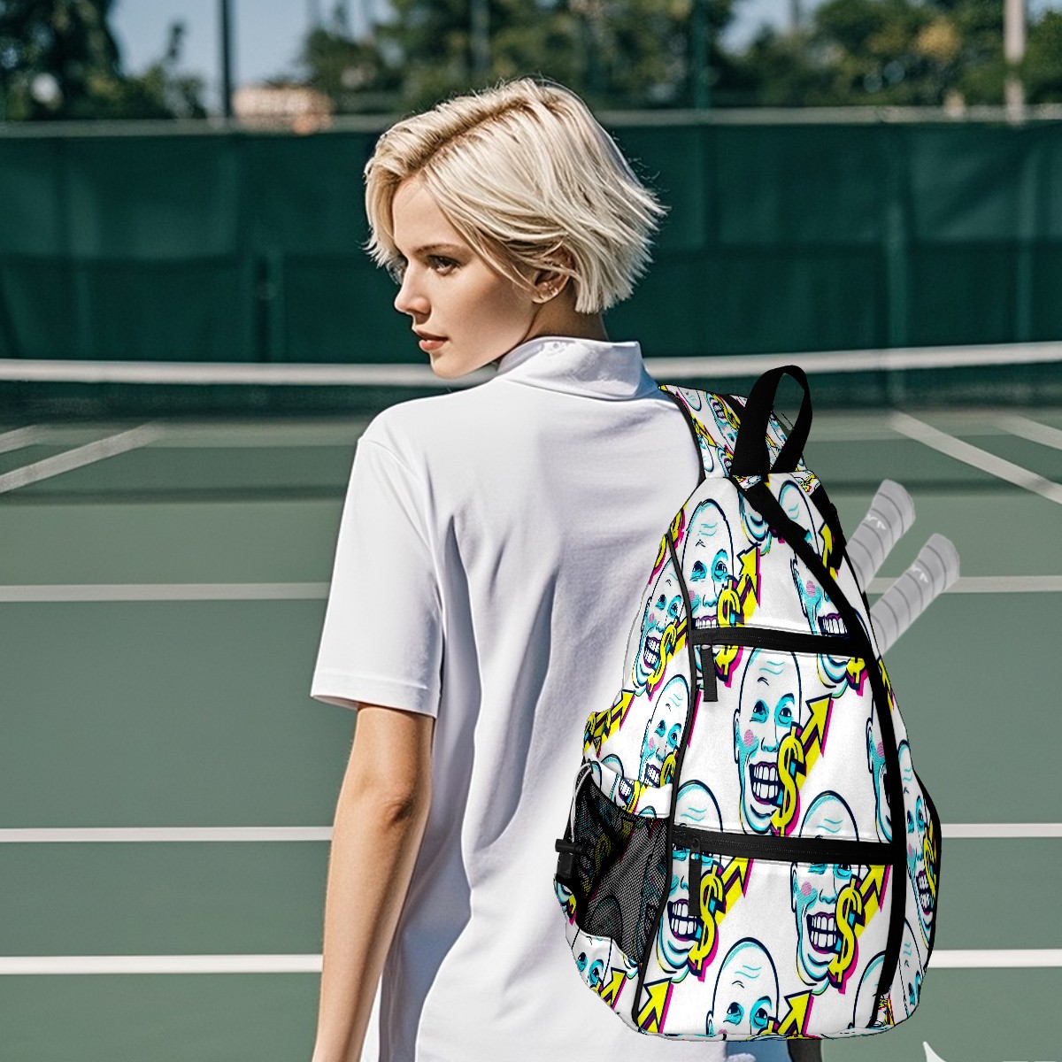 Print Pickleball Backpack White Dollar Smiles | Padded 6-Paddle Compartment & Separate Shoe Bag | Multi-Pocket Sports & Gym Backpack for Tennis, Travel, Commute