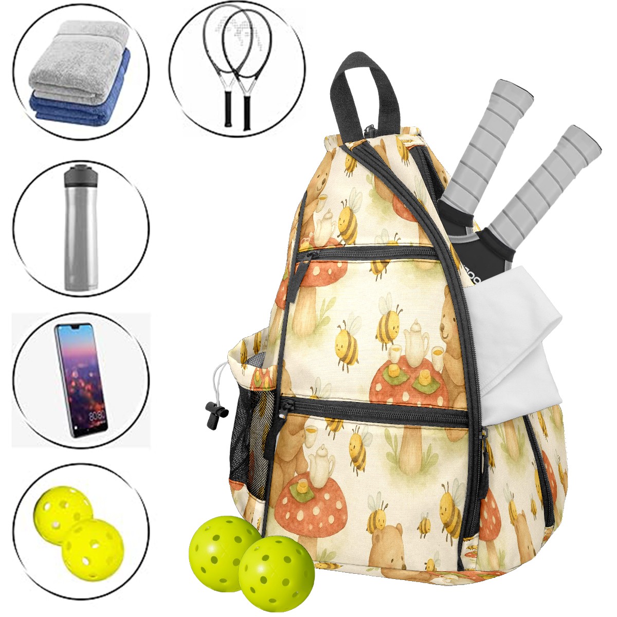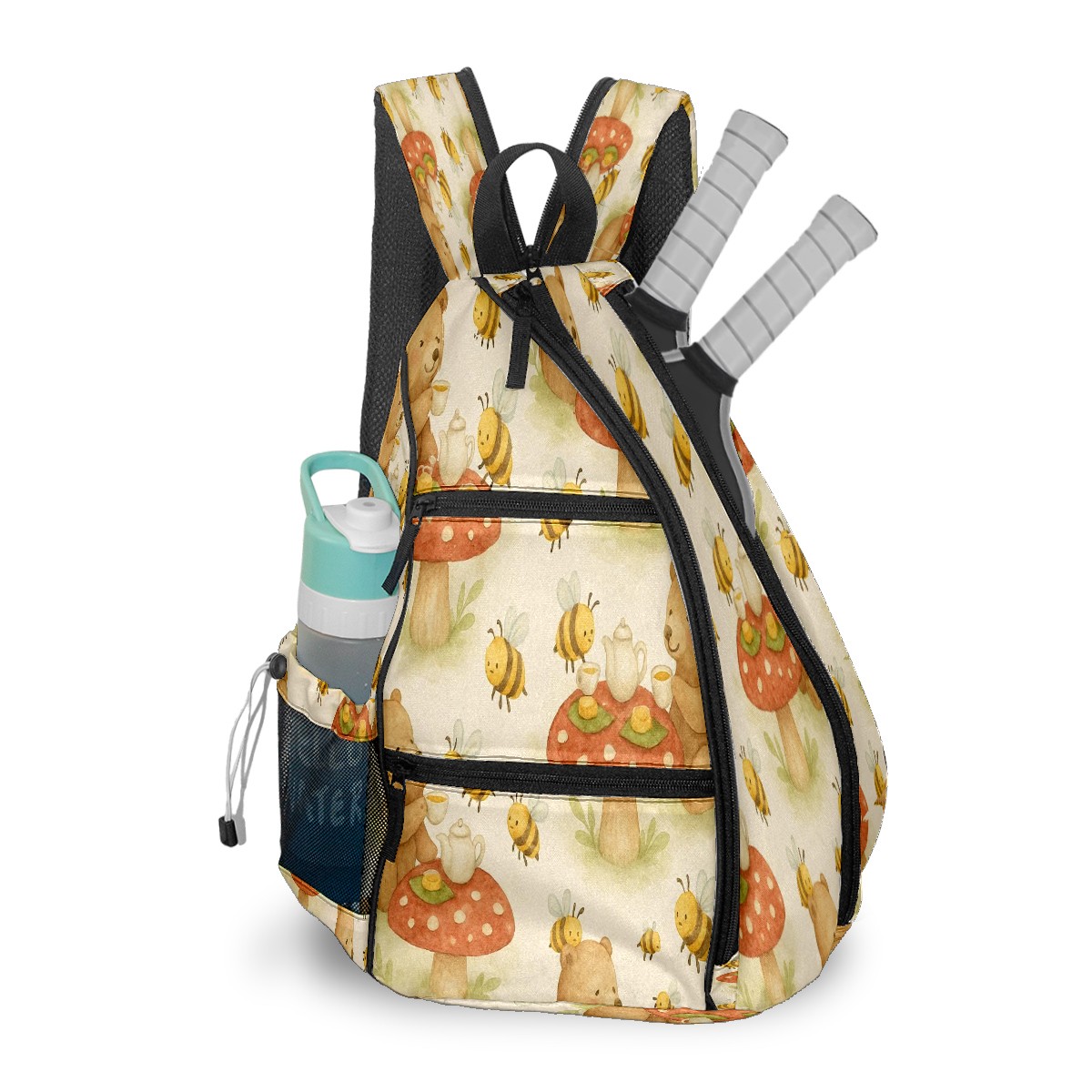 Print Pickleball Backpack Beige Bears | Padded 6-Paddle Compartment & Separate Shoe Bag | Multi-Pocket Sports & Gym Backpack for Tennis, Travel, Commute