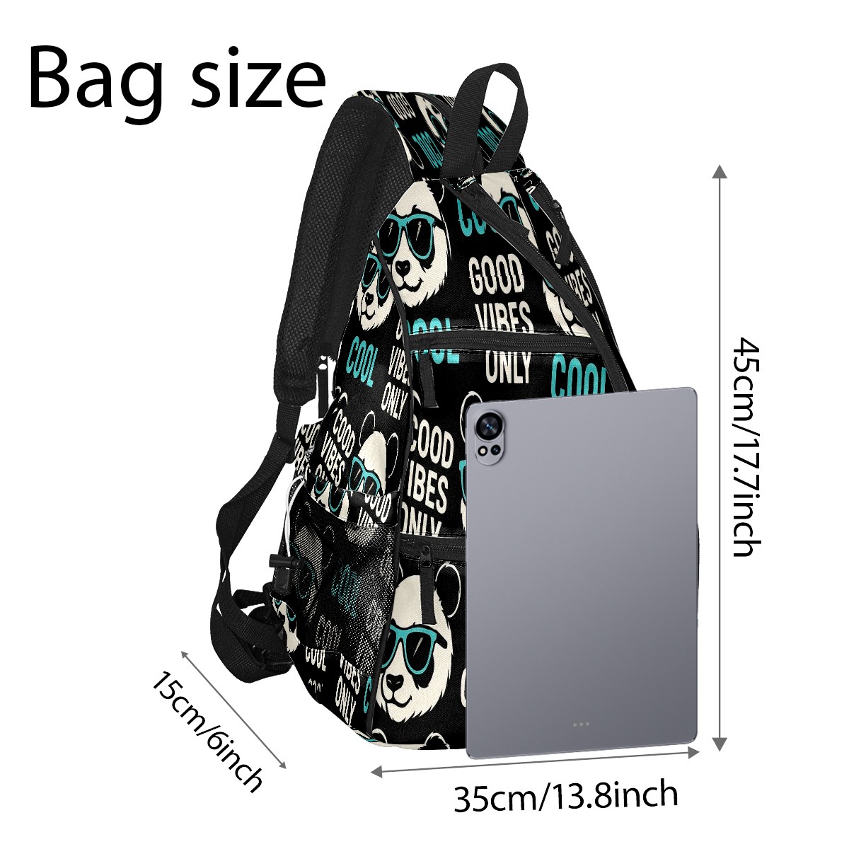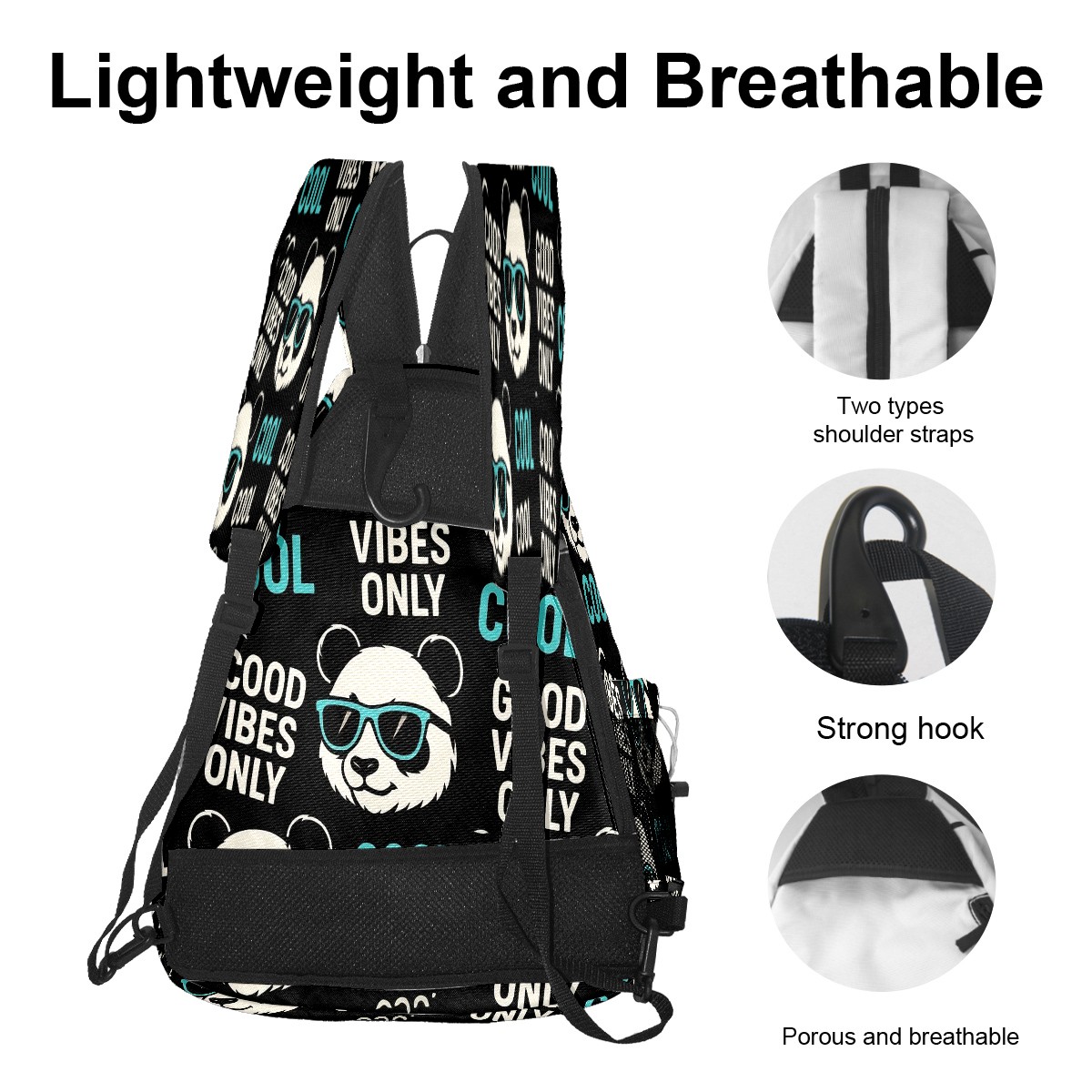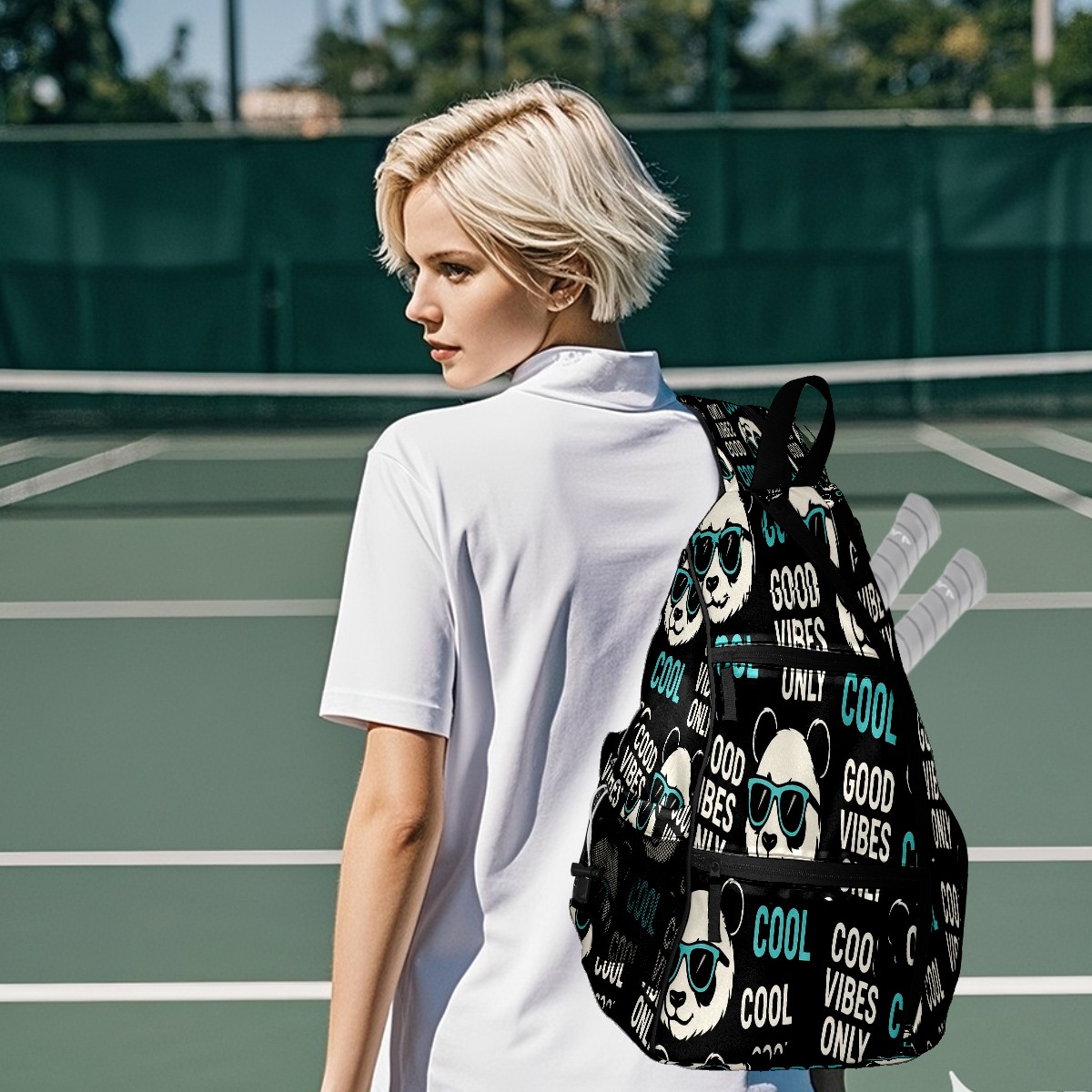 Print Pickleball Backpack Black Funny Pandas | Padded 6-Paddle Compartment & Separate Shoe Bag | Multi-Pocket Sports & Gym Backpack for Tennis, Travel, Commute