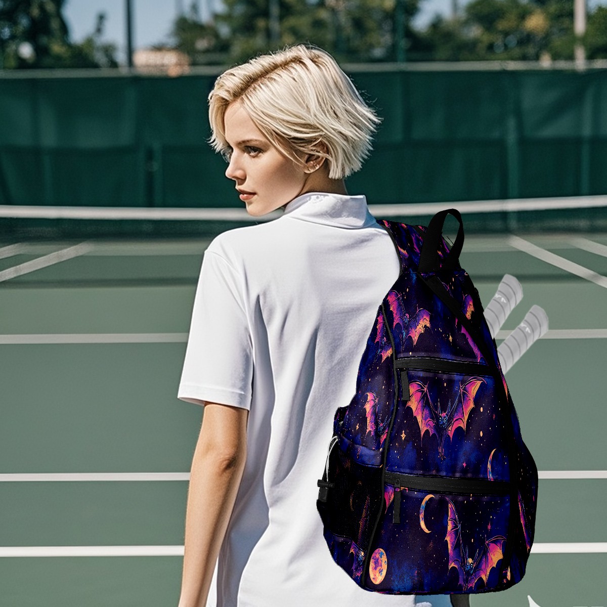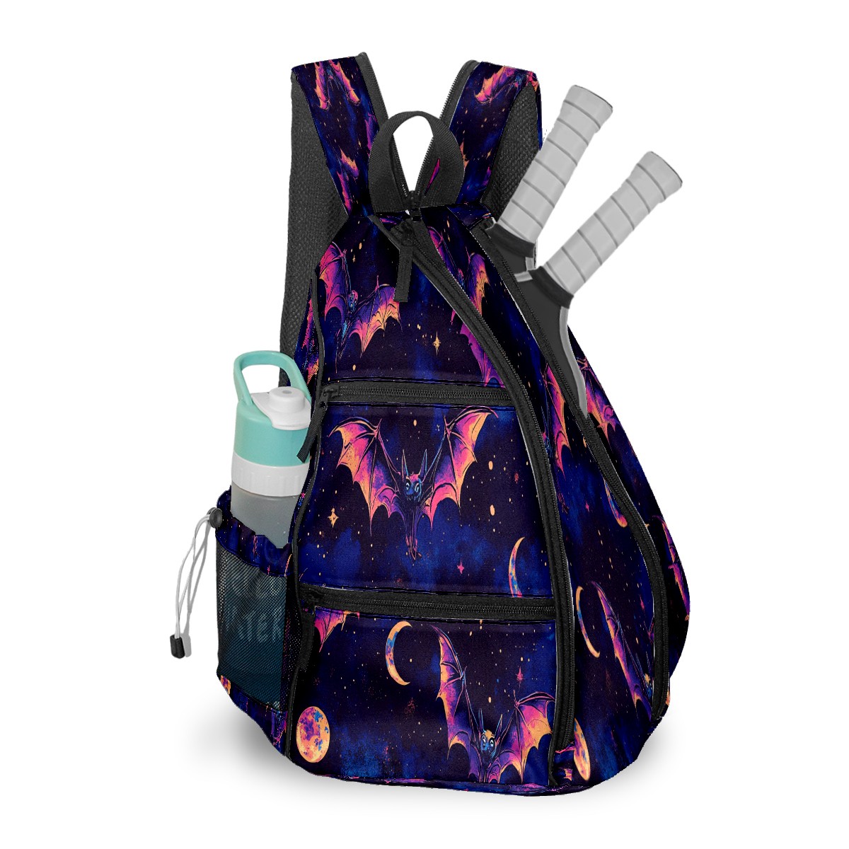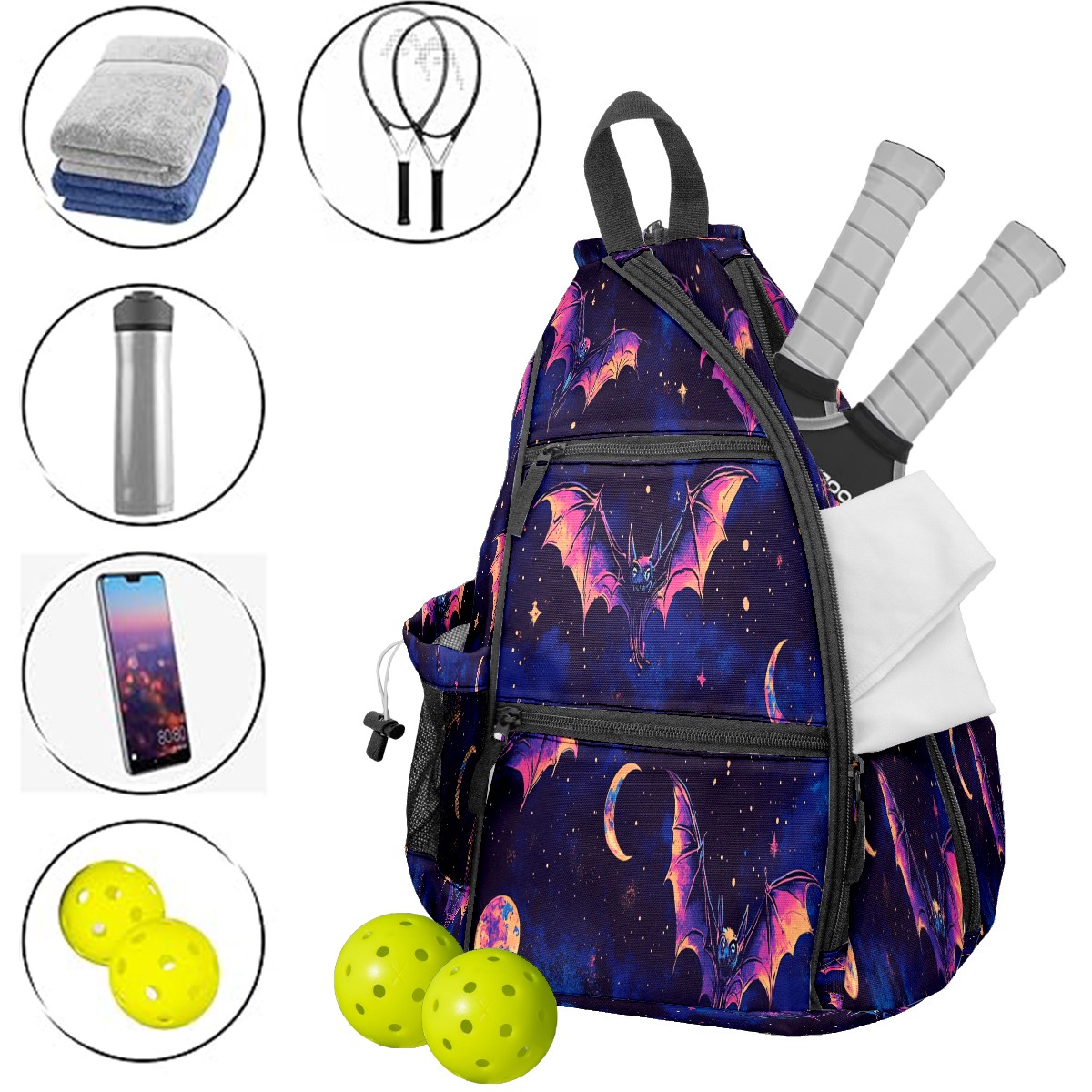 Print Pickleball Backpack Galaxy Purple Bat | Padded 6-Paddle Compartment & Separate Shoe Bag | Multi-Pocket Sports & Gym Backpack for Tennis, Travel, Commute