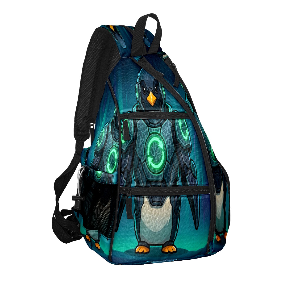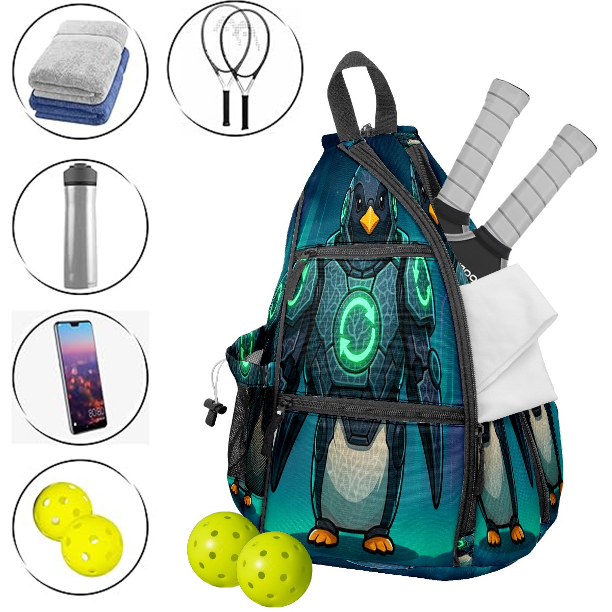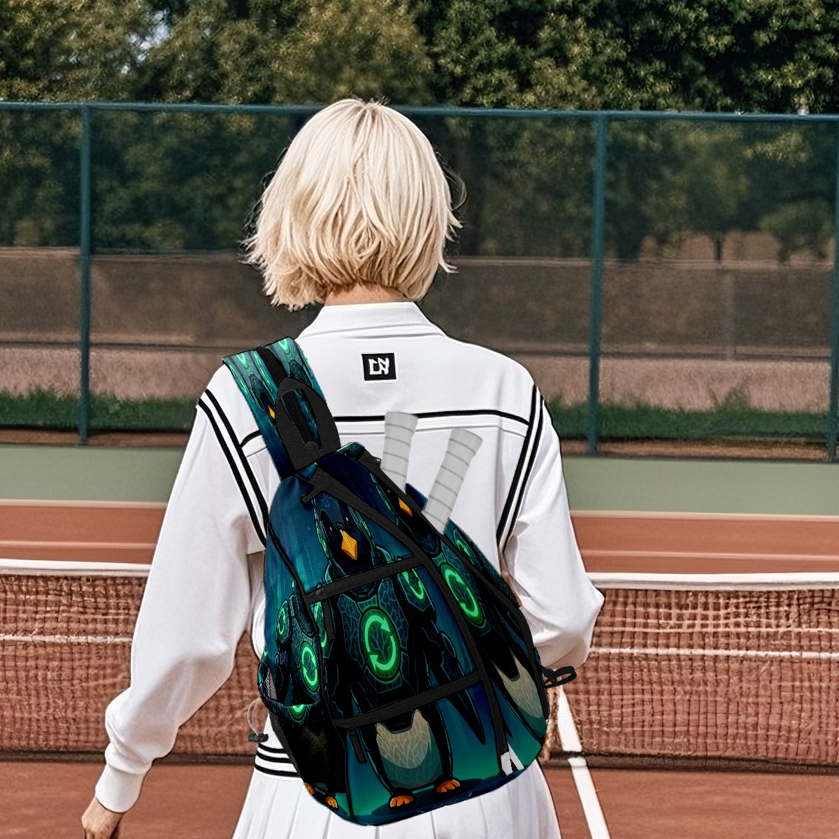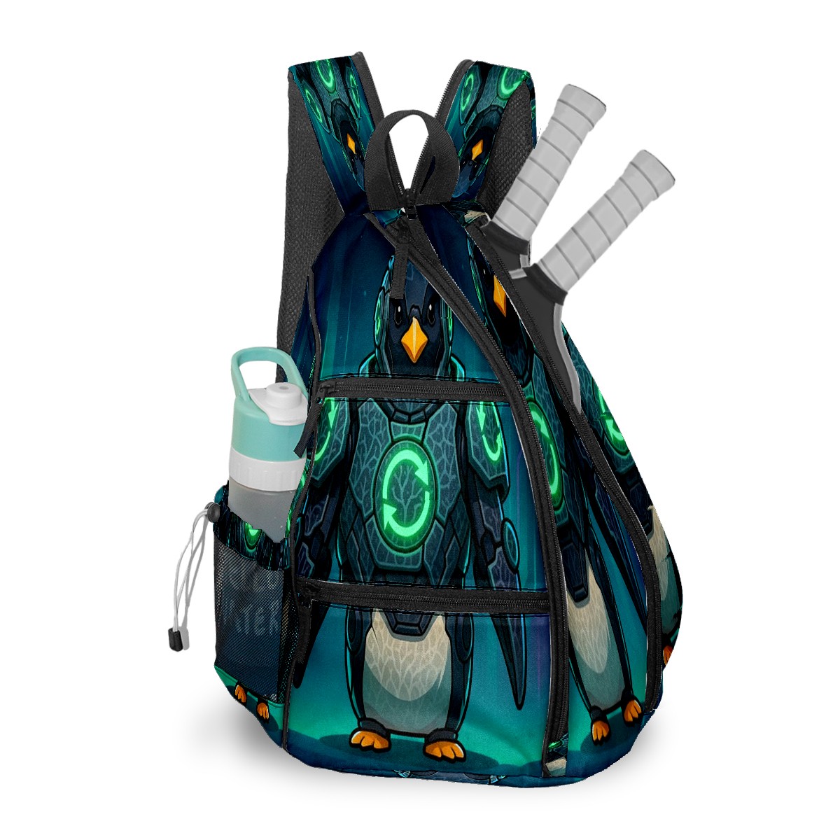 Print Pickleball Backpack Blue Penguin | Padded 6-Paddle Compartment & Separate Shoe Bag | Multi-Pocket Sports & Gym Backpack for Tennis, Travel, Commute